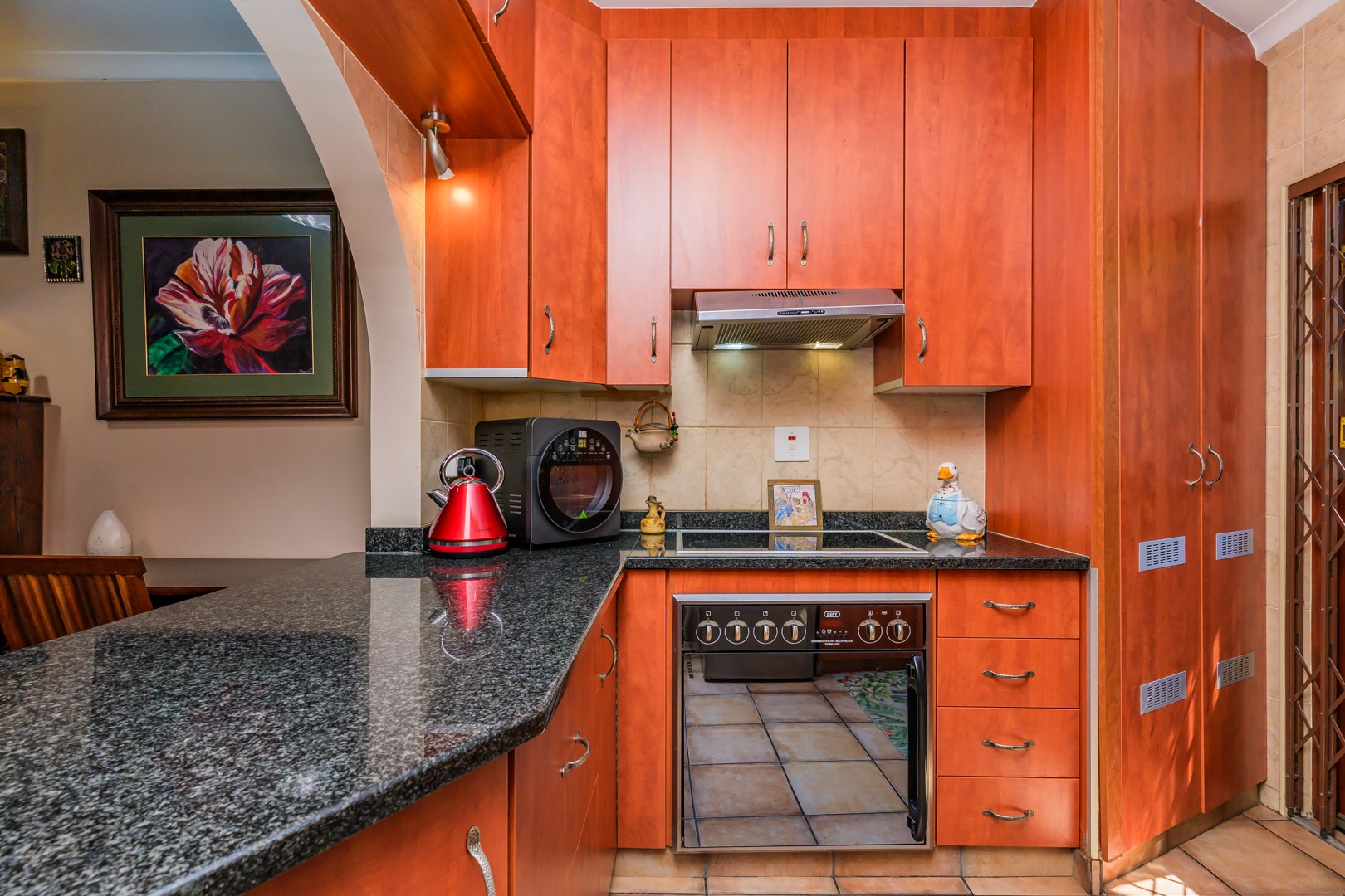 Discover this charming 2-bedroom, 2-bathroom residence nestled within a well-maintained complex in Berea West, Westville. The property presents an attractive exterior with a double garage, roll-up doors, and a separate pedestrian entrance, all framed by mature trees and a paved driveway. Its inviting Mediterranean-style architecture, featuring red tile roof accents, offers excellent curb appeal. Step inside to a warm and functional interior. The kitchen is a highlight, boasting extensive wooden cabinetry, dark granite countertops, and integrated appliances including a hob, oven, and extractor fan. An arched opening seamlessly connects the kitchen to the spacious living and dining areas, enhancing the open-plan flow. The comfortable living room, equipped with an air conditioning unit, provides direct access to a covered outdoor patio through sliding glass doors, perfect for relaxation and entertaining. This home offers two comfortable bedrooms and two bathrooms, including a private ensuite. Enjoy the dedicated laundry area and the convenience of a private garden and patio, ideal for outdoor living. Pets are allowed, making this a perfect home for animal lovers. Security is well-addressed with an alarm system, access gate, security gates, and burglar bars, ensuring peace of mind within this complex. Situated in Berea West, Westville, this property offers a suburban lifestyle with convenient access to local amenities and a scenic view. Key Features: * 2 Bedrooms, 2 Bathrooms (1 Ensuite) * Double Garage * Modern Kitchen with Granite Countertops * Open-Plan Living & Dining * Covered Patio & Private Garden * Air Conditioning in Living Area * Pet-Friendly Complex * Alarm System & Security Gates * Scenic Views