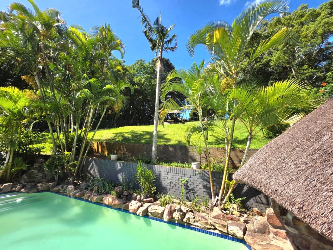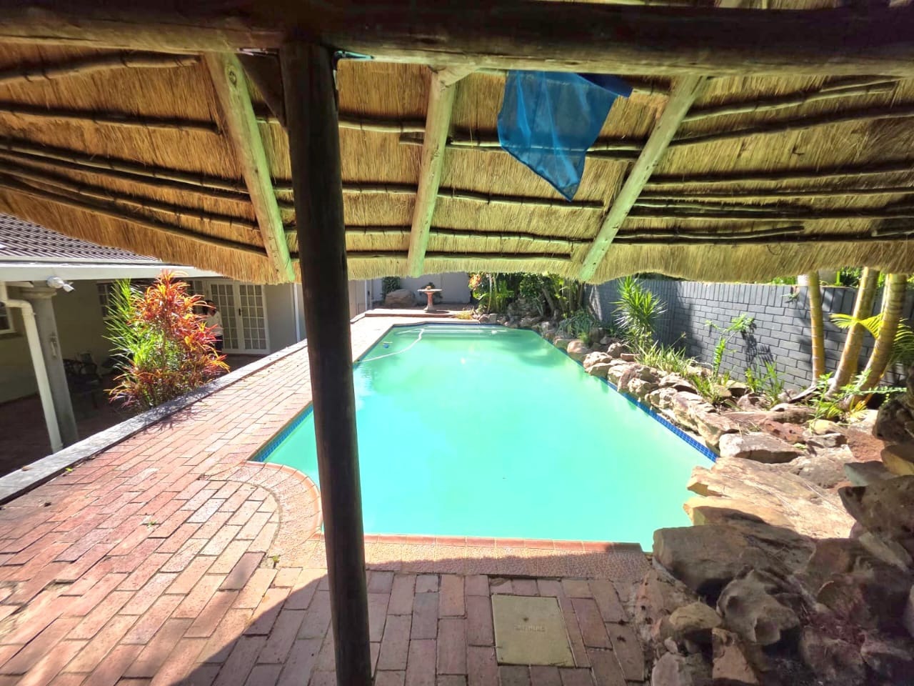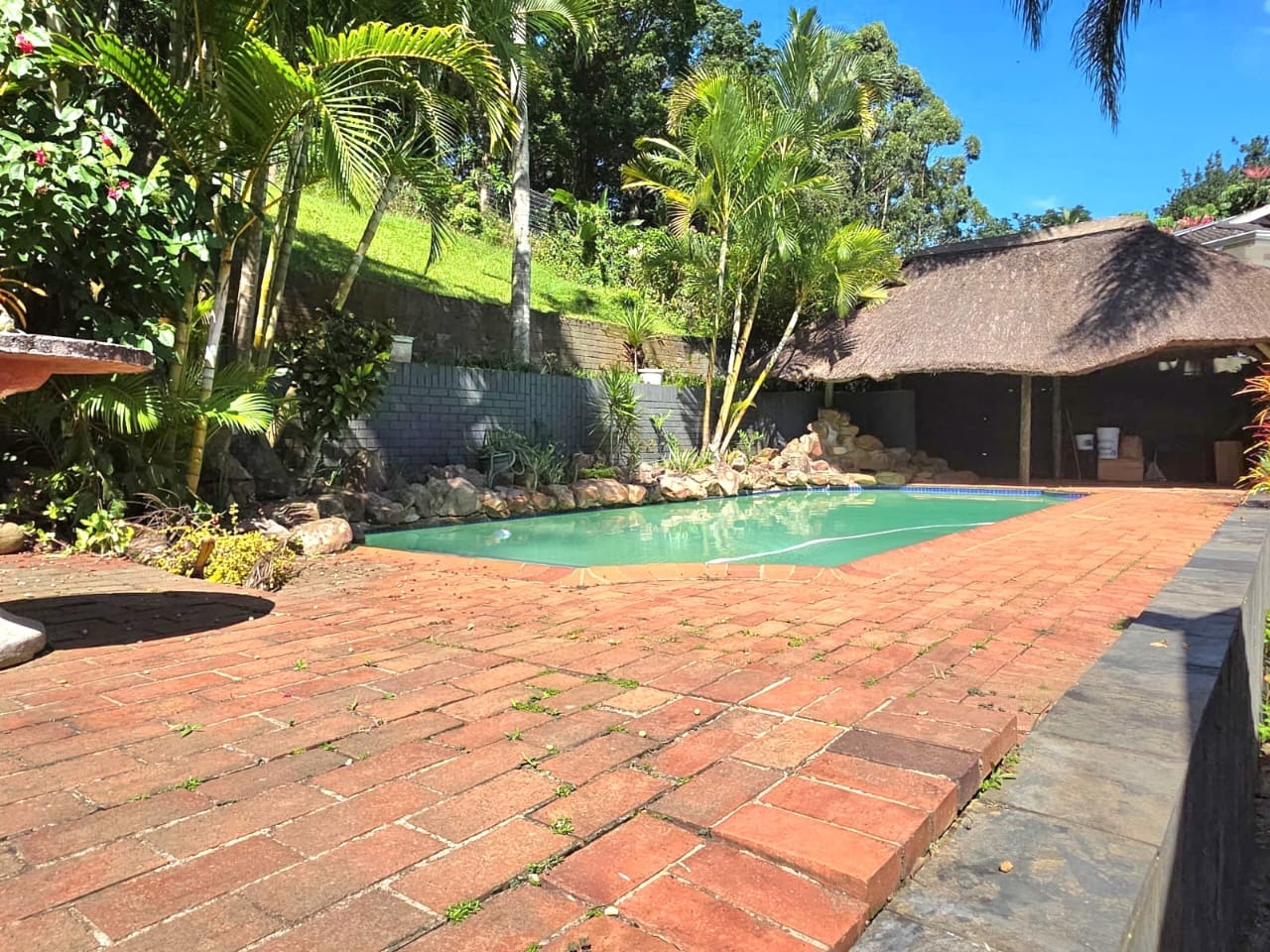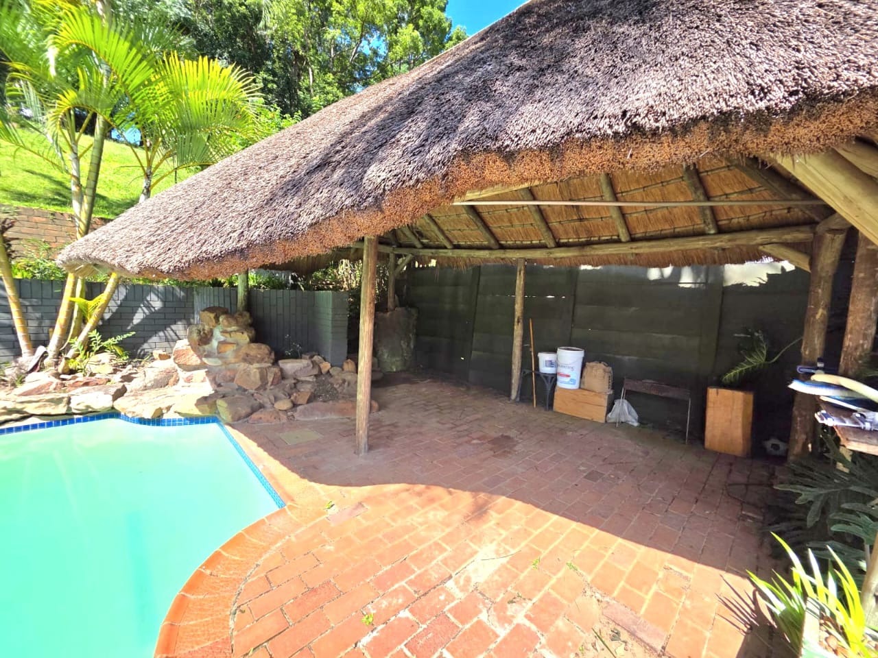 This above road property boast 2 spacious lounges, one of which has a fire place and the other opening up to the swimming pool and gazebo. Also to be enjoyed is the well