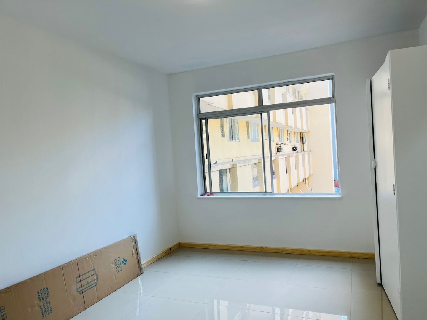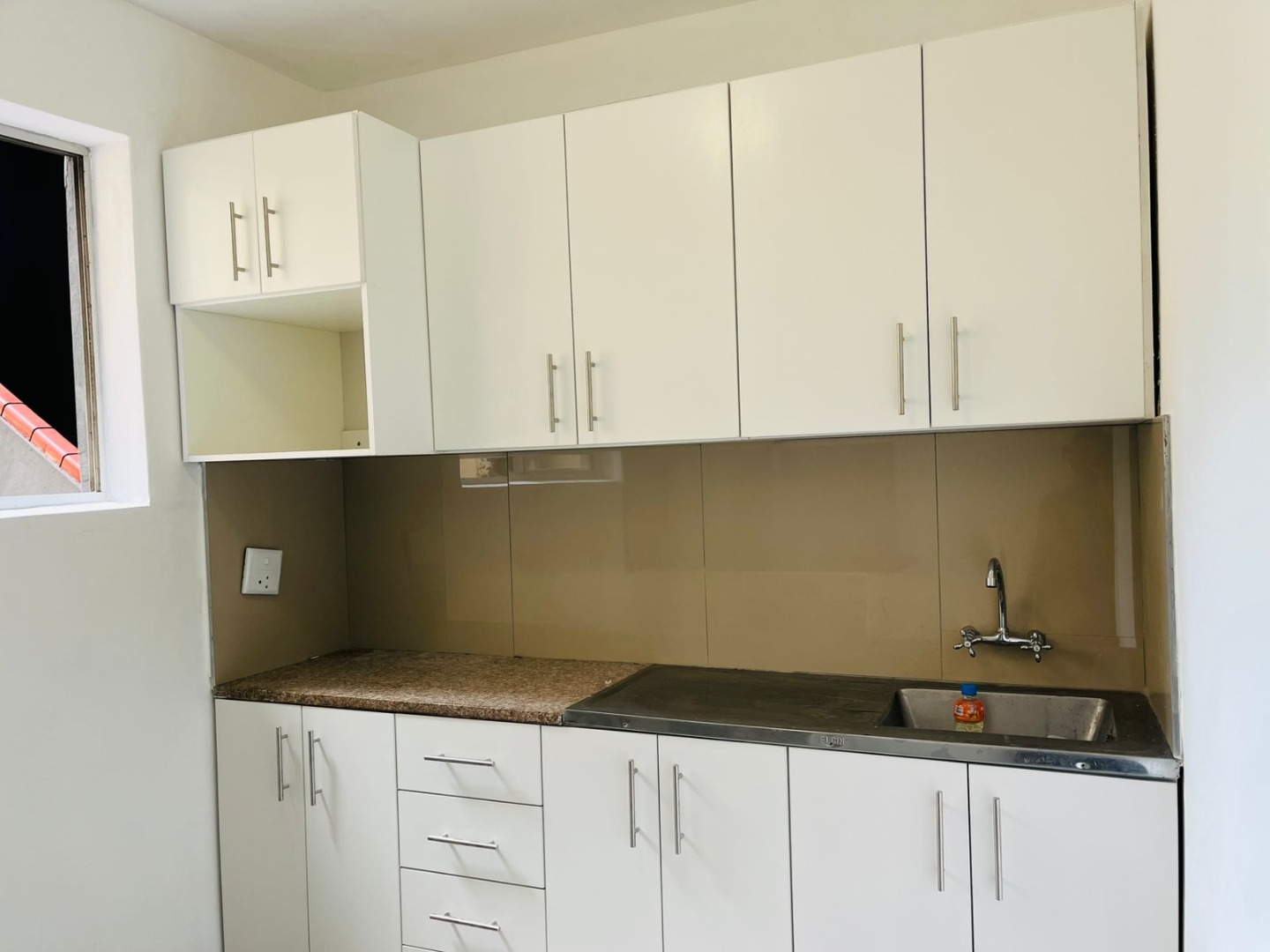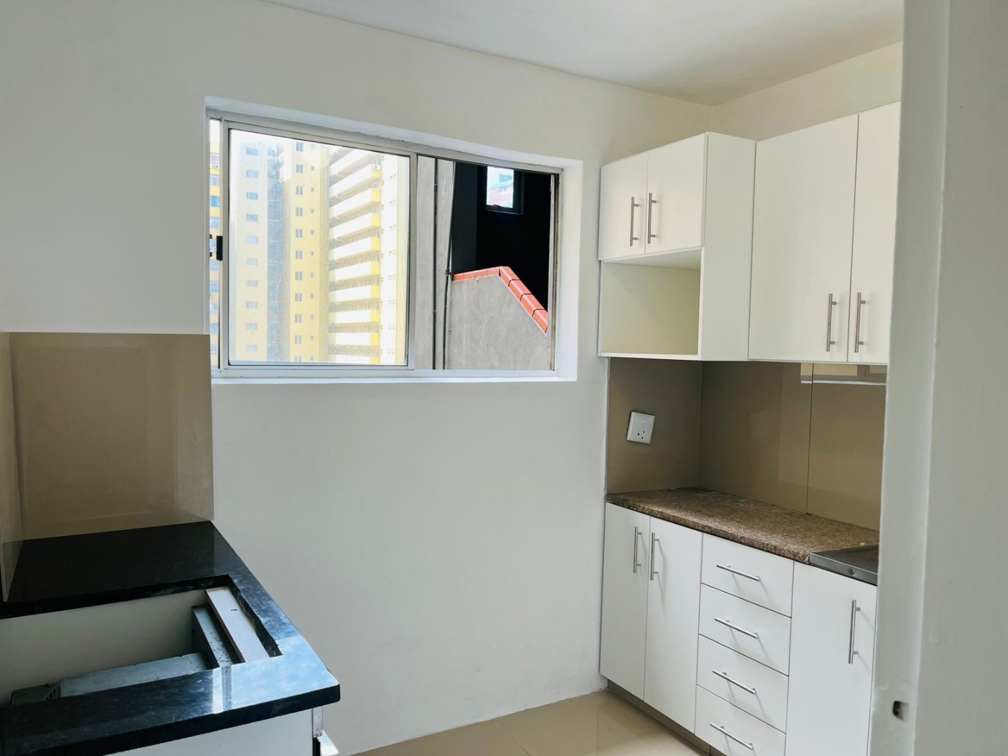 The apartment has been freshly painted and features newly installed tiles throughout, along with modern built-in cupboards. The kitchen is fitted with a new four-plate stove, providing a practical and updated cooking space.