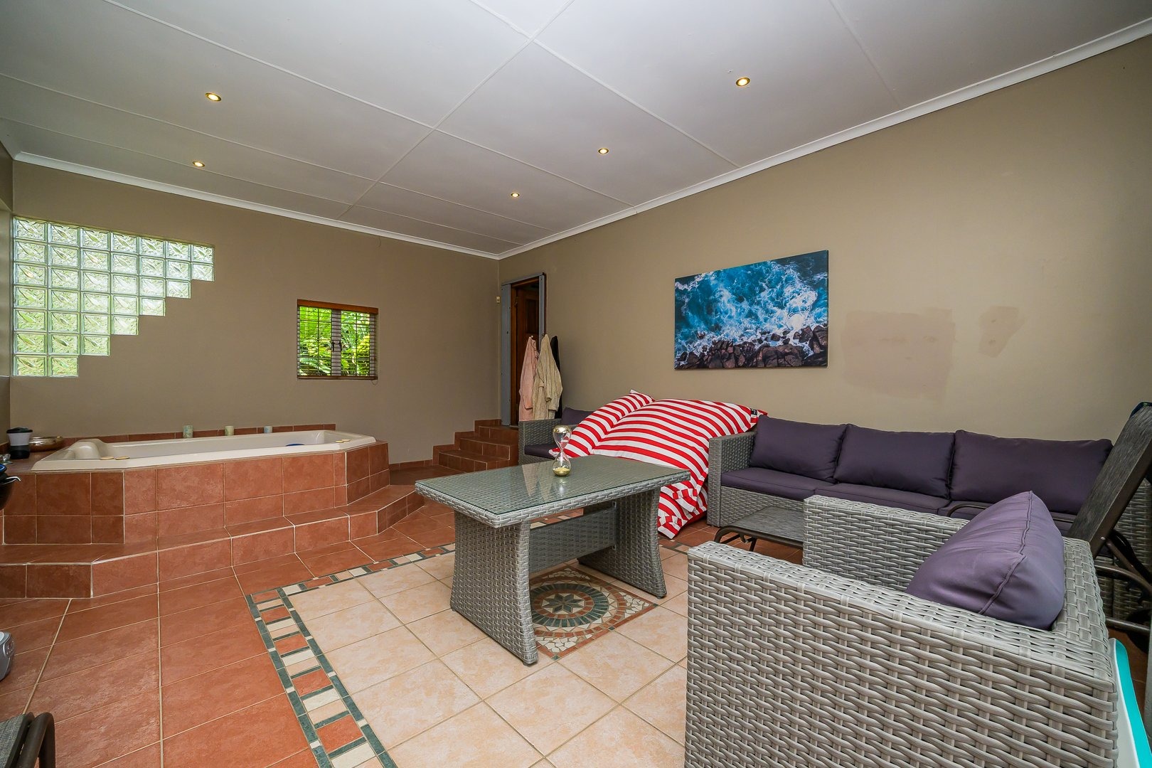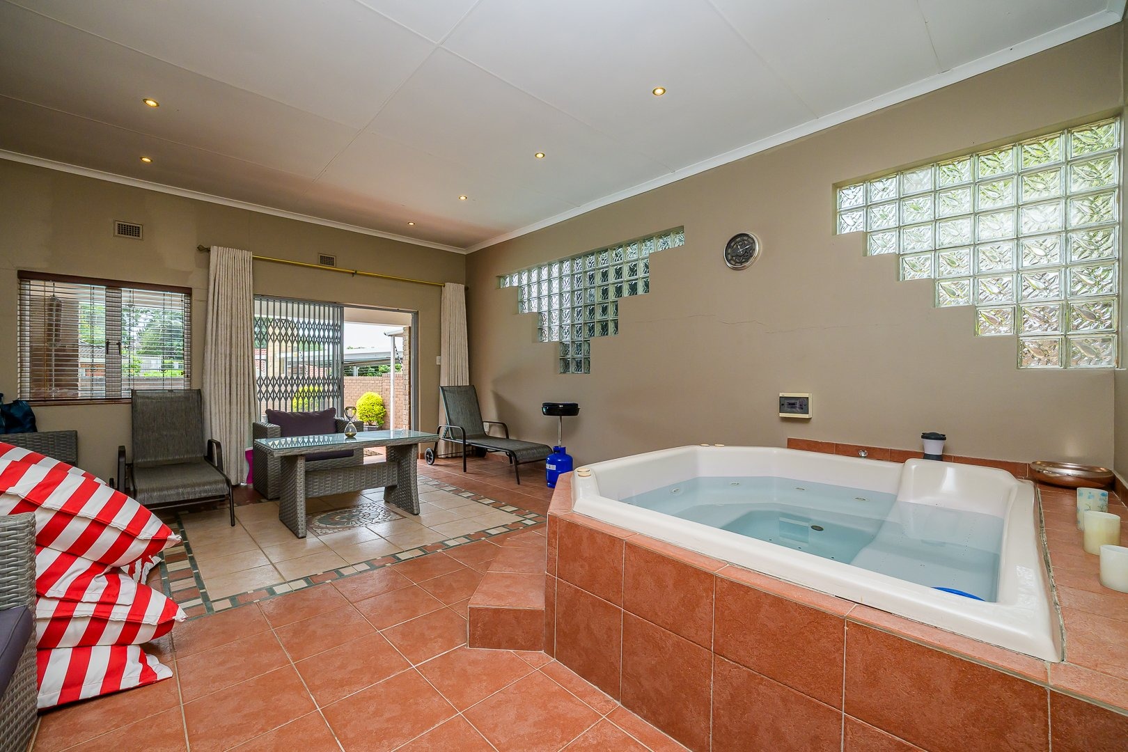 The enclosed entertainment verandah is a standout feature, complete with an indoor Jacuzzi and sliding doors that open onto a sparkling blue pool plus the covered bar and braai area create the perfect setting for year-round entertaining.