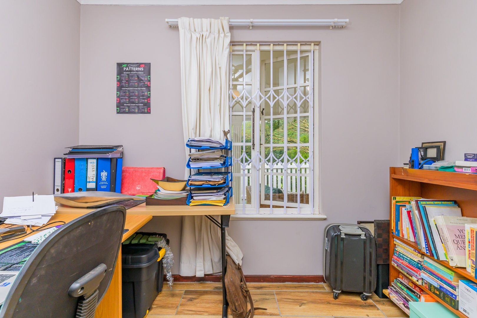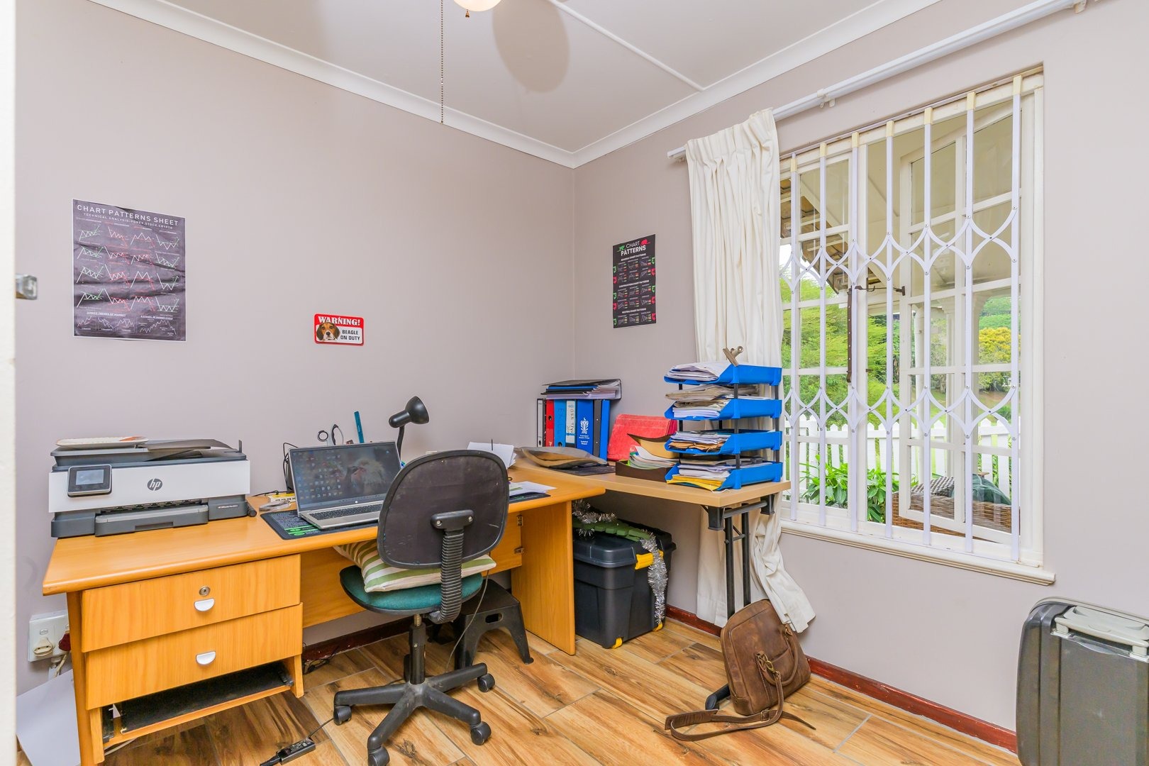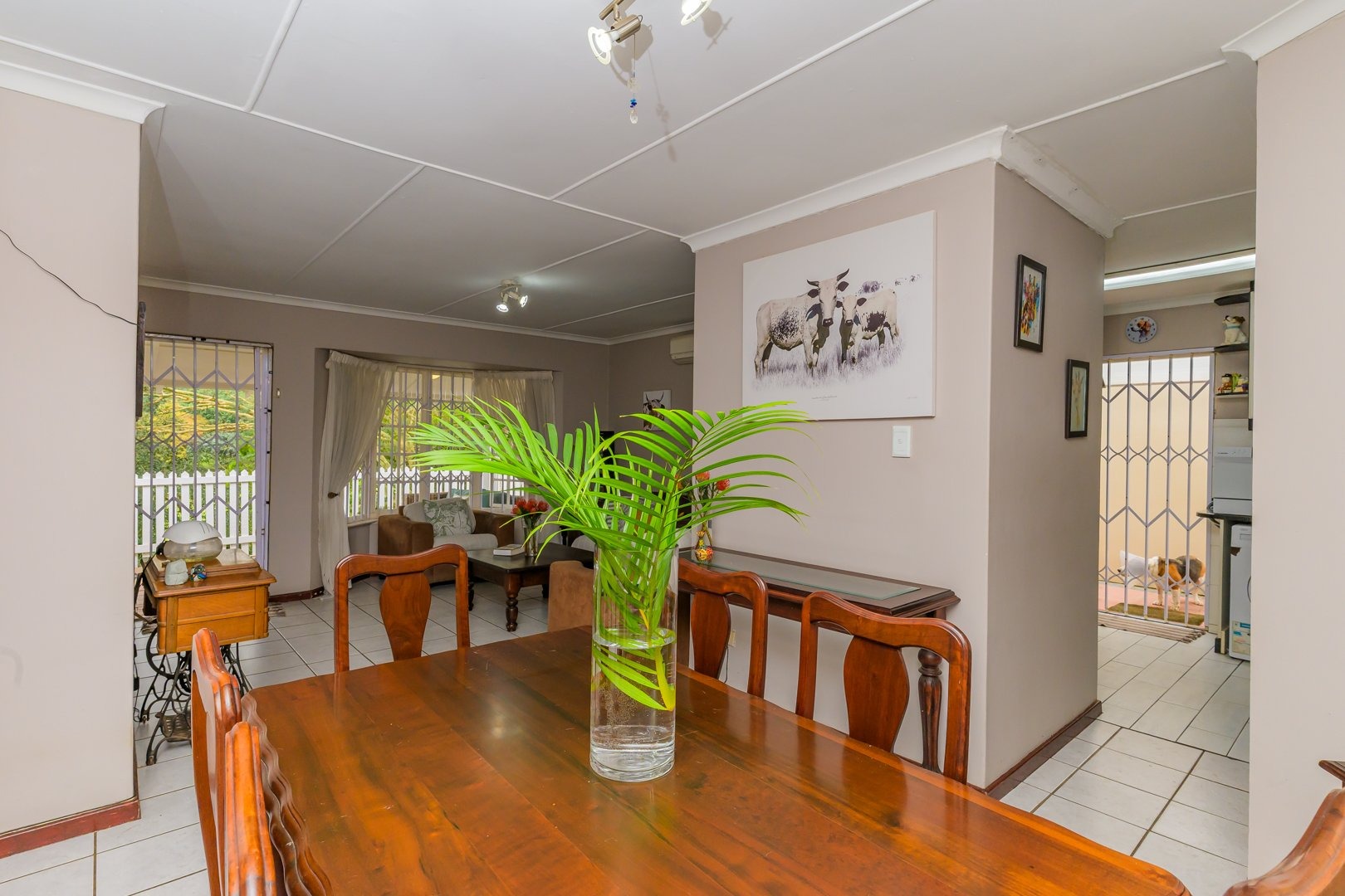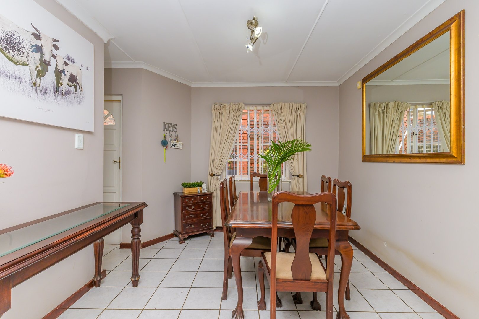 Down the passage are three spacious bedrooms all fitted with built-in cupboards and ceiling fans, two of the bedrooms boast air conditioners. The family bathroom offers a bath, while the light and airy main bedroom boasts ample cupboard space and an en-suite bathroom with a shower.