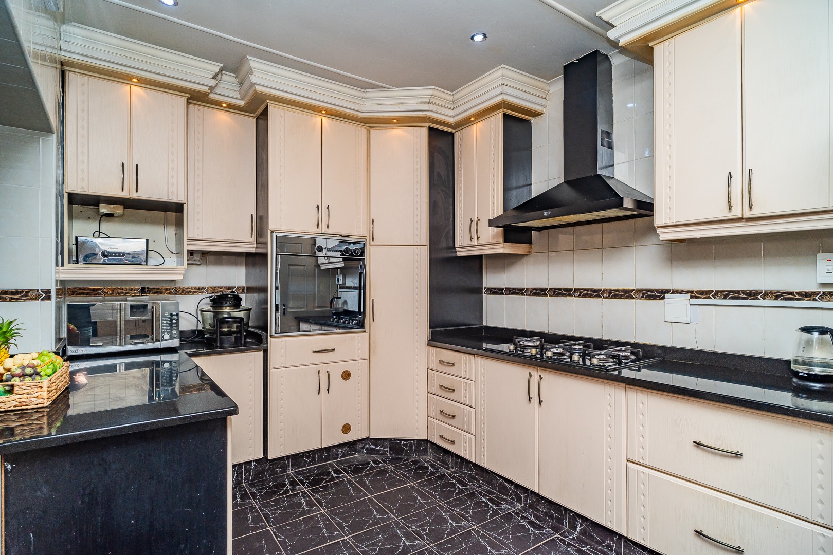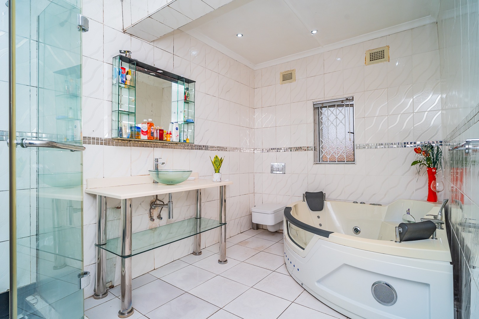 The master bedroom includes a luxurious en-suite bathroom with a jacuzzi, adding a touch of indulgence to your daily routine. Step outside to enjoy a private patio overlooking a lush garden, complete with a sparkling pool and built-in braai area ideal for weekend gatherings and relaxed outdoor living.