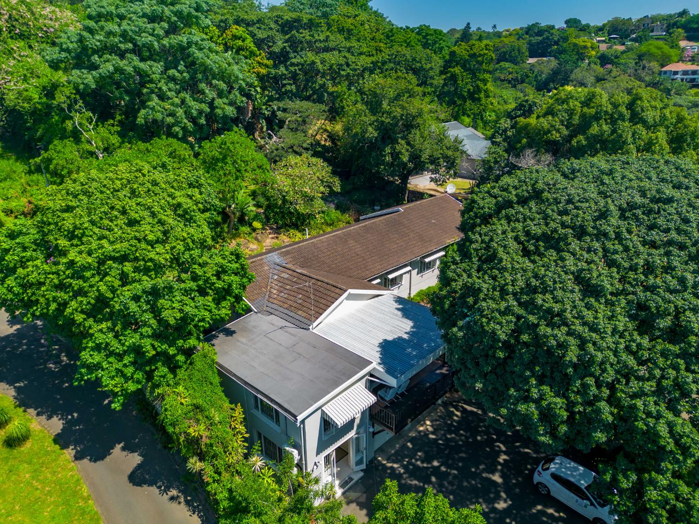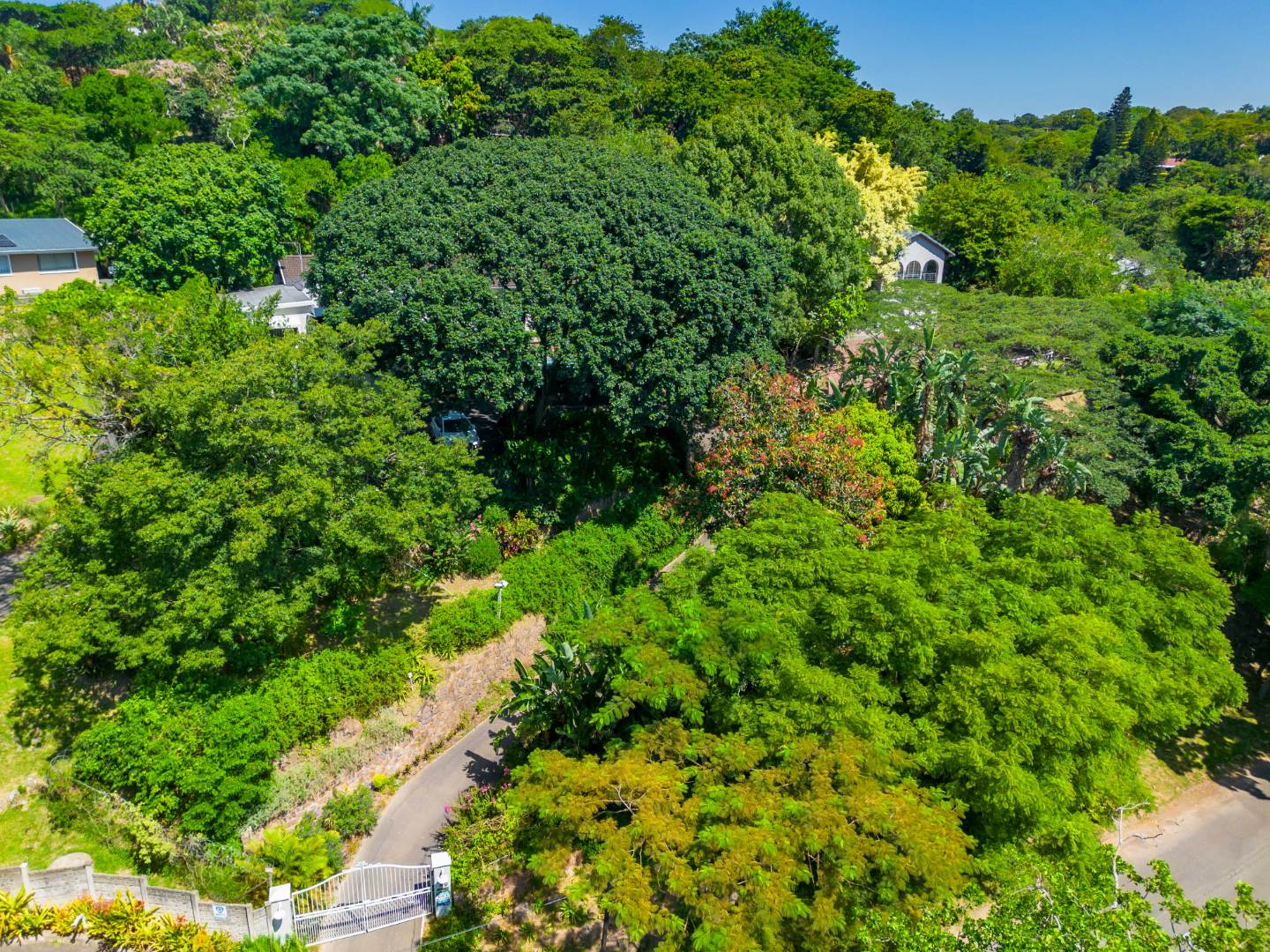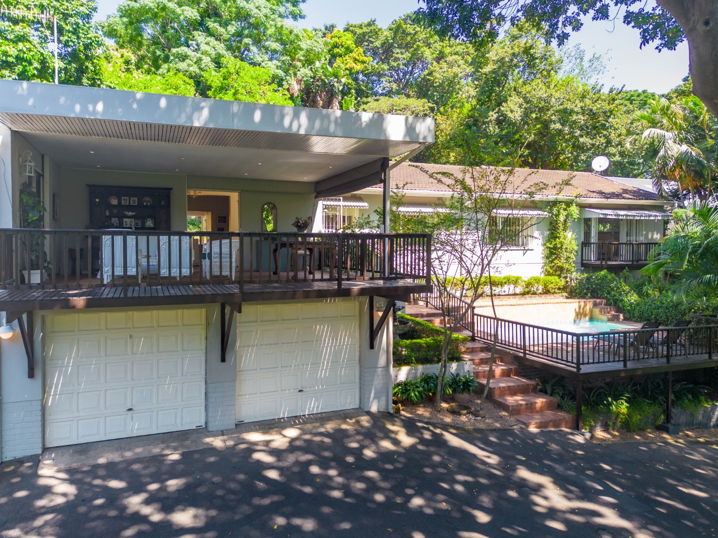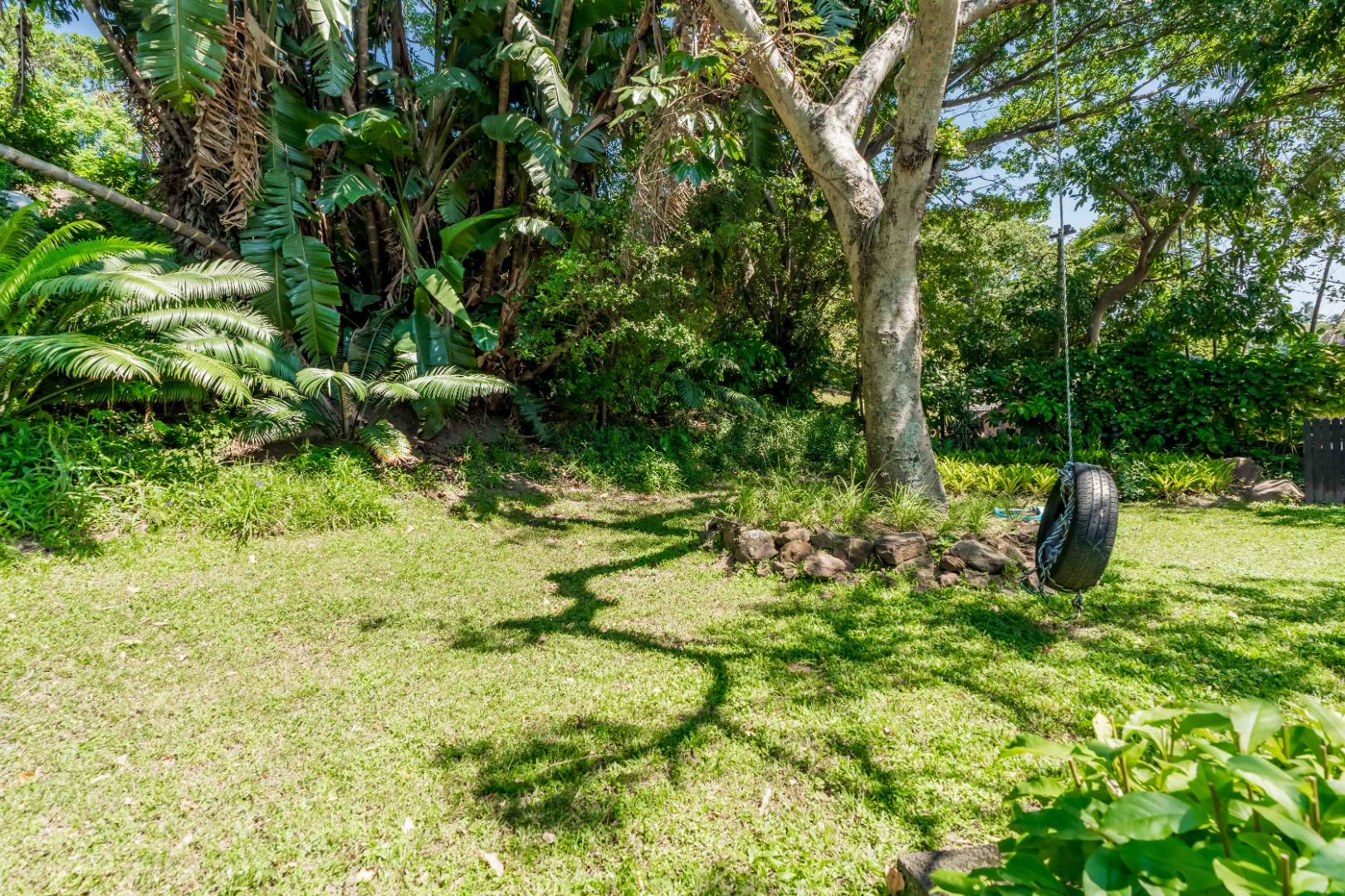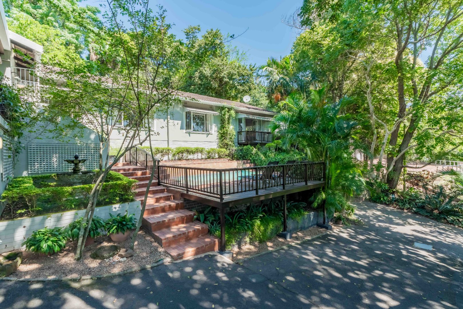 The park-like garden and wide entertainment terrace provide a serene outdoor setting framed by unique local trees and lively birdlife—perfect for morning coffee or relaxed weekends.