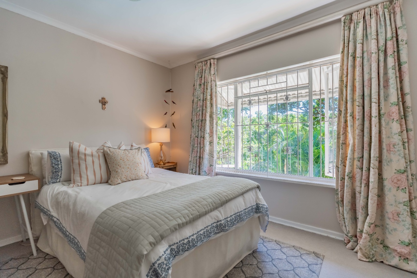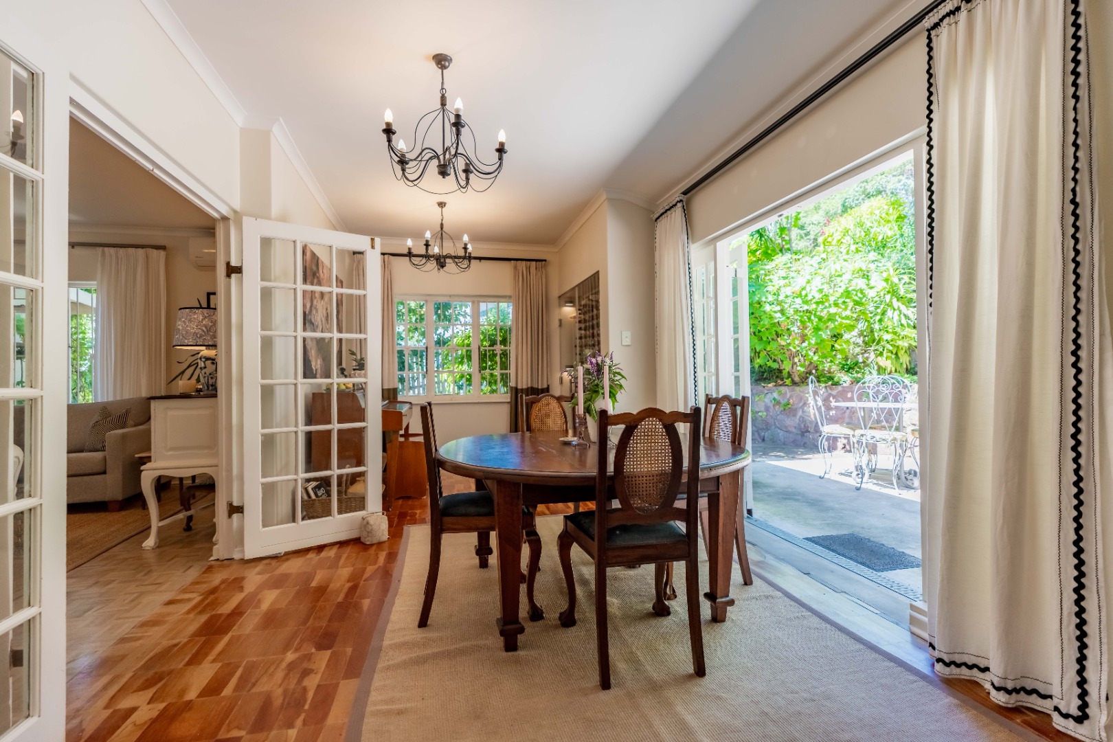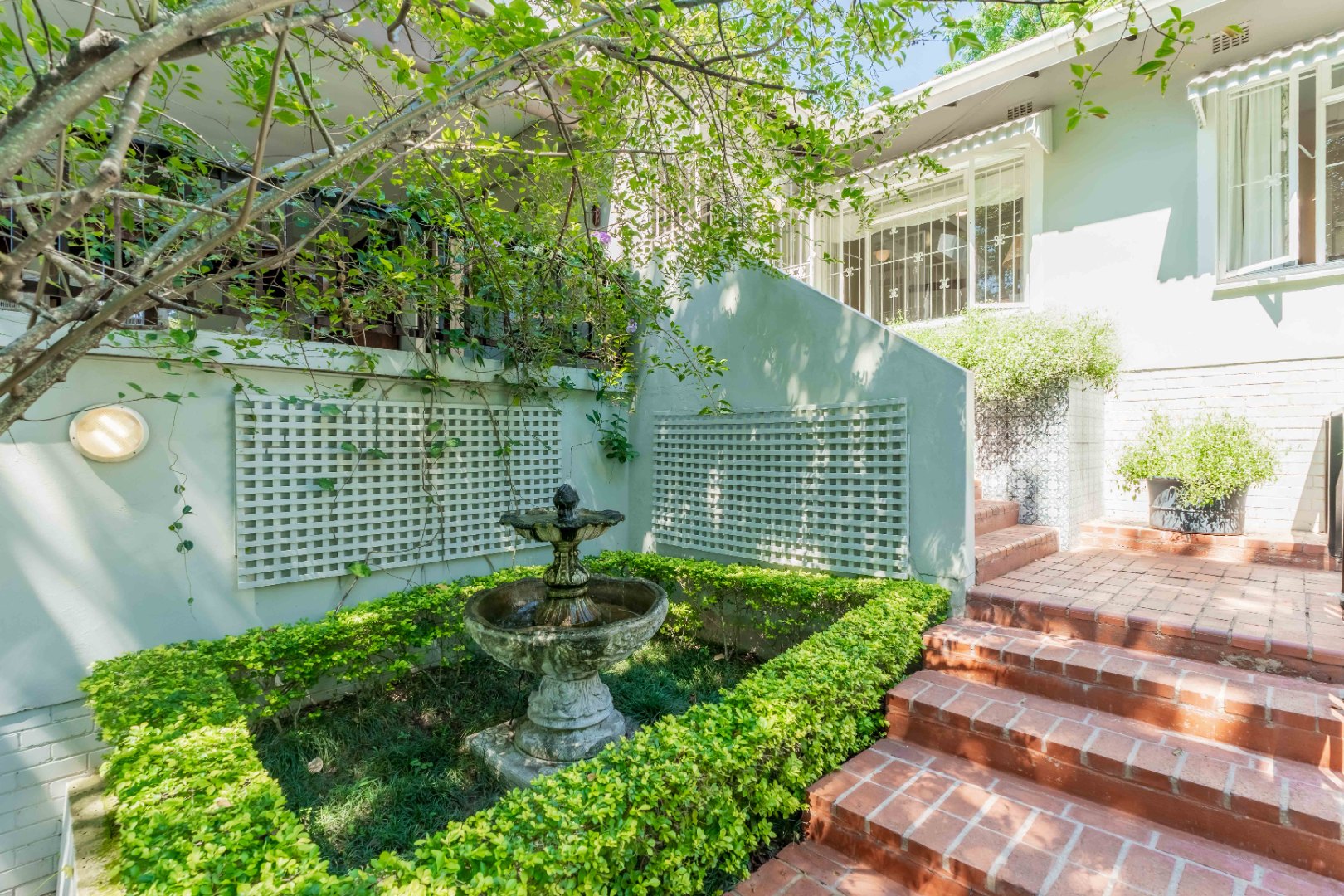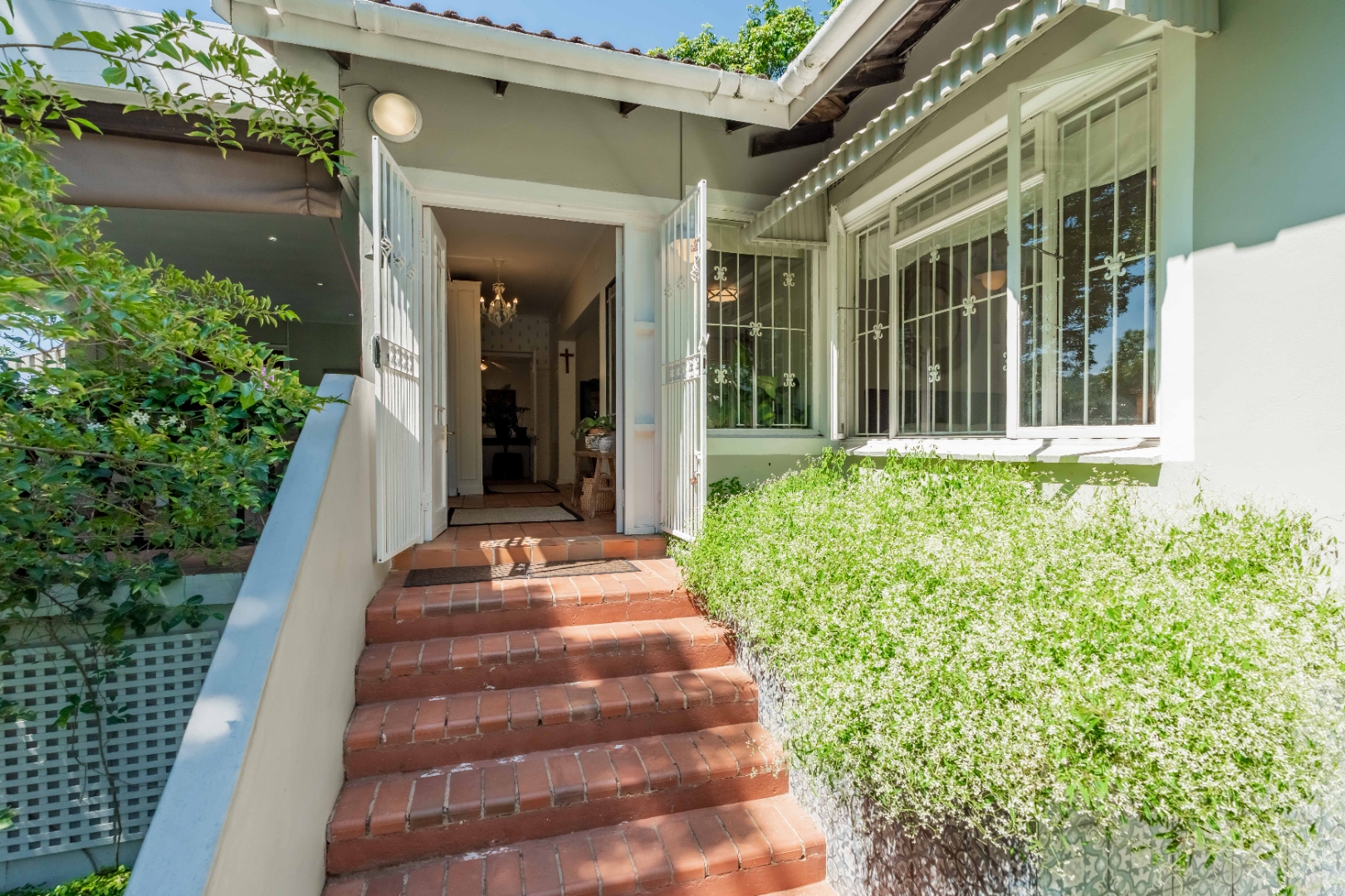 The park-like garden and wide entertainment terrace provide a serene outdoor setting framed by unique local trees and lively birdlife—perfect for morning coffee or relaxed weekends.