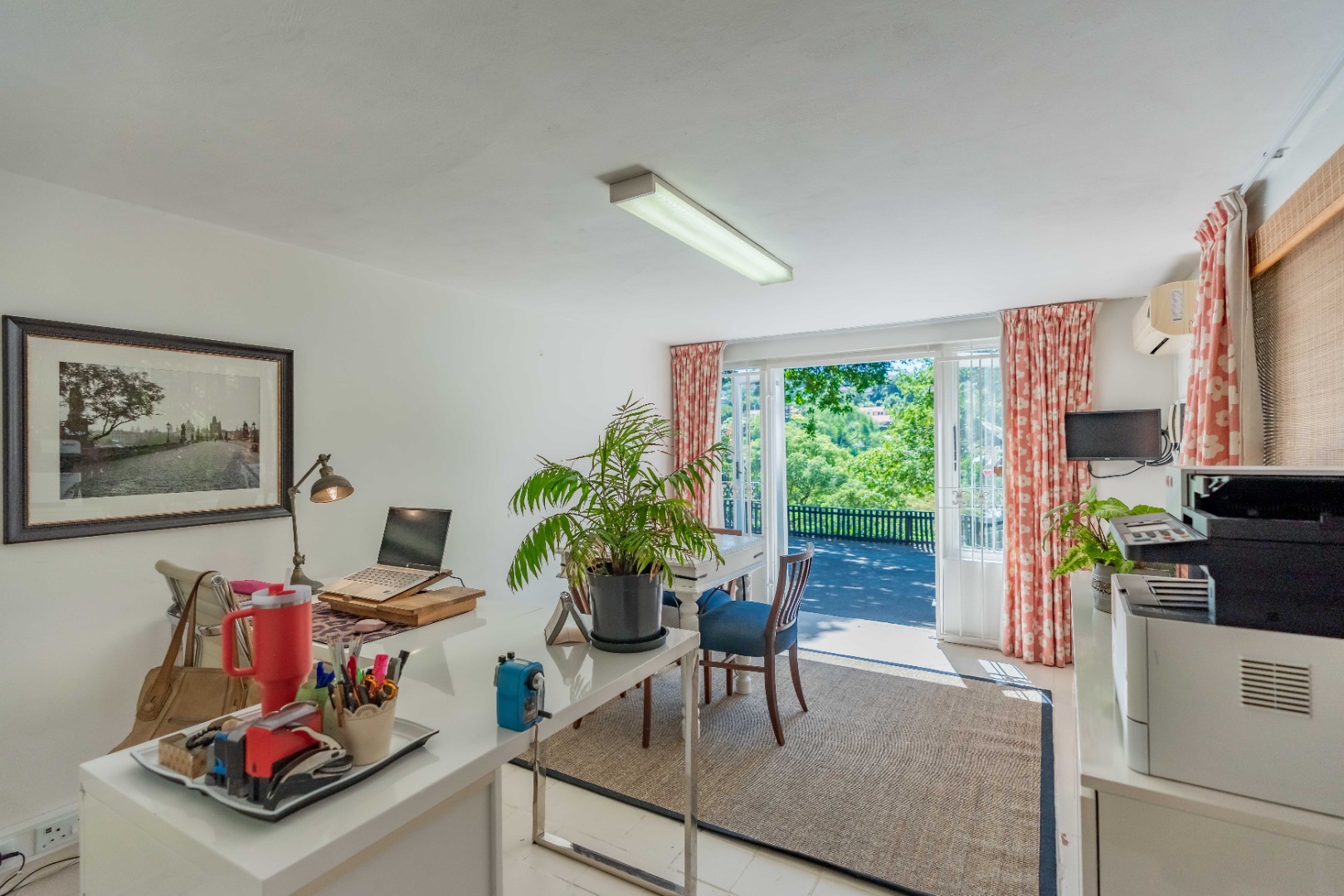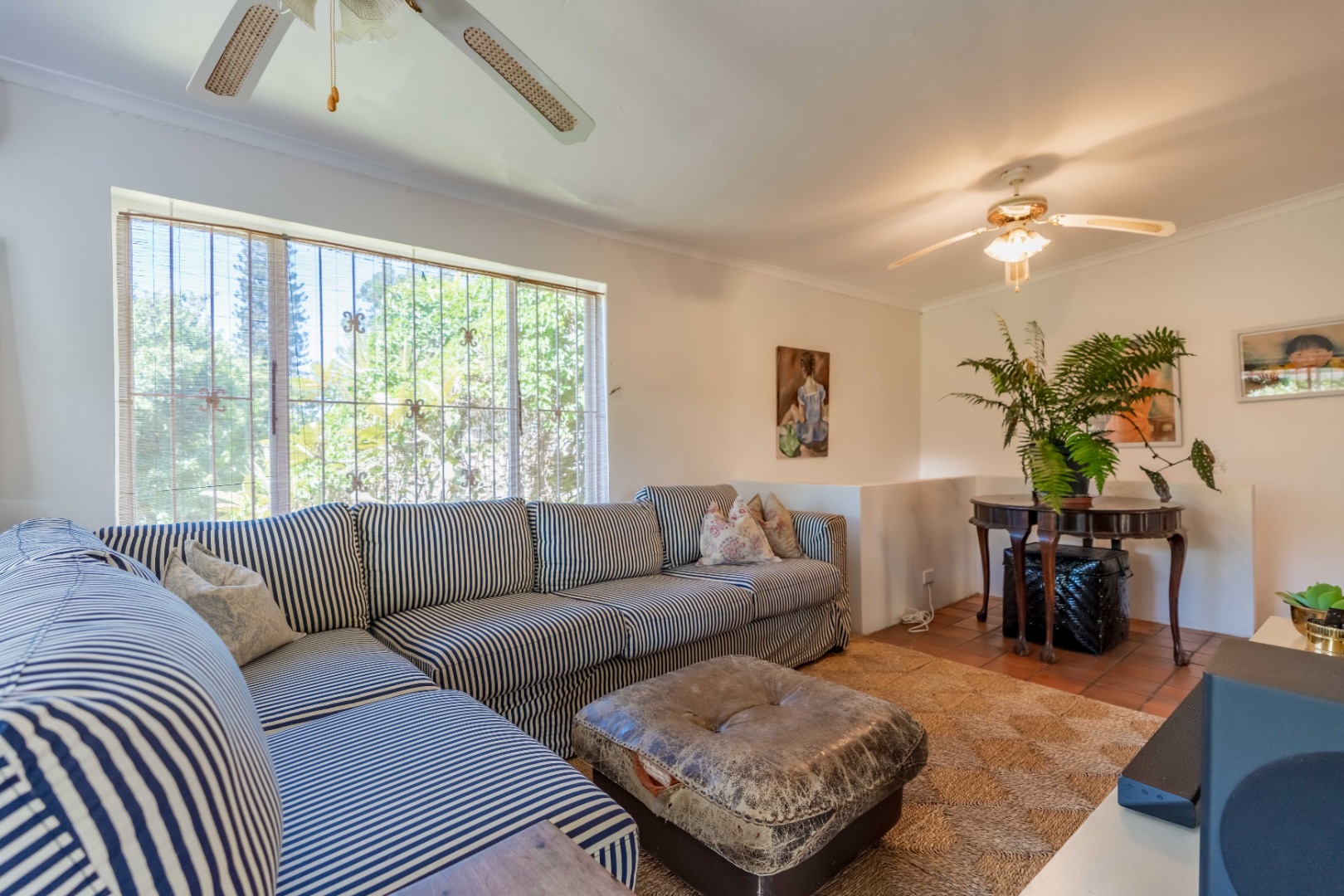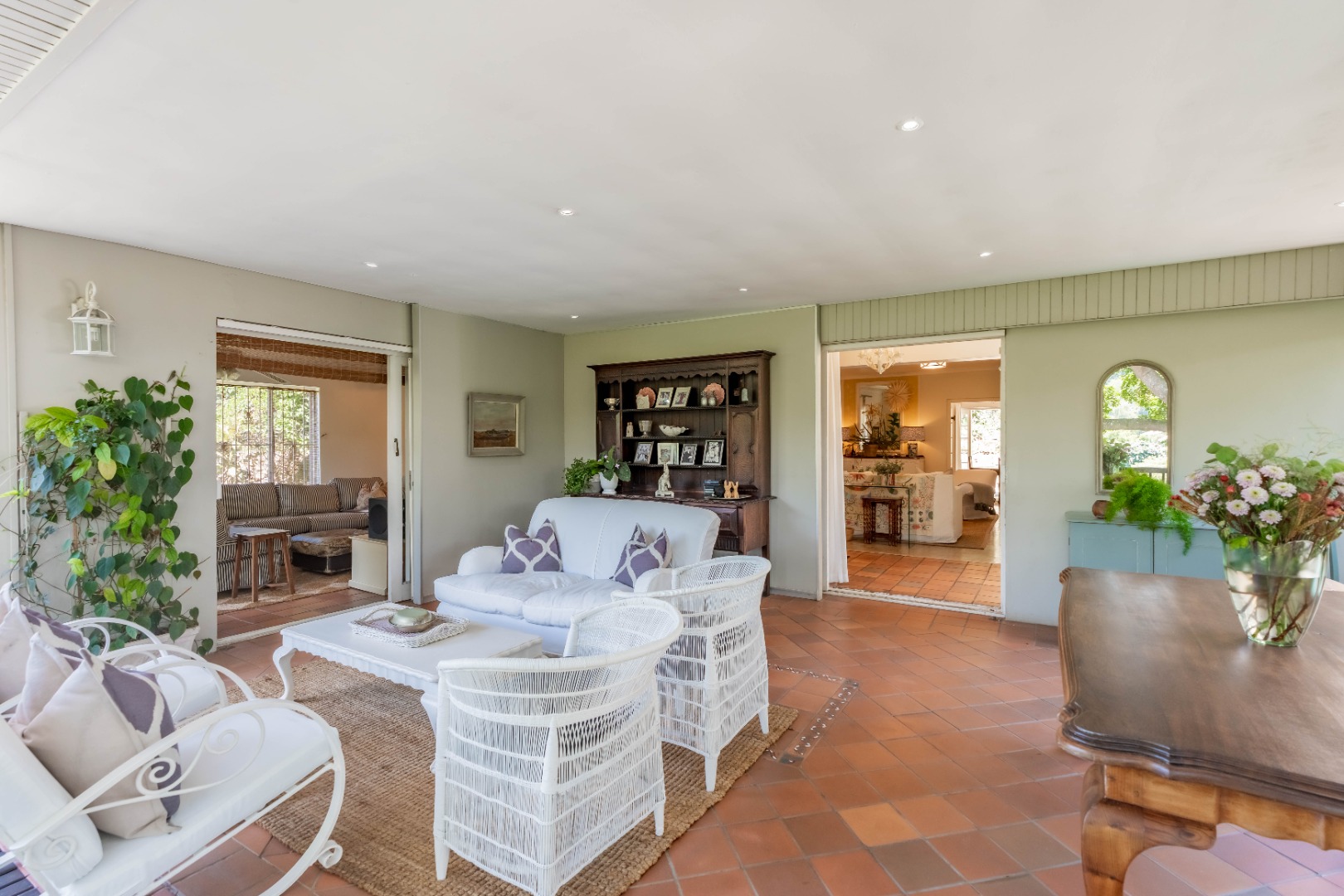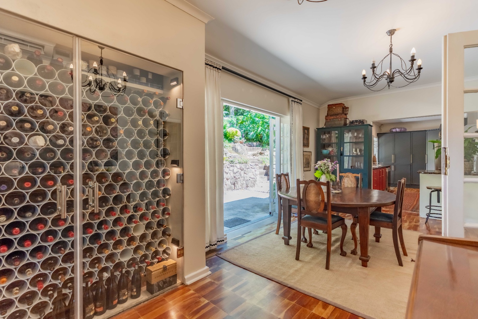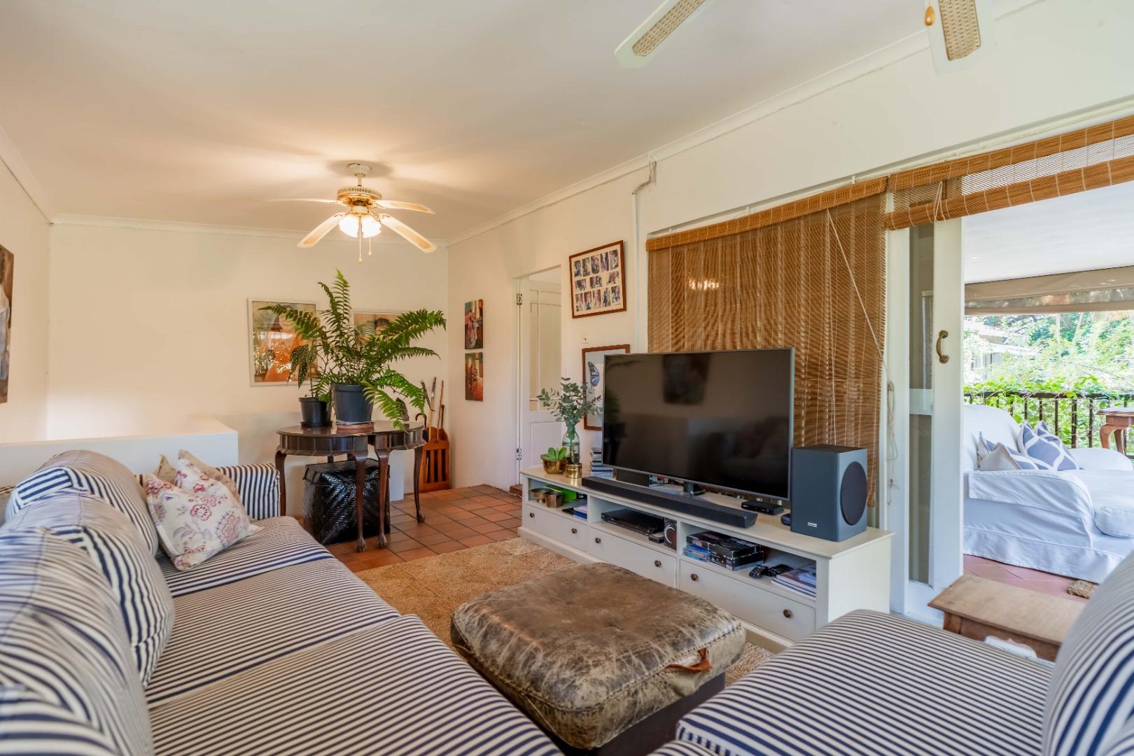 The park-like garden and wide entertainment terrace provide a serene outdoor setting framed by unique local trees and lively birdlife—perfect for morning coffee or relaxed weekends.
