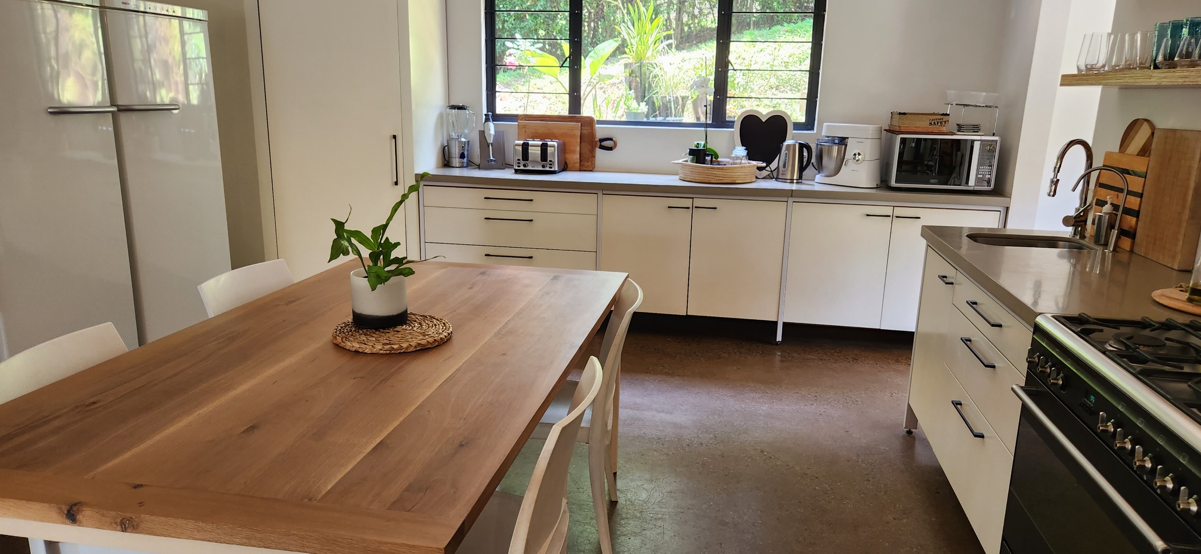 The stylish kitchen is a chef's delight boasting sleek countertops and ample cupboards and fully equipped scullery and laundry. Guest loo. Downstairs - gym or children's lounge.