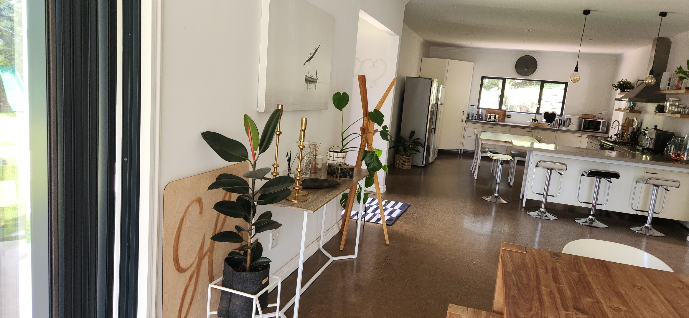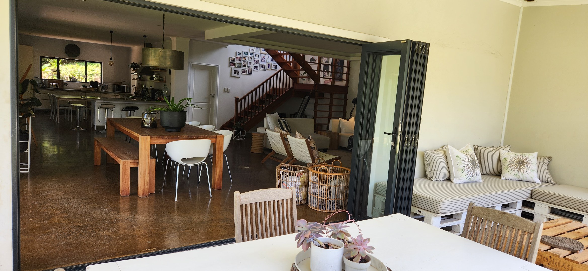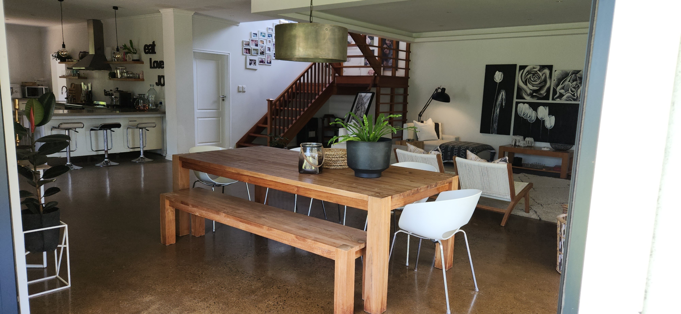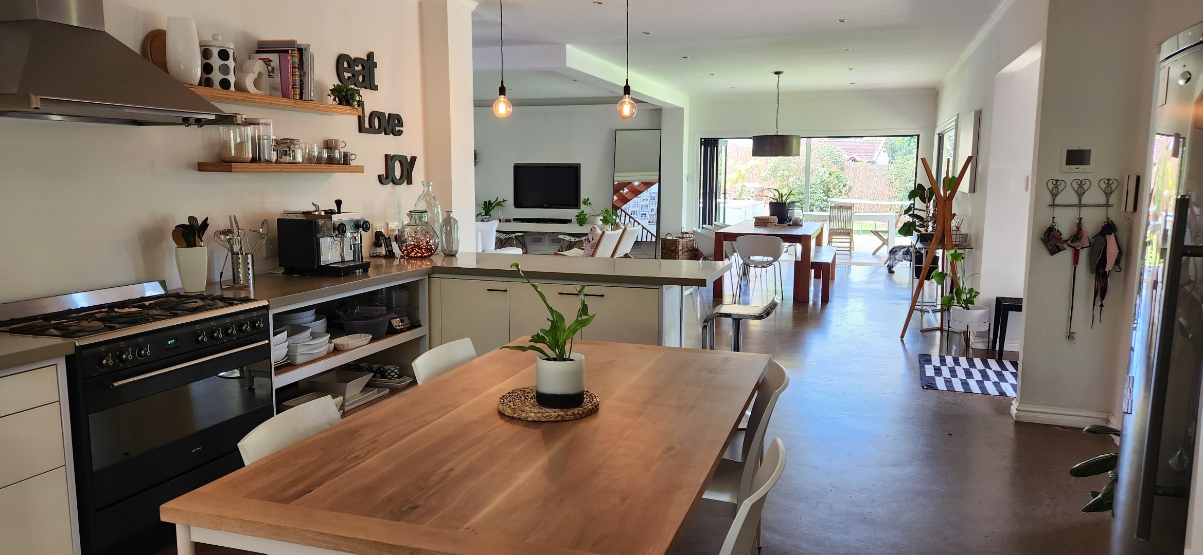 Step through the welcoming entrance onto a breathtaking open plan living space where soaring ceilings and expansive glass create a light and airy atmosphere. The open plan living room and lounge flows seamlessly to a covered patio overlooking the level garden and pool.