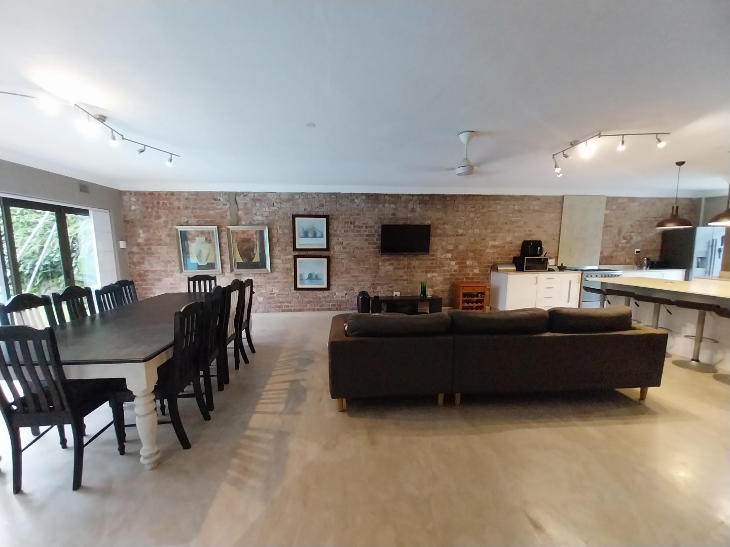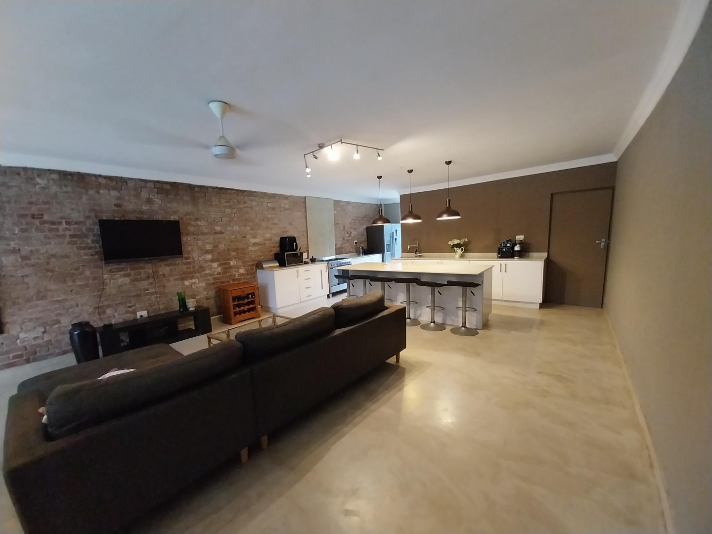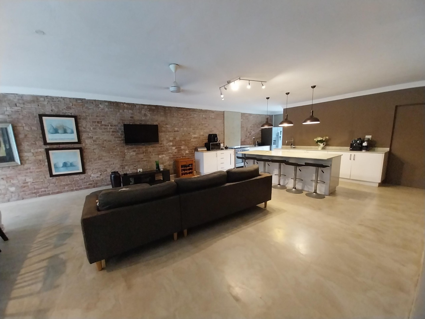 Concrete screed floors throughout for that outdoor rustic feel all year round. Soft lighting and pastel colours. You feel like you're on holiday in your own home.