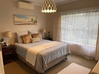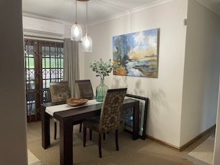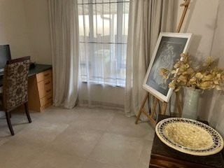 It features aluminum windows throughout, a tiled study or 4th bedroom with modern built in cupboards, a modern family bathroom complete with a bath and a separate shower, a well fitted kitchen with a separate laundry, a cozy lounge/ dining room that leads out onto a stunning, covered entertainment area overlooking the most beautiful, large garden where children and pets can play to their hearts content.