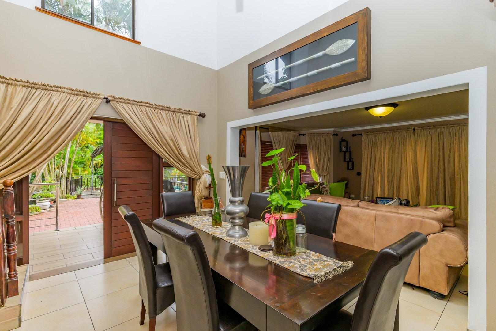 The first living area flows effortlessly from the dining space and showcases a cozy gas fireplace, perfect for relaxing evenings. This area opens up to an outdoor entertainment oasis complete with a built-in braai and a separate undercover bar area, ideal for hosting gatherings with family and friends.