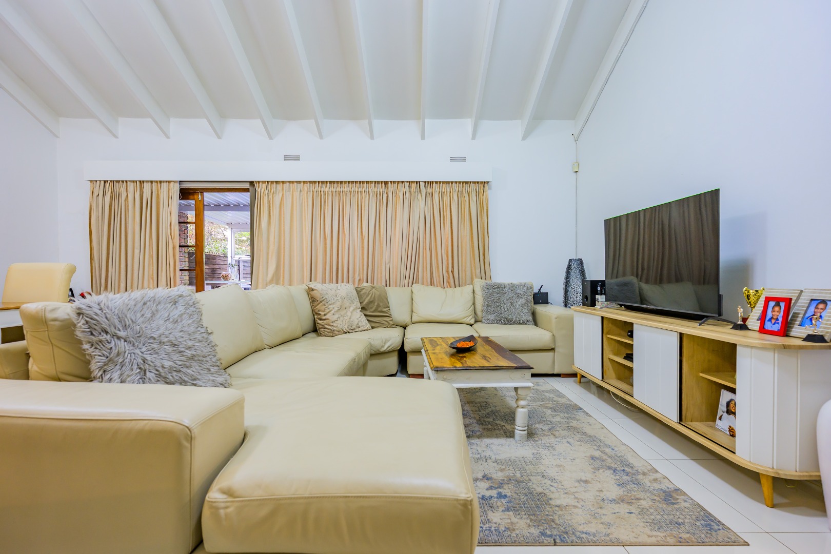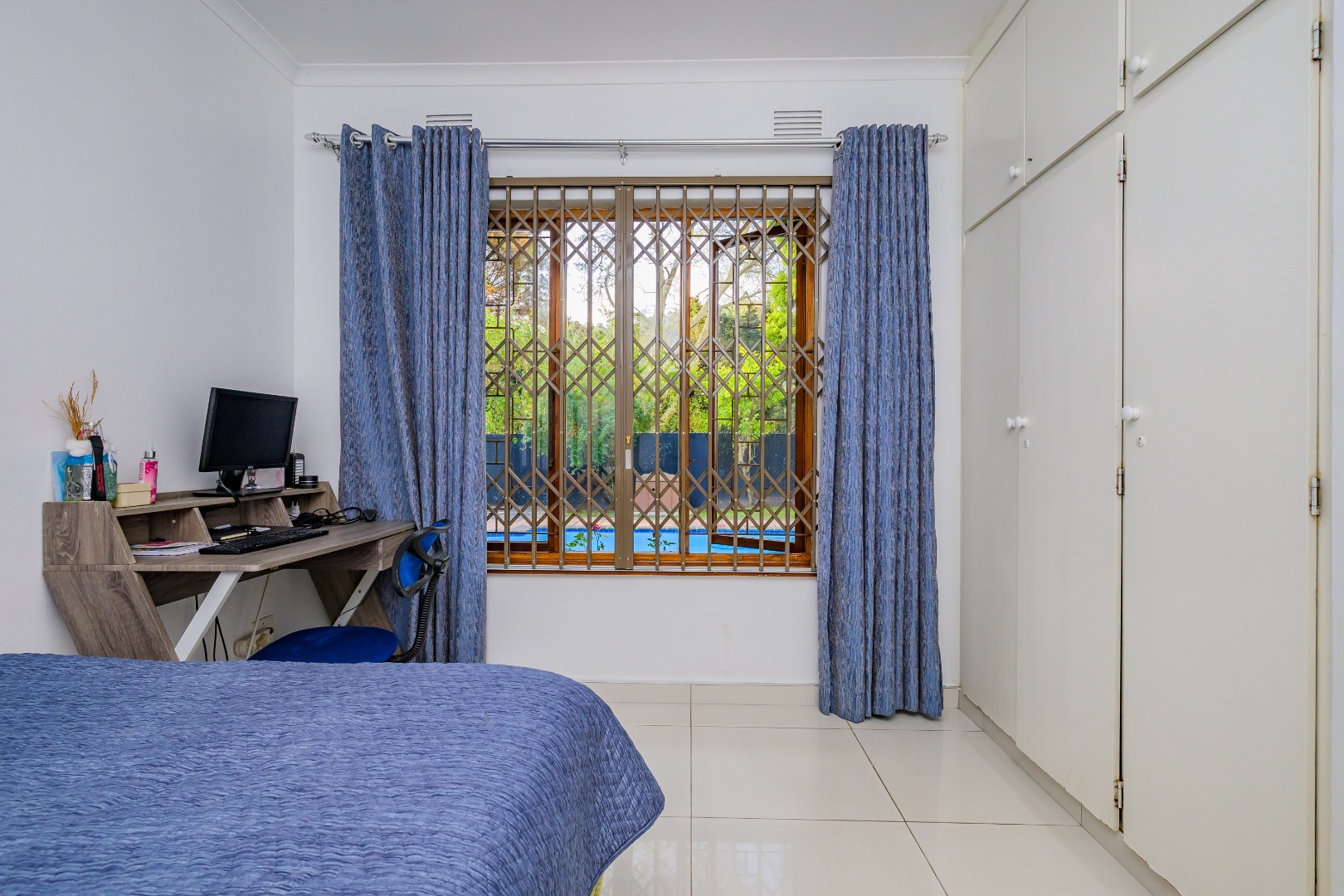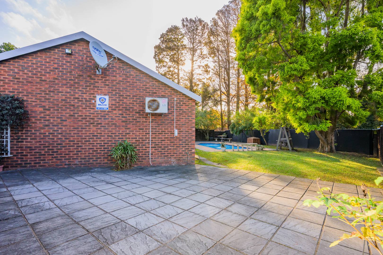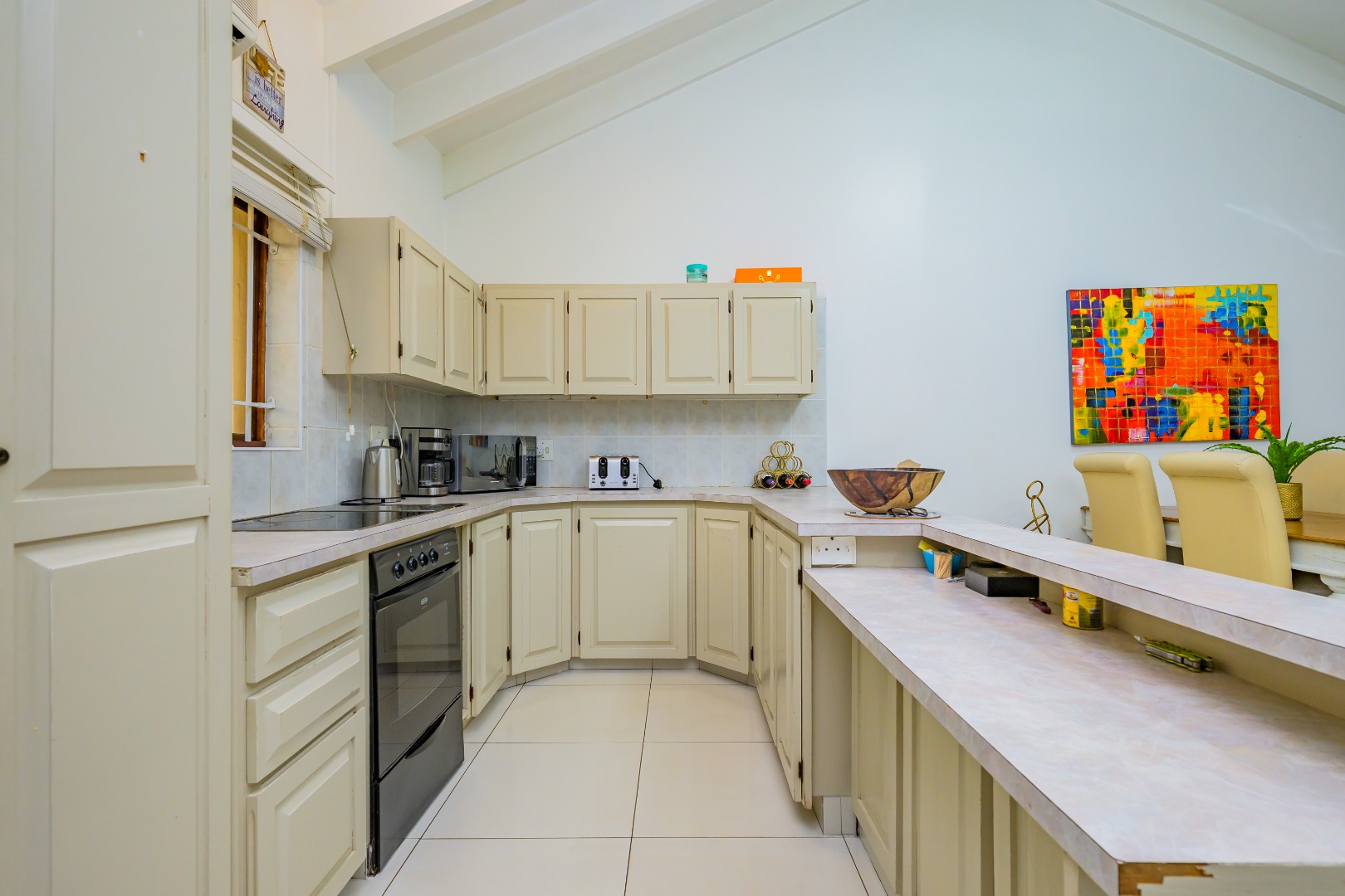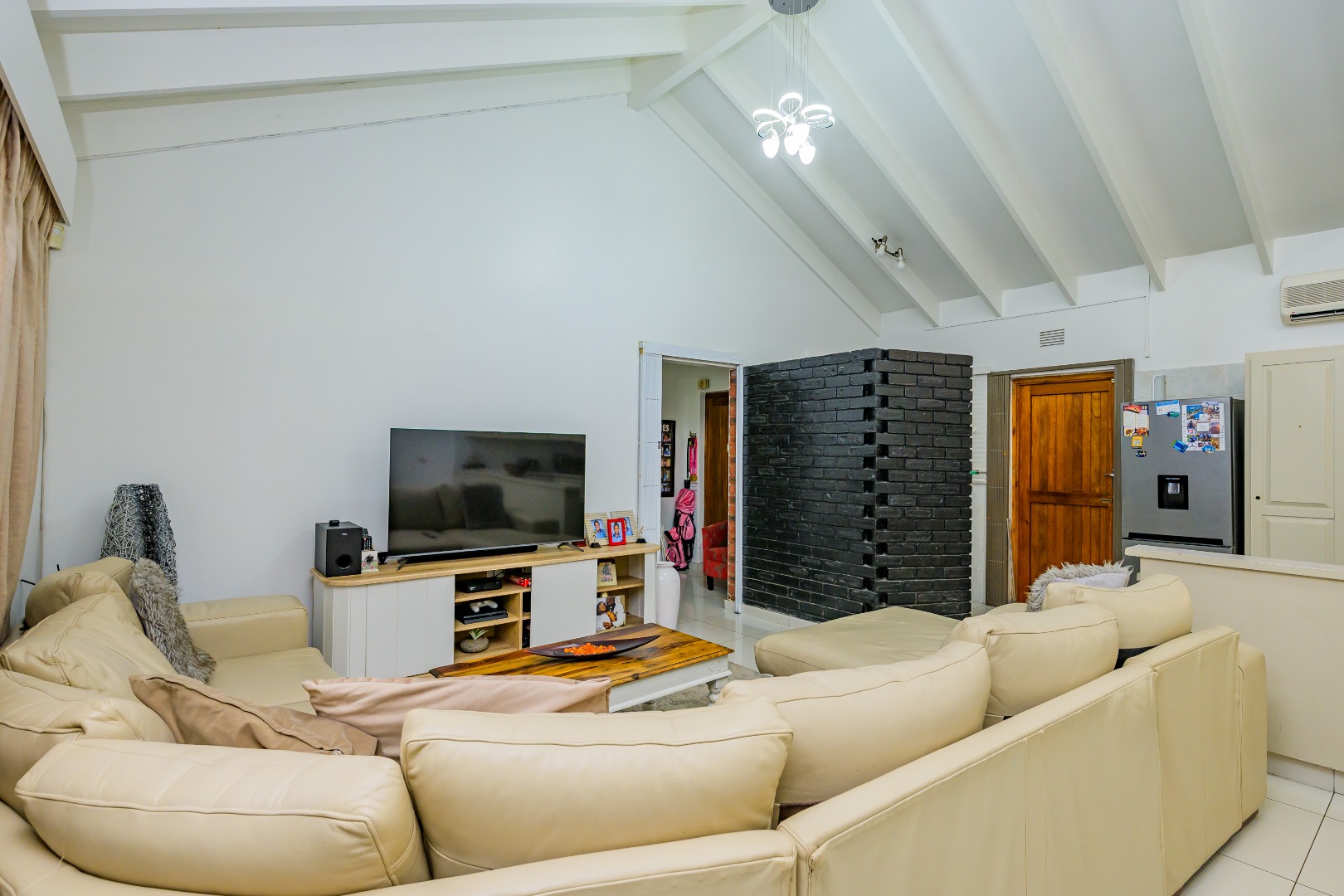 This property offers a seamless blend of comfort and style with its open-plan design, featuring a lounge, dining room, and kitchen complete with a convenient scullery, which opens out into an enclosed court yard. The interiors boast a modern aesthetic with two air-conditioning units to keep you cool throughout, and it's tiled throughout for easy maintenance.