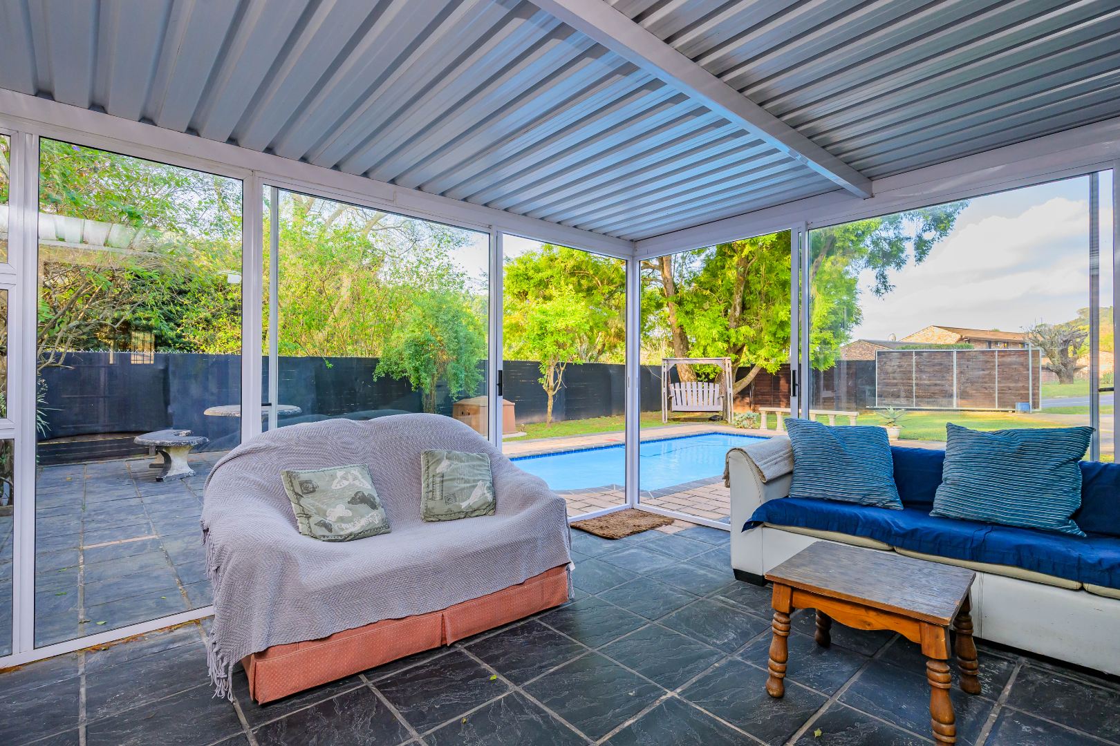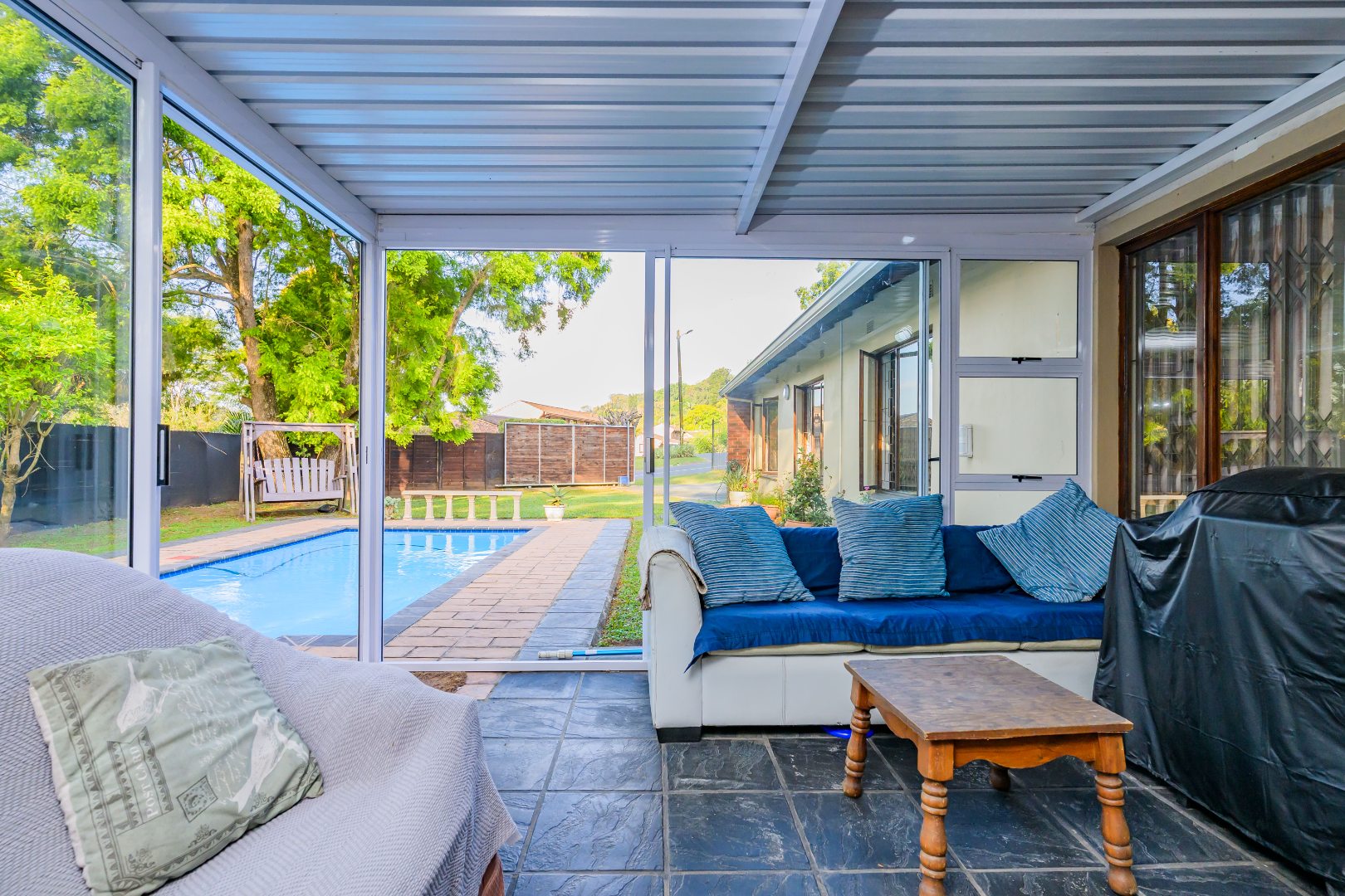 Step outside into your enclosed patio, where tranquil views of the sparkling swimming pool promise endless relaxation, where you can entertain guests or enjoy quiet mornings.