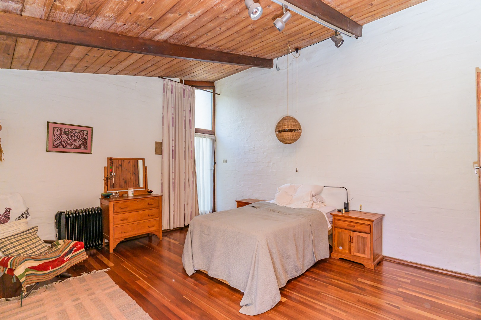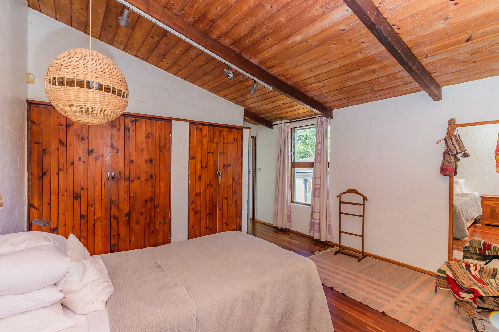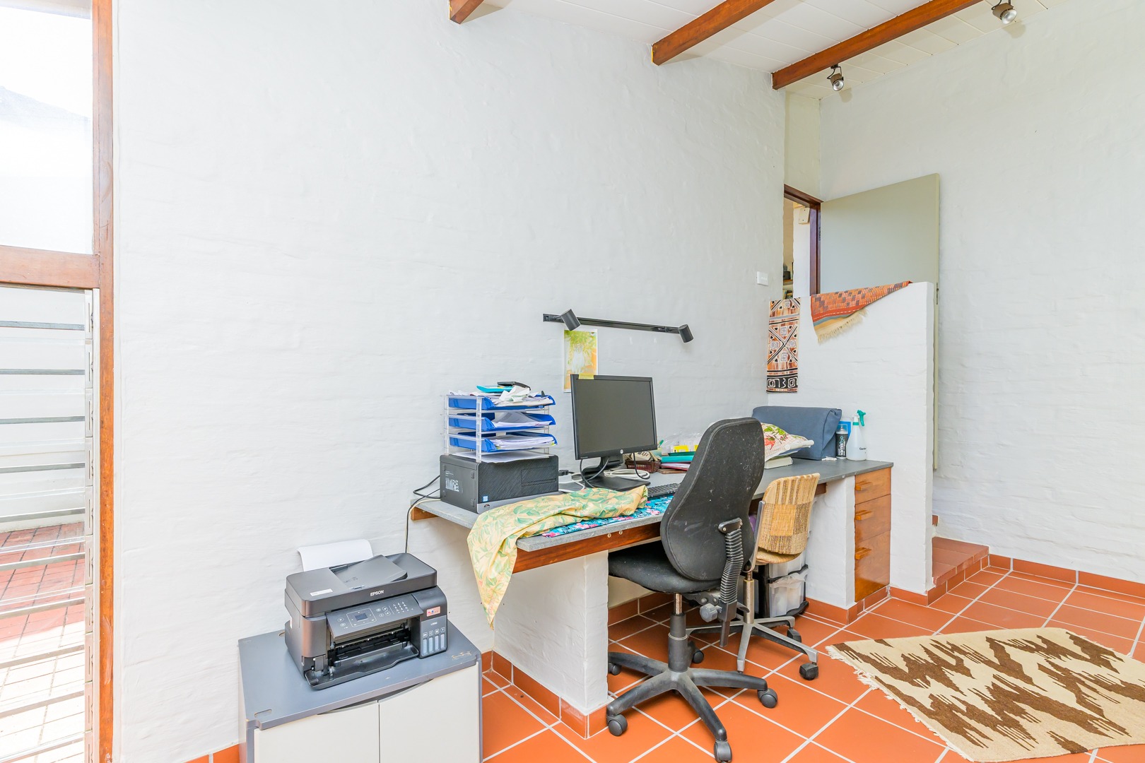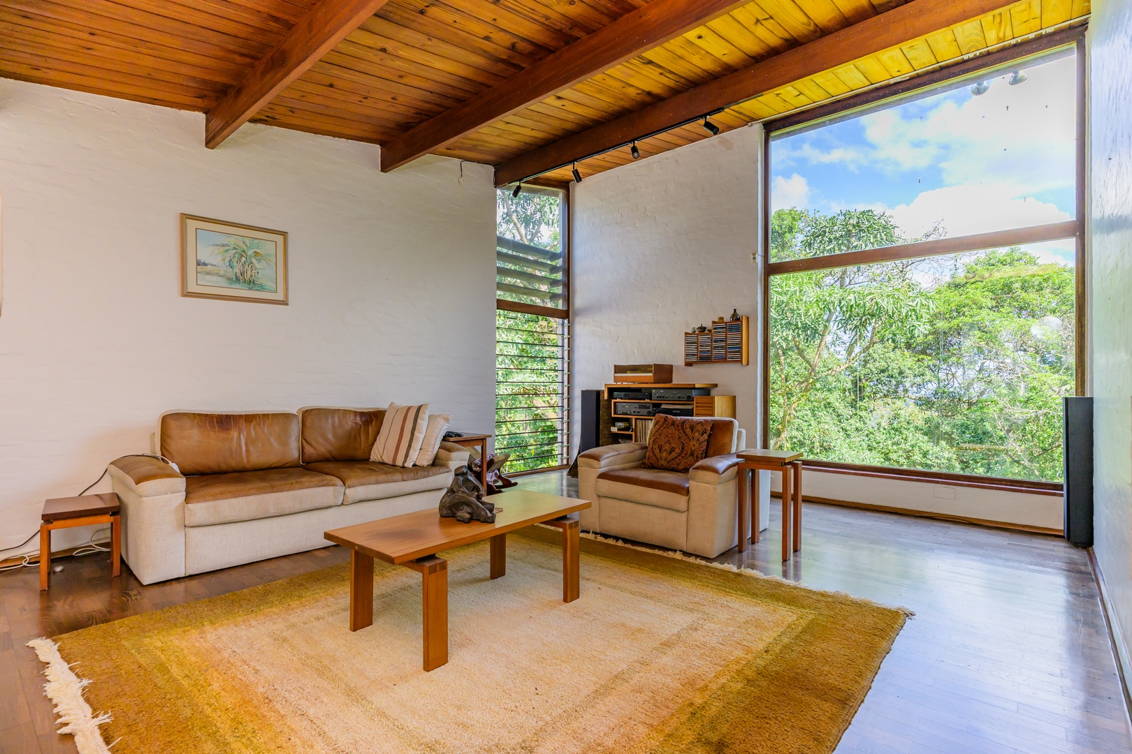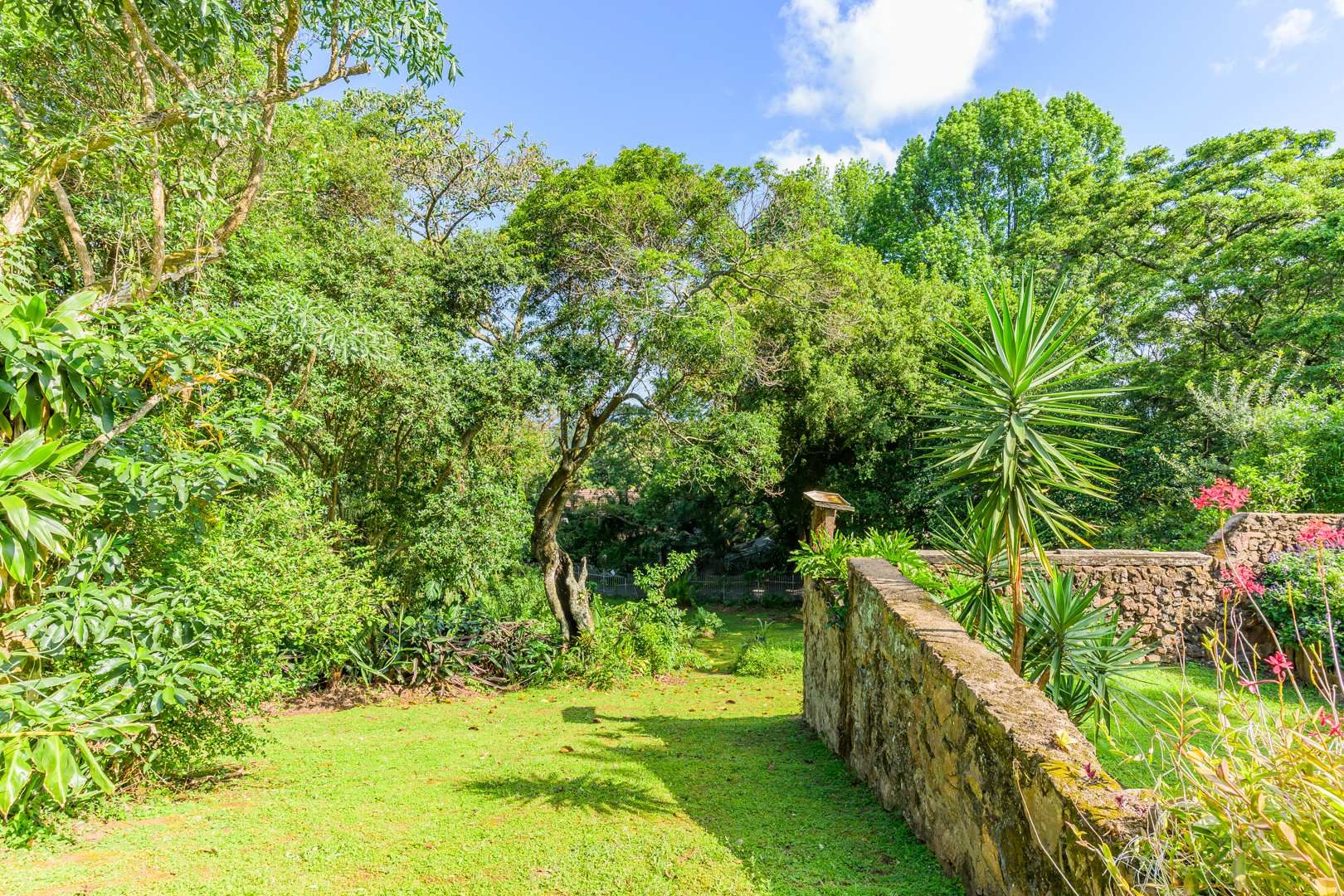 Discover this charming 3-bedroom residence nestled in the desirable suburb of Cowies Hill, Pinetown, South Africa. This home presents a striking modern architectural design, characterized by clean white walls, dark accents, and varied rooflines, creating an impressive kerb appeal. The exterior is complemented by lush, mature tropical landscaping, well-maintained lawns, and inviting brick pathways, leading to a serene outdoor pond and water feature. The interior boasts spacious living areas designed for comfort and natural light. The lounge features a distinctive exposed wooden beam ceiling, hardwood floors, and large windows that frame picturesque green views, creating an airy and inviting atmosphere. A built-in TV niche offers a streamlined entertainment setup, while sliding doors enhance the indoor-outdoor flow. The property also includes a dedicated study, perfect for remote work or a quiet retreat. The bright dining area continues the theme of natural light and warmth, with an exposed wooden beam and planked ceiling, terracotta-style flooring, and expansive glass windows that connect seamlessly with the surrounding greenery. The home offers three comfortable bedrooms and one well-appointed bathroom, alongside a convenient guest toilet. A functional kitchen and ample storage further enhance daily living. Outdoor living is a highlight, with an expansive wooden deck and a private patio providing ideal spaces for relaxation and entertaining amidst the beautiful garden. The property is totally walled for privacy and includes an access gate and burglar bars for enhanced security. Additional practical features include staff quarters and two dedicated parking spaces, with pets being allowed. This home offers a blend of character and functionality in a sought-after location. Key Features: * 3 Bedrooms, 1 Bathroom * Spacious Lounge with Wooden Beam Ceiling * Dedicated Study * Expansive Wooden Deck and Patio * Lush Tropical Garden with Water Feature * 2 Parking Spaces * Staff Quarters * Access Gate and Burglar Bars * Pets Allowed
