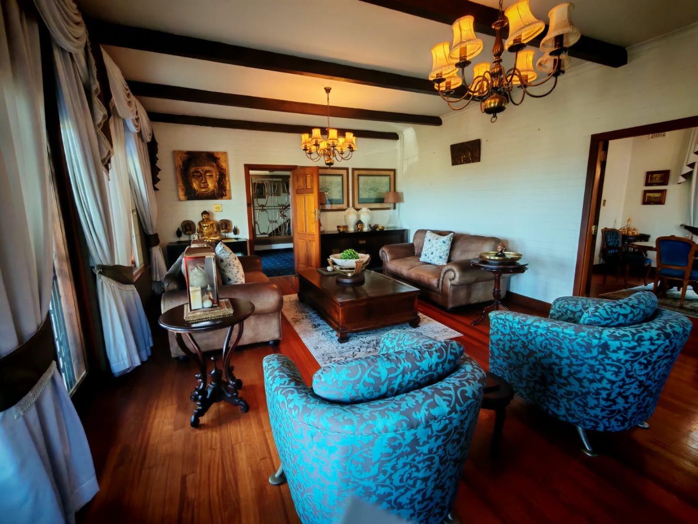 Step into timeless Tudor elegance, where stained-glass charm meets modern refinement. From grand lounges with wooden floors to a designer kitchen and a