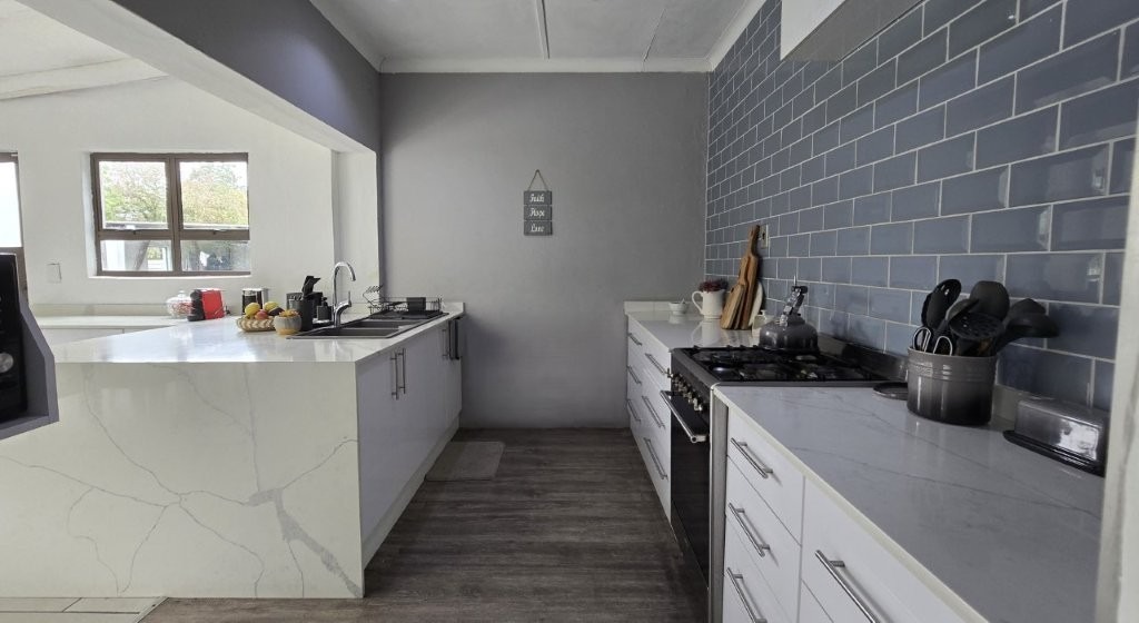 THE MAIN HOUSE - Is fully tiled, boasting 4 bedrooms (BIC). 2 bathrooms (1 X SES). Airconditioned lounge. Stunning kitchen with quartz tops & gas stove / Elec oven. Large pantry. Sun lounge / dining area. Storage. Large swimming pool & covered patio. All fully walled with auto access. Fully alarmed.
