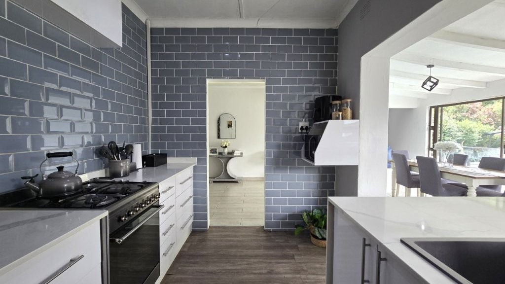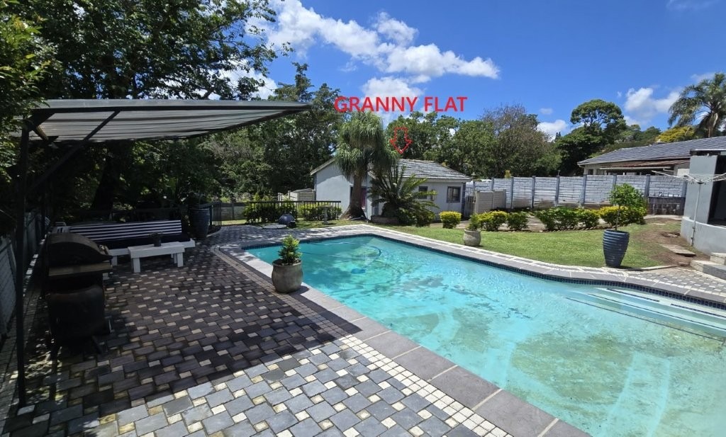 THEN GRANNY FLAT - Is a great bond buster! Free standing & fully tiled. 2 bedrooms. Bathroom. Open plan kitchen with fitted hob. Gas geyser. CURRENTLY LET AT R7000 PM with an ideal tenant should the next owner wish to have him stay on.