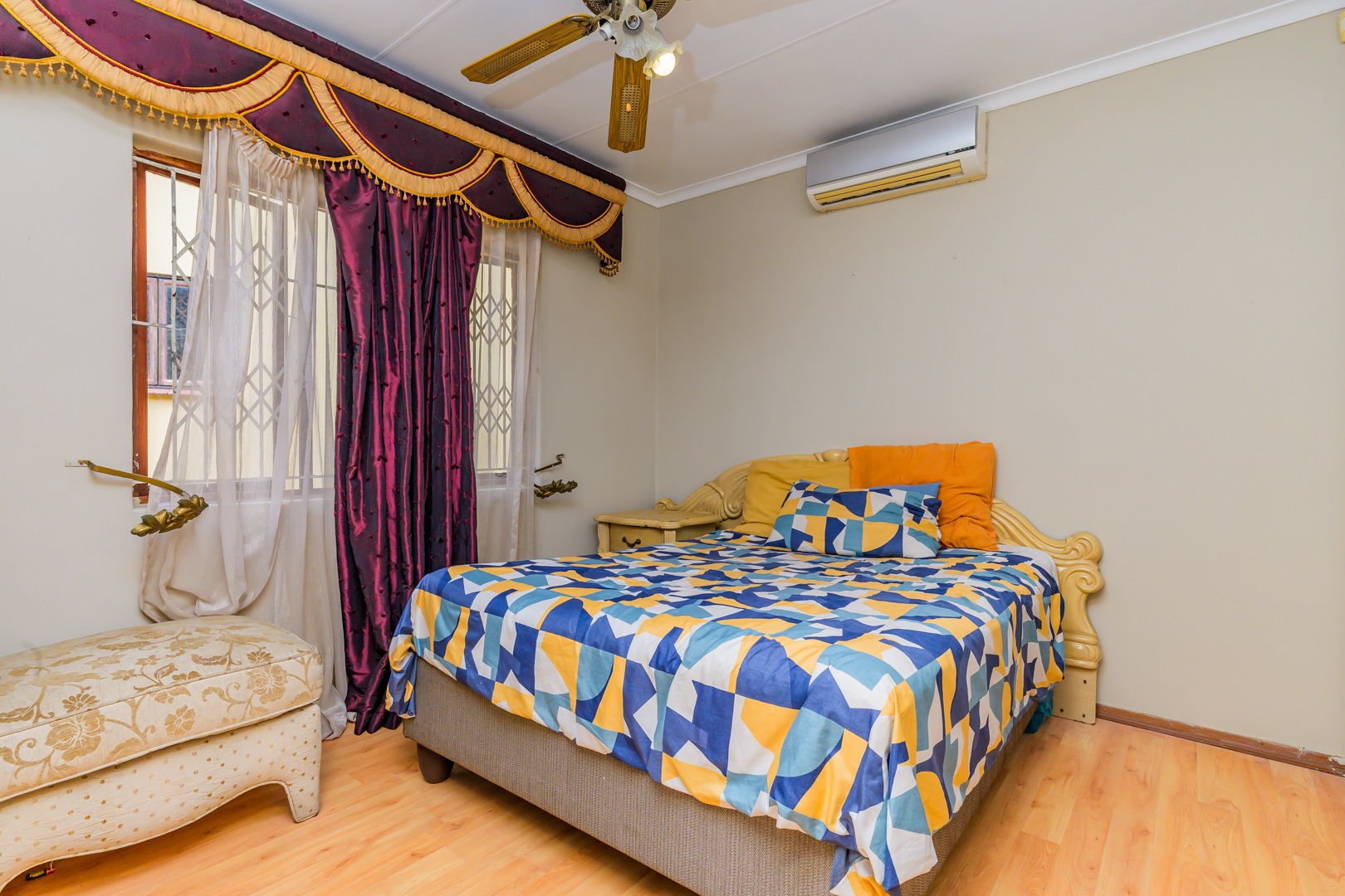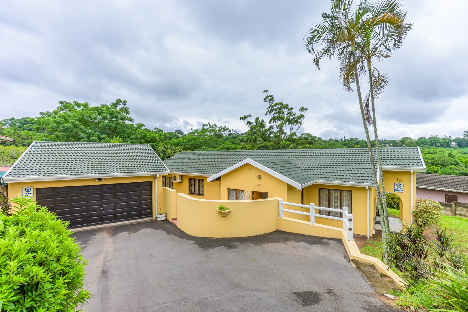 Charming single-story , nestled in a cul de sac in Moseley Park, Pinetown. This inviting property offers a distinctive kerb appeal with its vibrant exterior and well-maintained garden, featuring tall palm trees and dense foliage. The paved driveway leads to a double automated garage, providing ample parking for up to four vehicles.