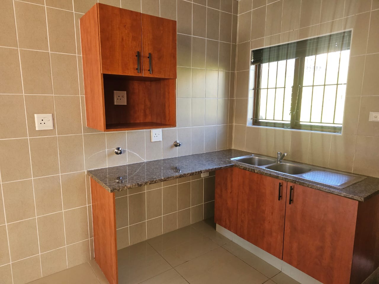 Modern Kitchen:* The heart of the home features sleek countertops, an under-counter oven, and hob, beckoning culinary experiences that lead out to a paved patio complete with a delightful courtyard.