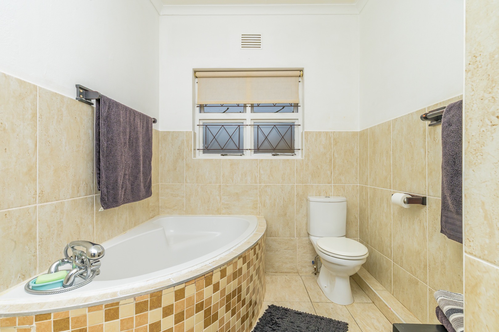 The residence includes three well-proportioned bedrooms, each offering natural light and built-in cupboards for practical storage solutions. The main bedroom benefits from an ensuite bathroom, while a second bathroom serves the remaining rooms, ensuring comfort for all residents.