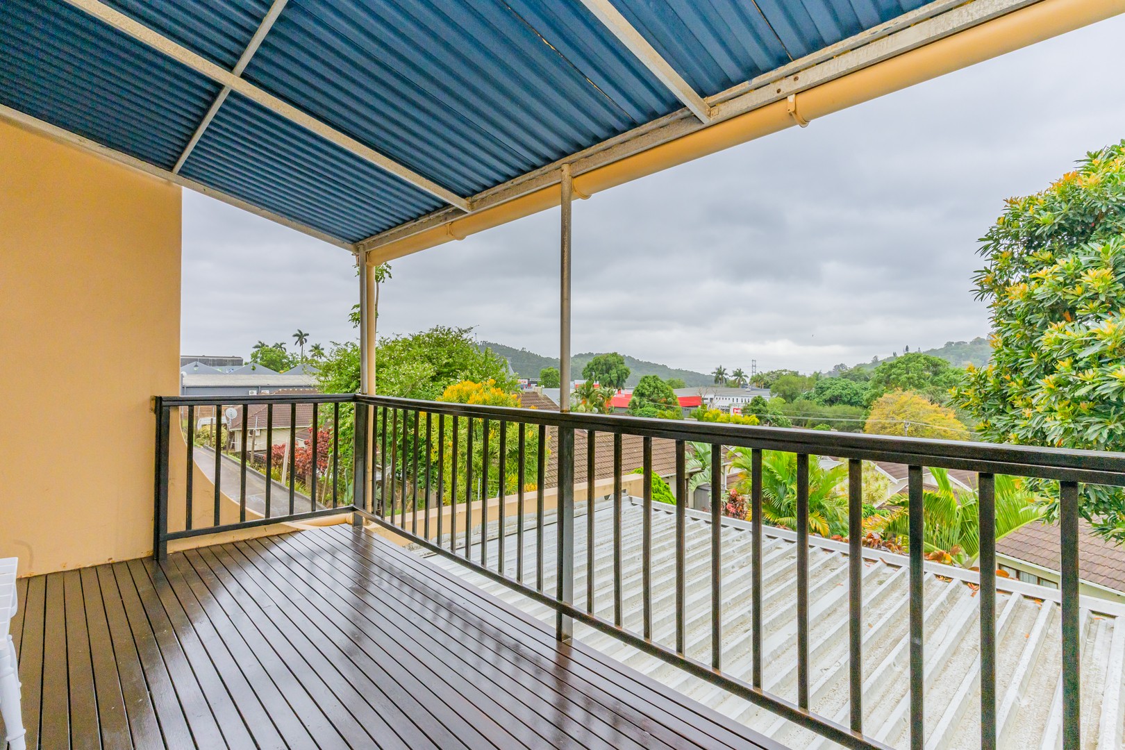 Step inside to a functional interior designed for everyday living. The kitchen boasts ample dark wood cabinetry, granite countertops, a built-in oven, hob, and extractor fan, complemented by a convenient movable island and a pass-through window connecting to the living area. Tiled flooring extends into the spacious lounge and dining room, creating a cohesive flow. The lounge features modern two-tone walls and offers direct access to a deck, perfect for enjoying the scenic views. A dedicated bar area adds to the entertainment potential of the space.