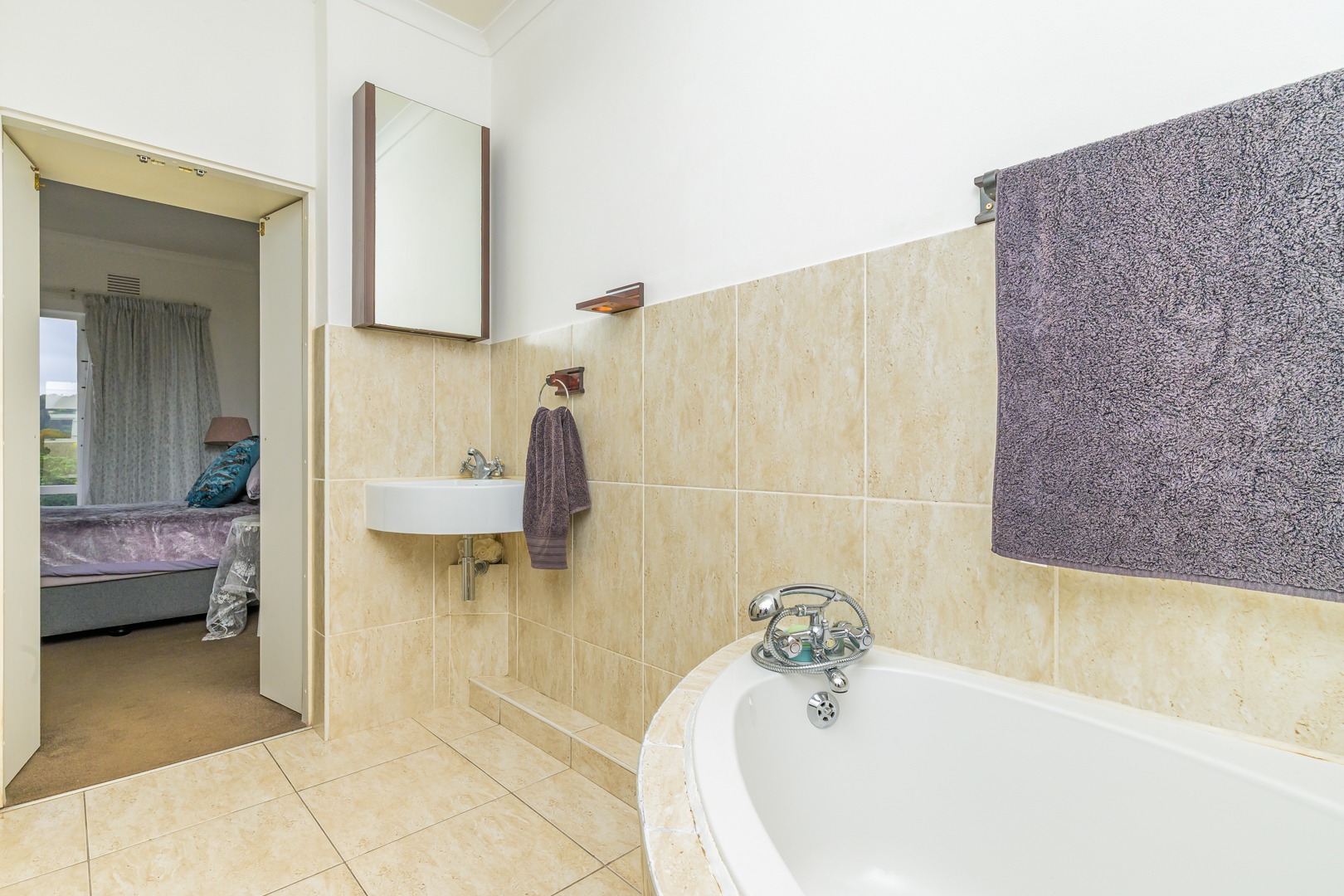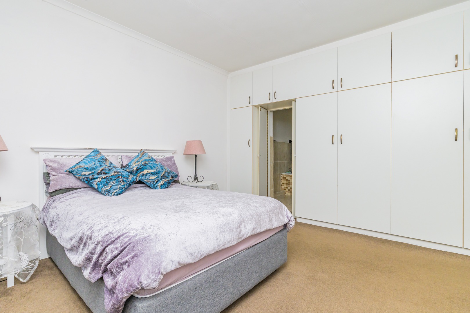 The residence includes three well-proportioned bedrooms, each offering natural light and built-in cupboards for practical storage solutions. The main bedroom benefits from an ensuite bathroom, while a second bathroom serves the remaining rooms, ensuring comfort for all residents.