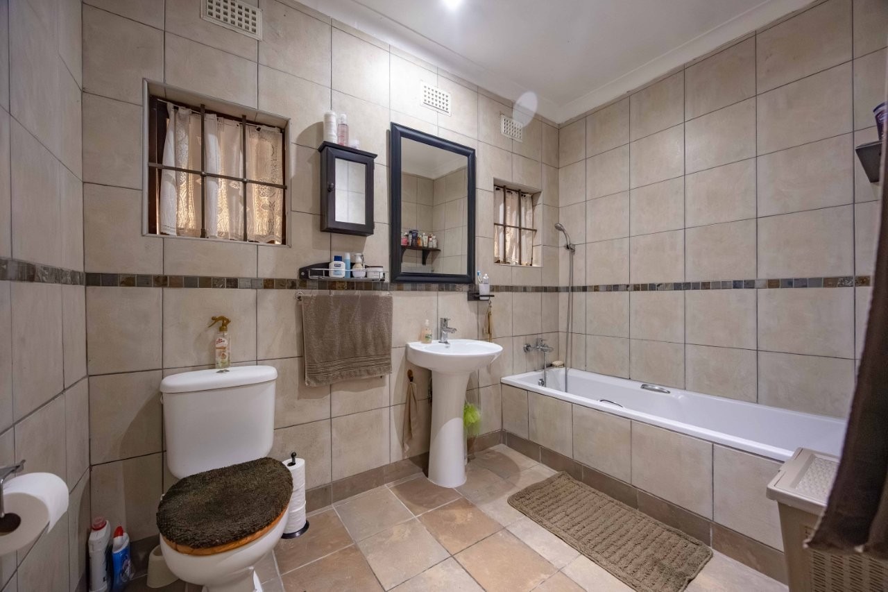 A single lock up garage with a double aluminum carport plus extra parking for +- 8 cars. The cherry on top is a large newly refurbished marbelite pool surrounded by a beautiful garden where children and pets can play to their hearts content. There is a lovely, enclosed patio with a water feature and a built in braai for all weather conditions come rain or shine.