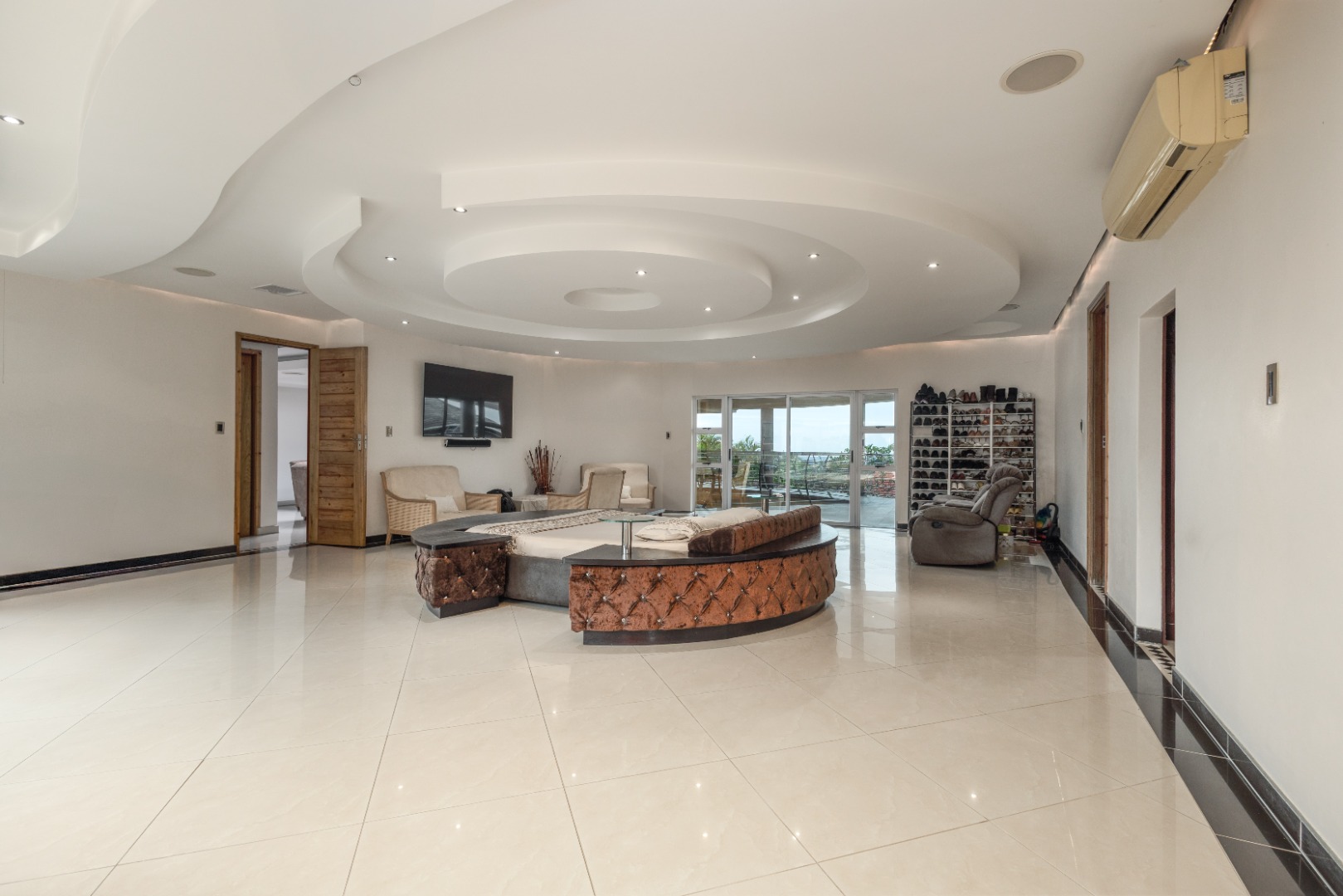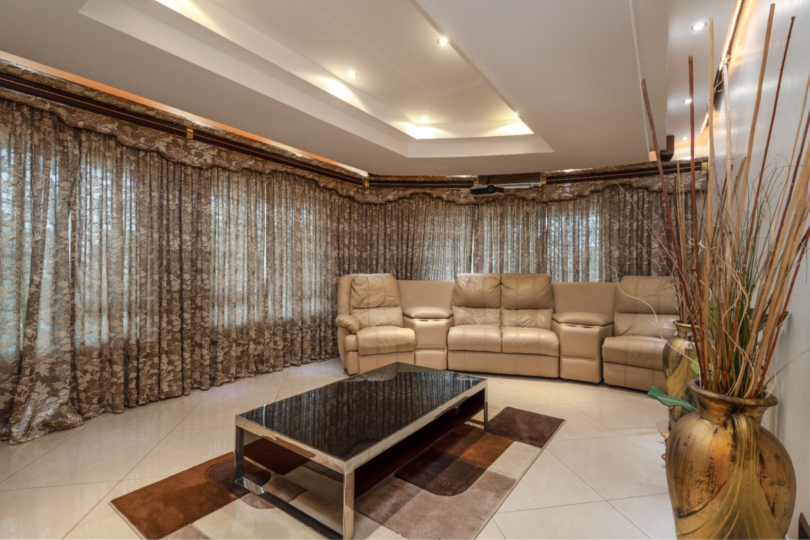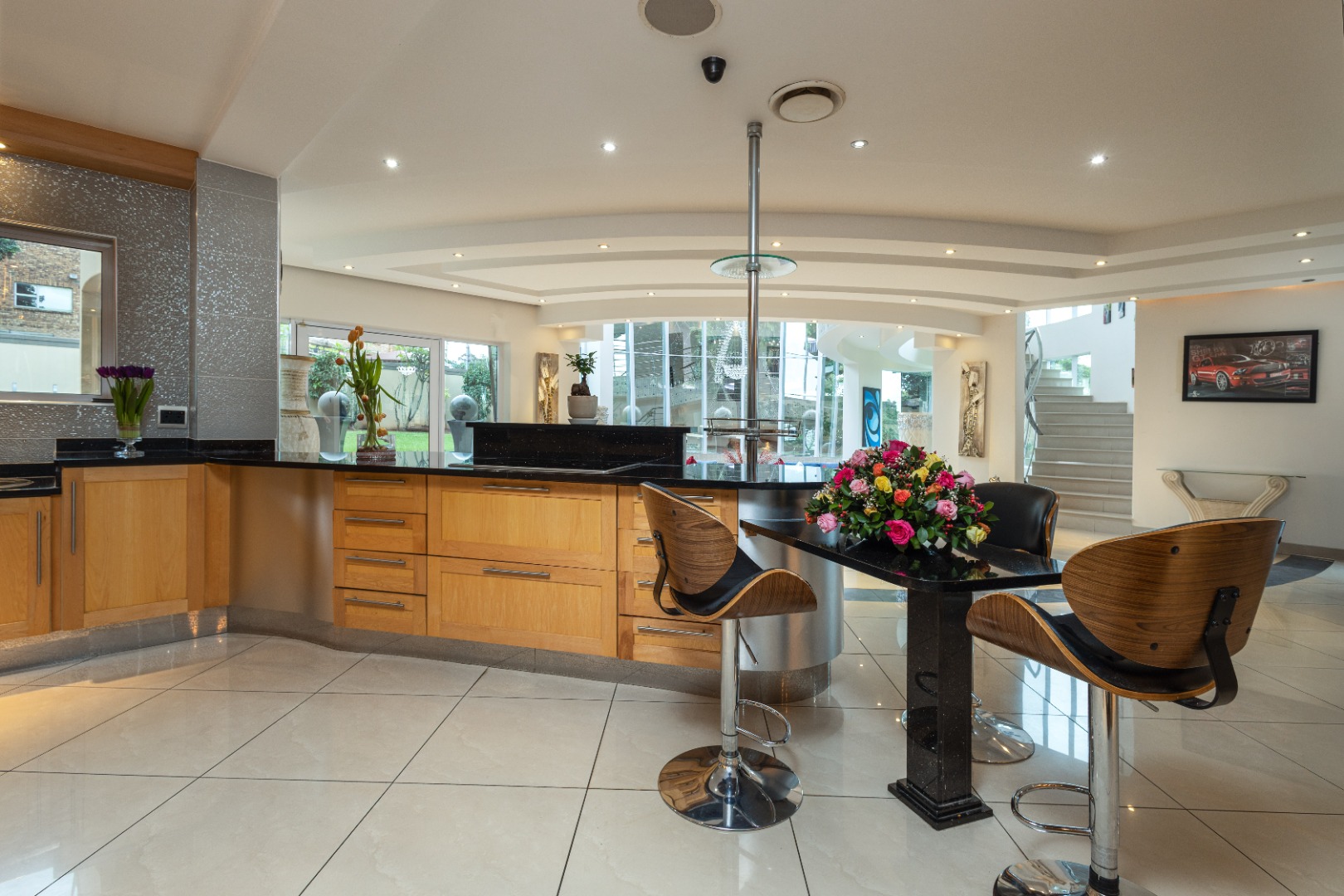 From the moment you arrive the home whispers elegance, guiding you into a world of sophistication. Step inside to discover a double-volume entrance flooded with natural light, featuring shimmering porcelain tile throughout. A cozy pyjama lounge floats overhead.