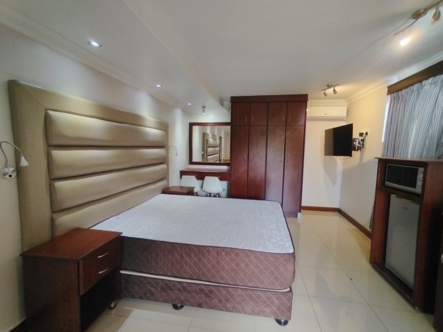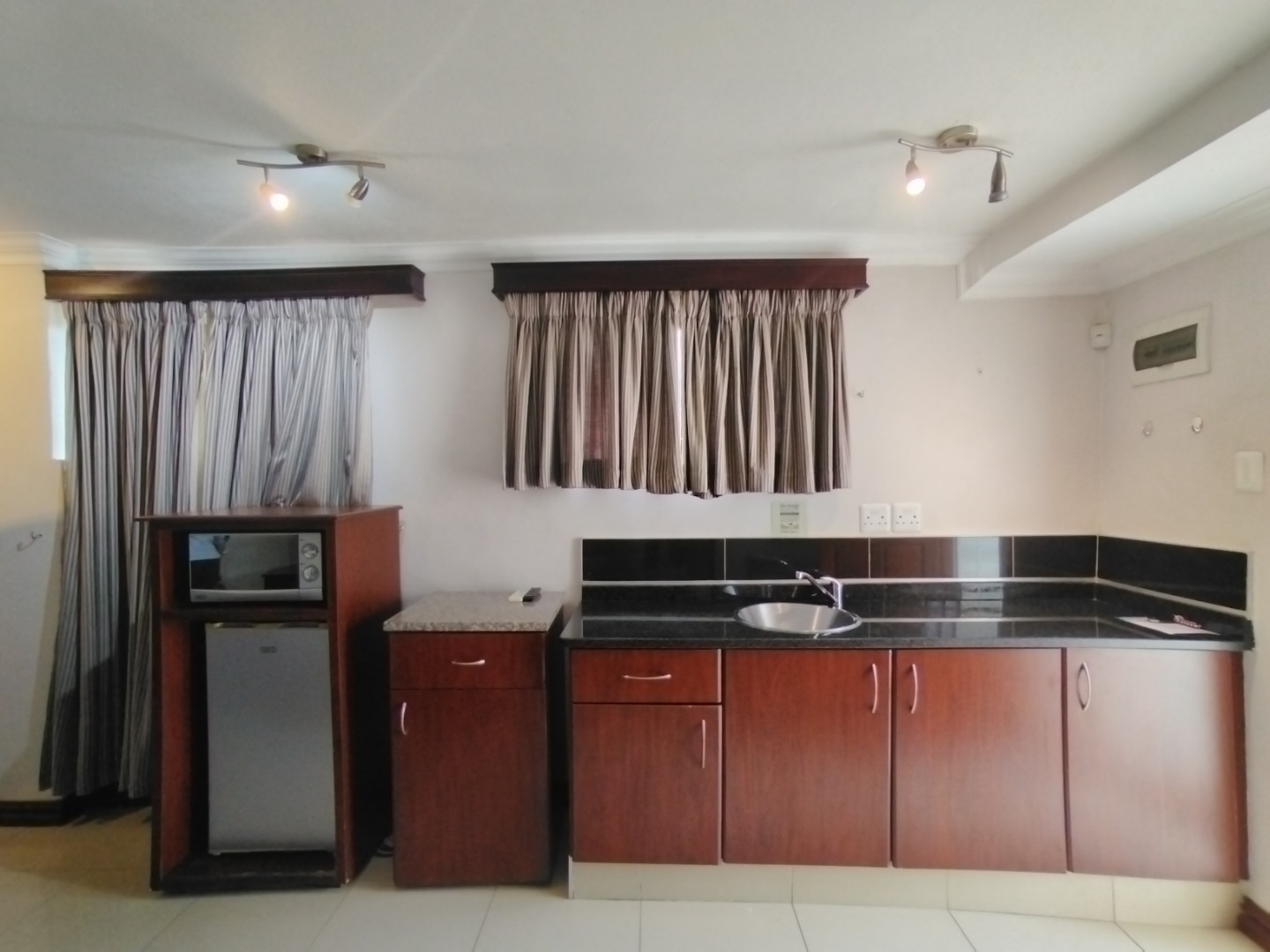 This open-plan unit comes fully furnished and includes a bed, single-plate stove, microwave, kettle, TV, toaster, and one parking bay.