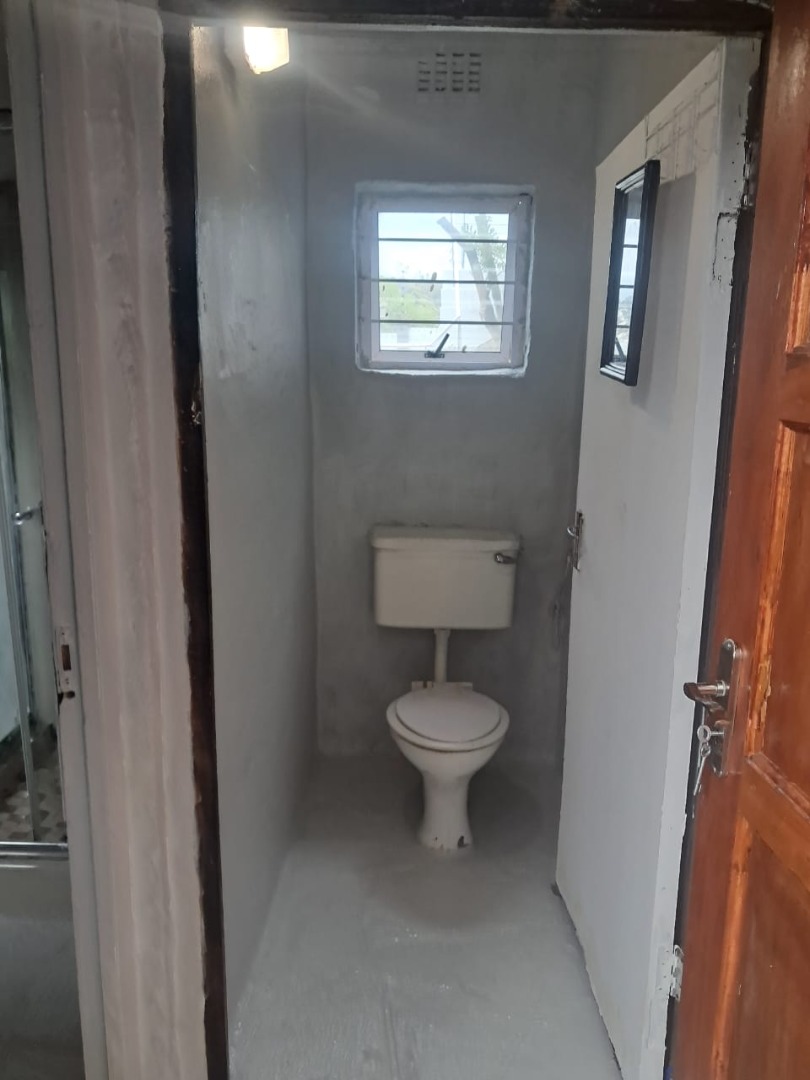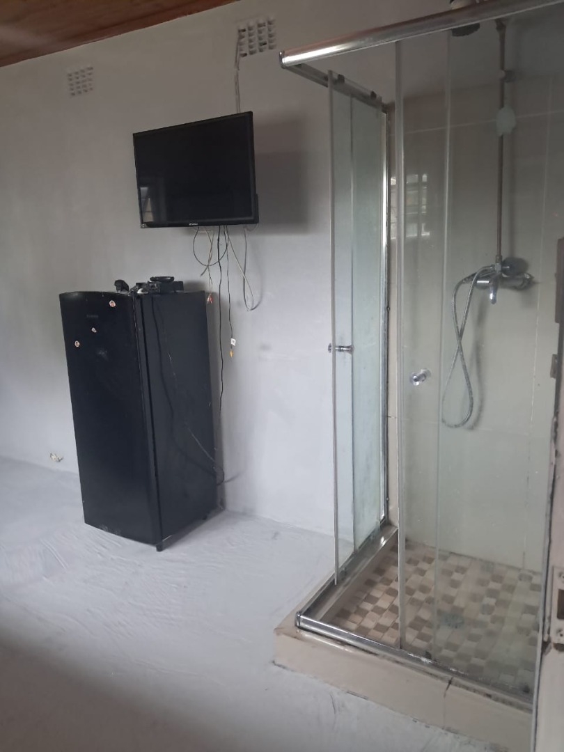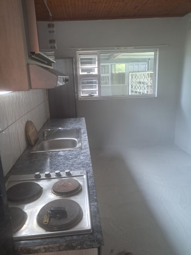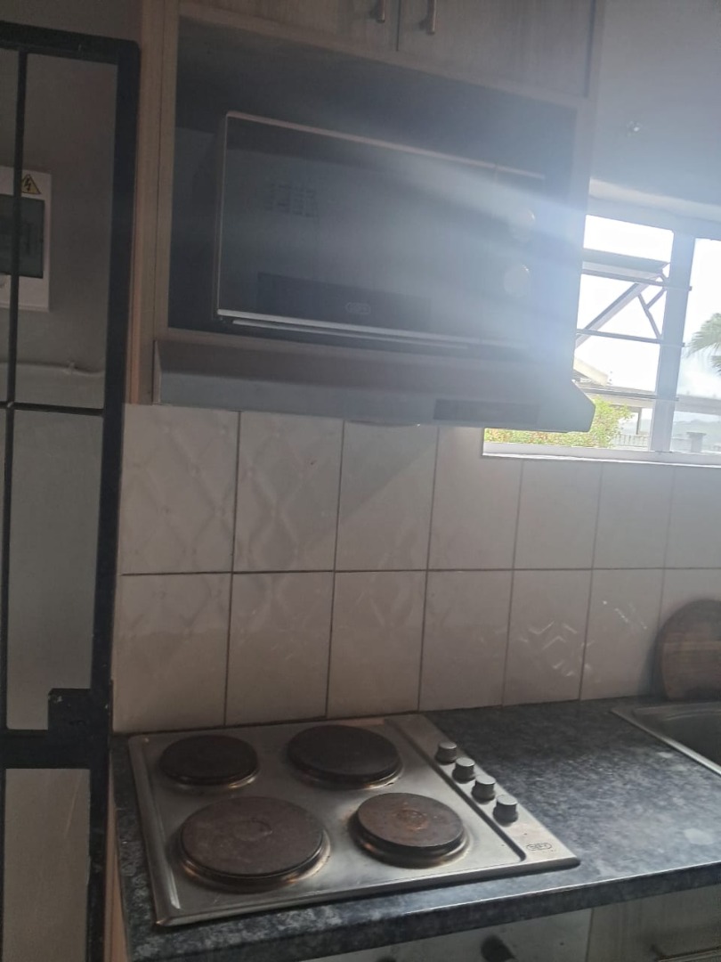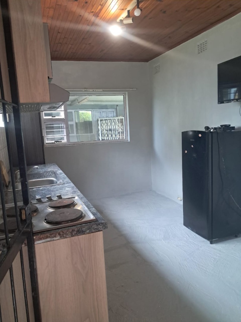 Self-contained bachelor flat available — includes a bed and mattress, microwave, fridge, and stove.