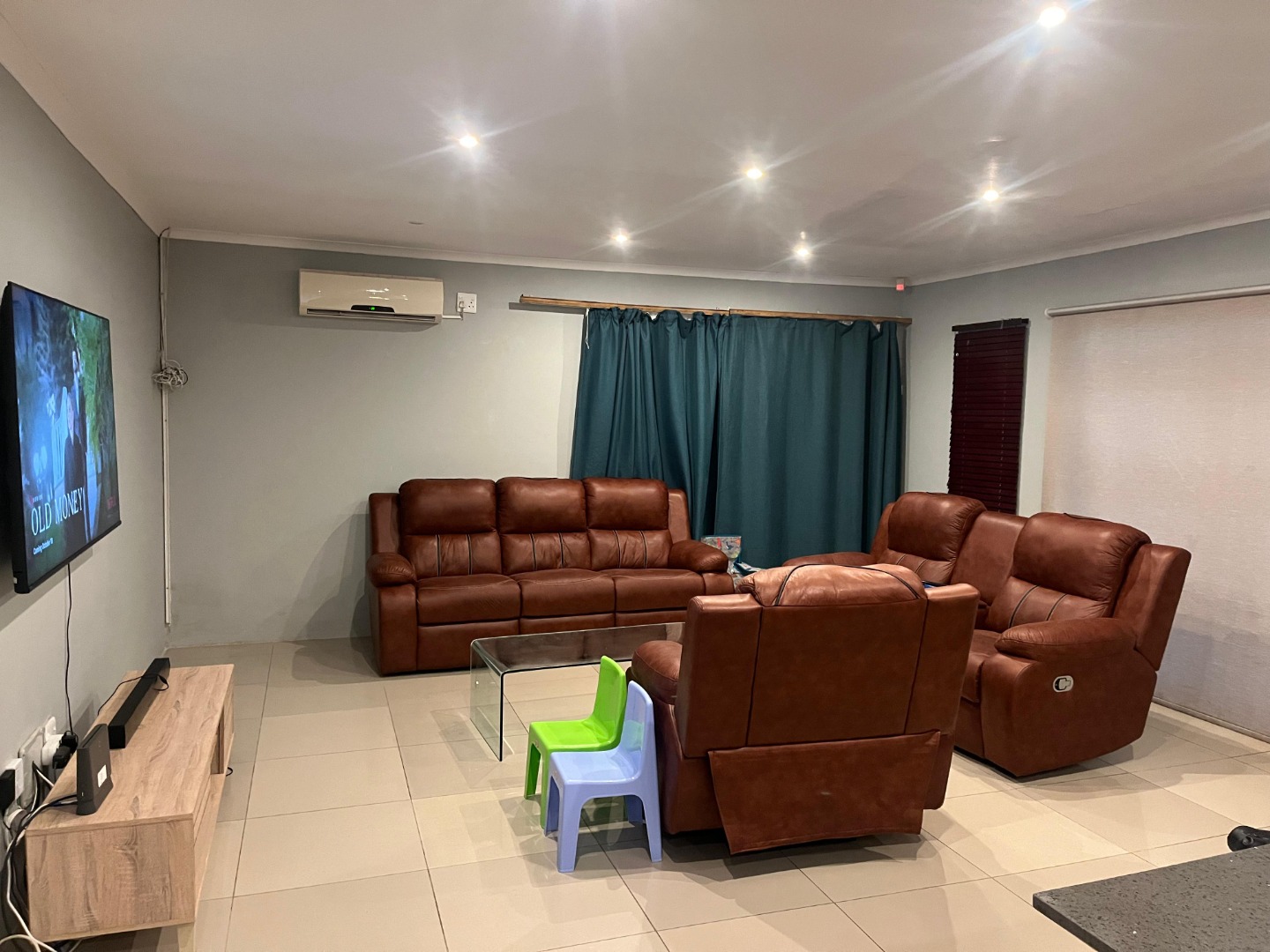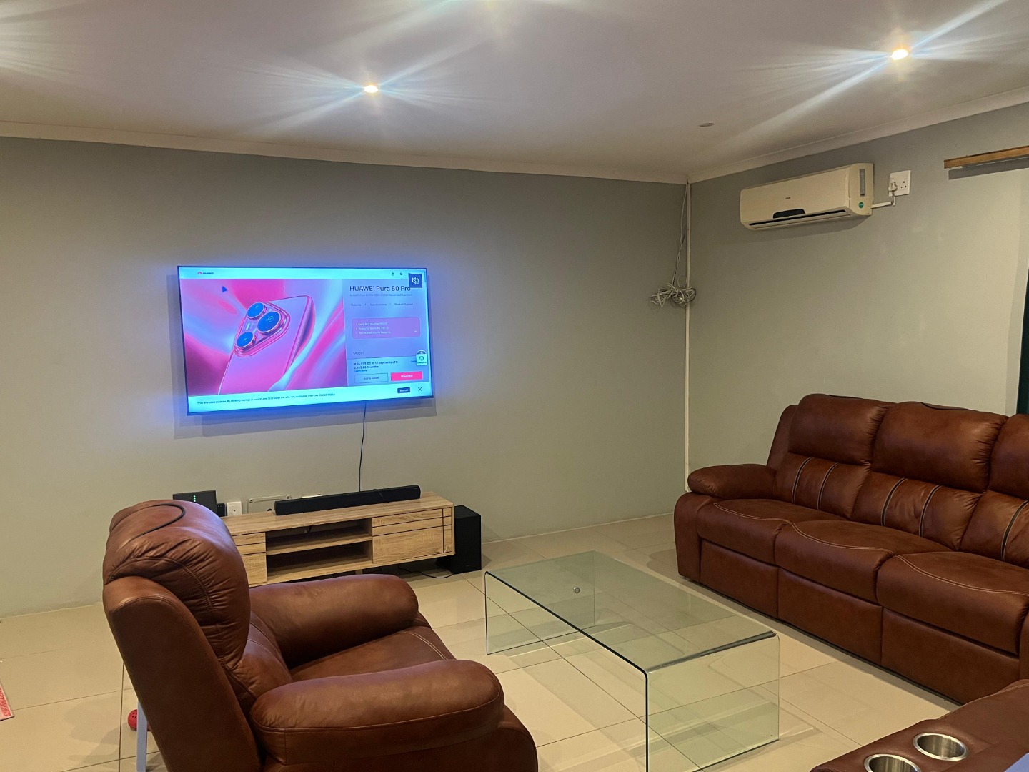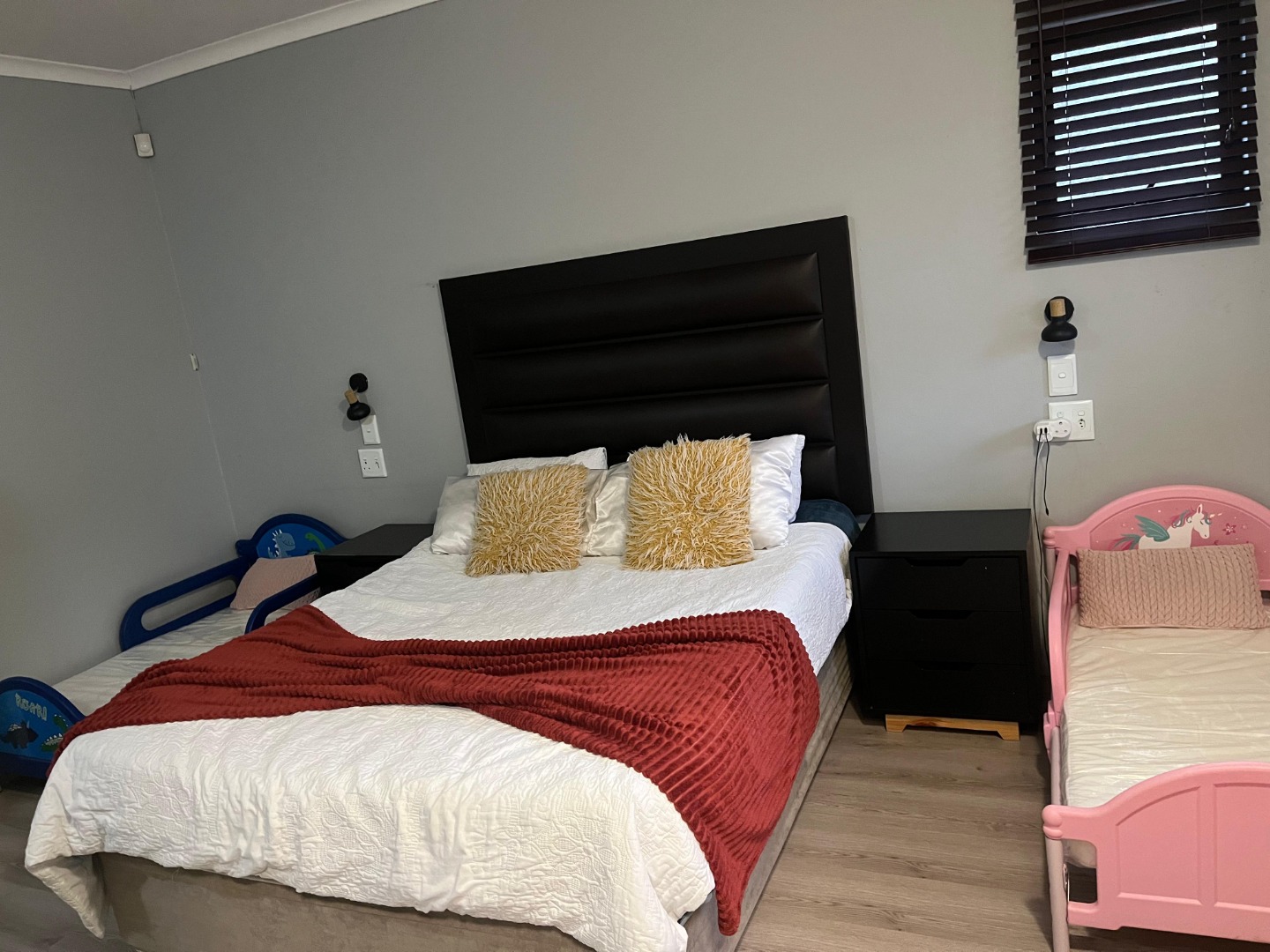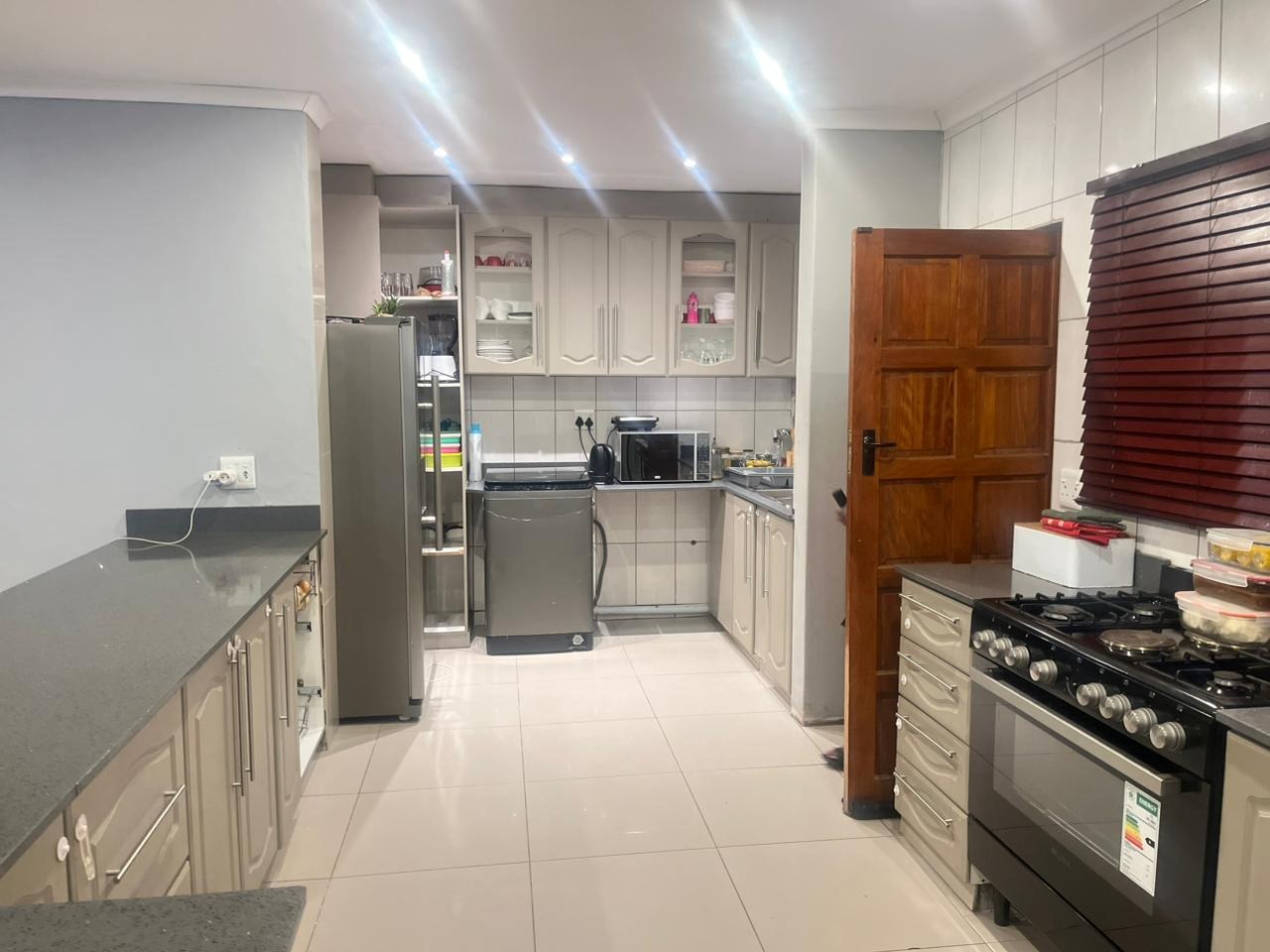 gem offers generously spacious 4 en-suite bedrooms which provides privacy and comfort for dwellers. There is an additional common bathroom which can be enjoyed by all. All bedrooms have fitted built in cupboards. While the master bedroom upstairs boasts with an additional lounge right outside the bedroom. The kitchen comes with a fitted gas stove and luxurious and modern cupboard, the kitchen can accommodate a washing machine, dishwasher and a double fridge. There is plenty of rooms in and outdoors for kids to play. External features include a double locked in garage, extra secure parking which can also be turned into a braai area. Security is uncompromised as there is access to armed response and indoor camera surveillance.