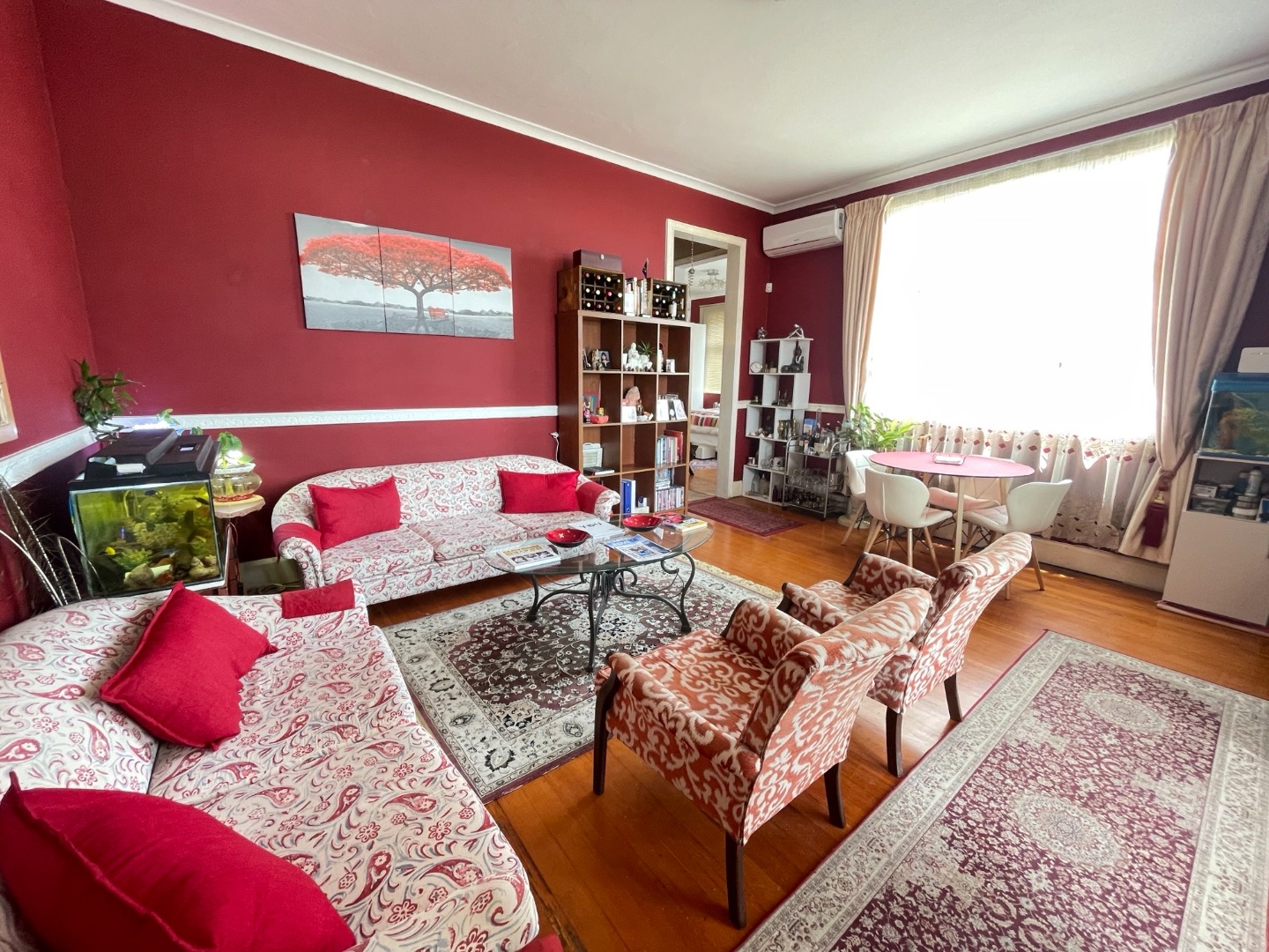 The home features an open-plan lounge and dining area with wooden flooring throughout, creating a warm living space. The area is fitted with an air conditioner, ensuring comfort throughout the seasons.