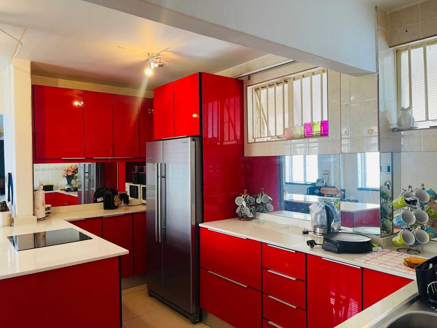Fully fitted granite countertops and sleek high-gloss built-in cupboards