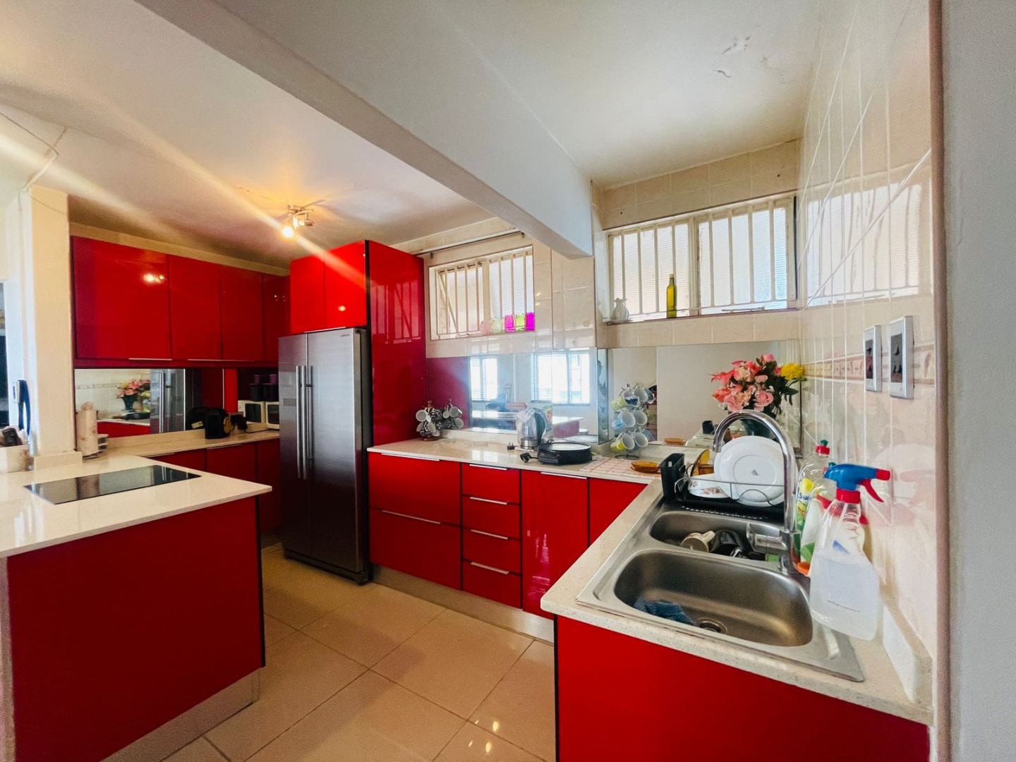 Fully fitted granite countertops and sleek high-gloss built-in cupboards
