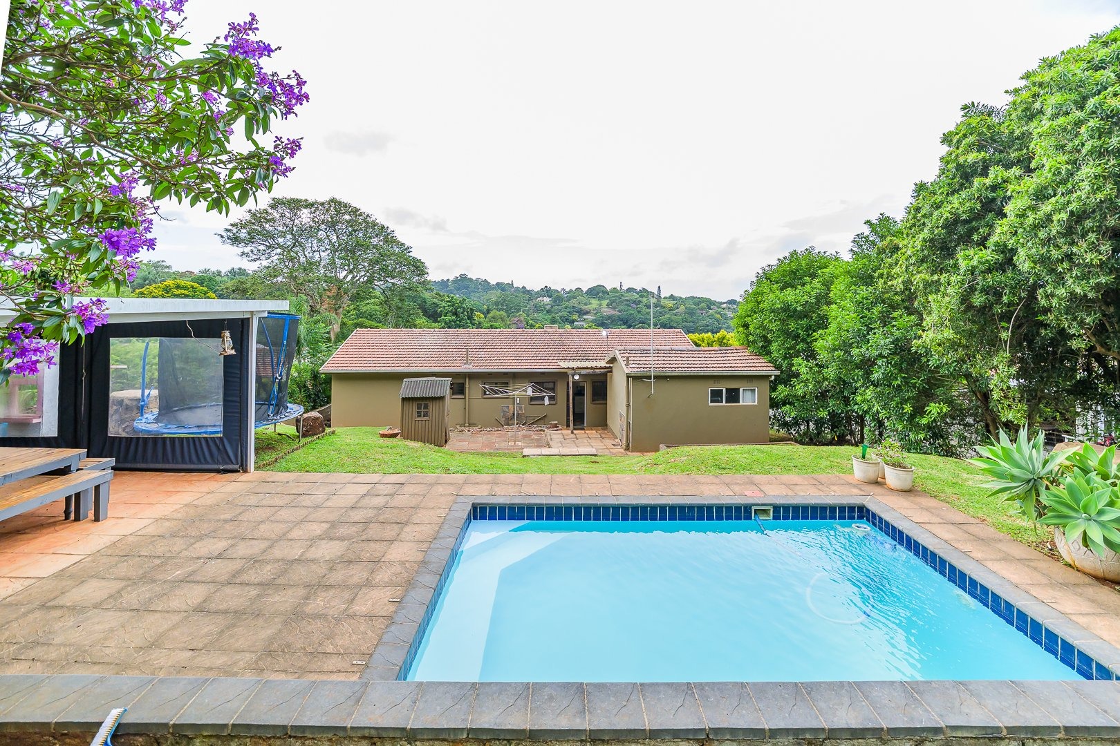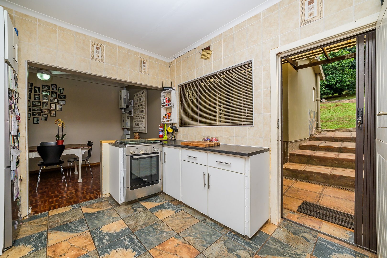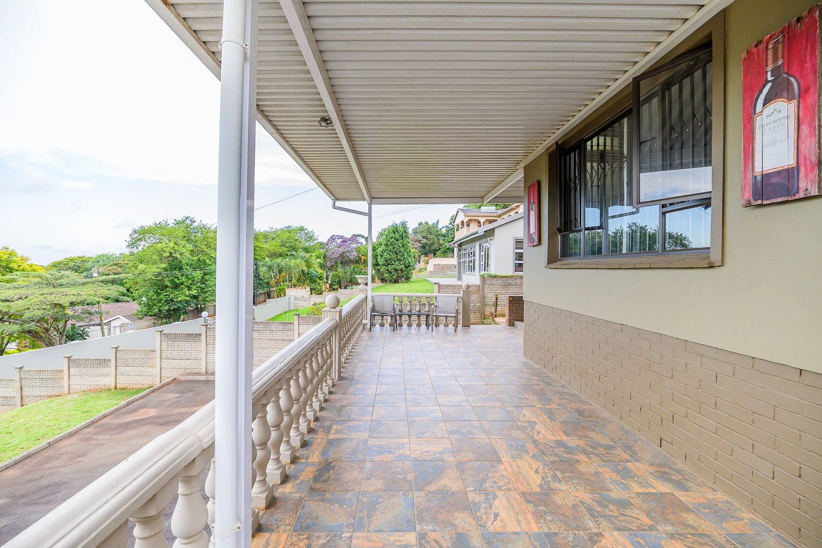On entry you’re greeted by bright open-plan living with excellent indoor/outdoor flow from the living spaces to the entertainment areas. The lounge and dining room open to an indoor braai and a large covered patio that overlooks views of Westville.