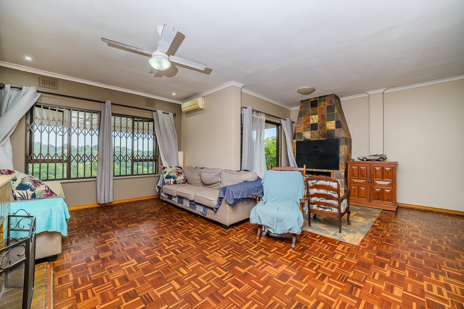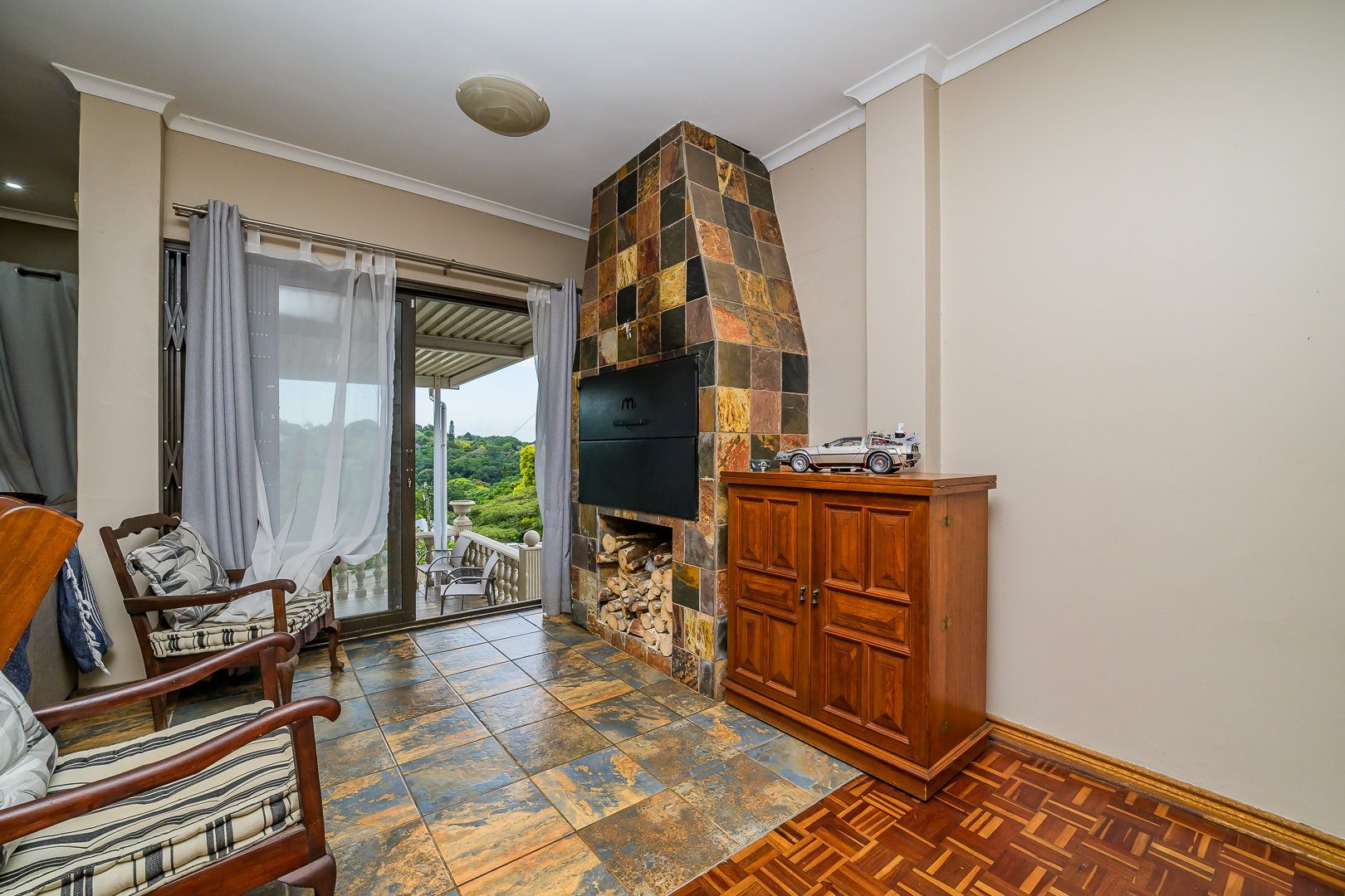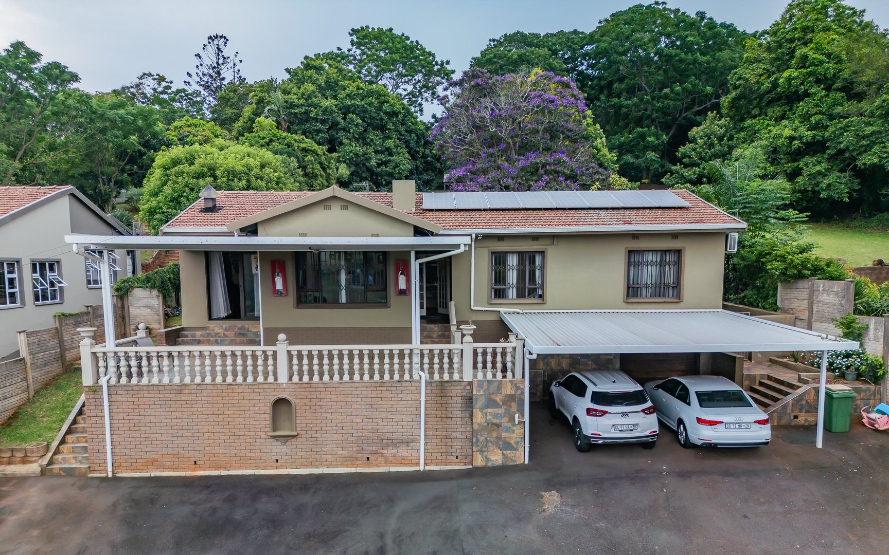 On entry you’re greeted by bright open-plan living with excellent indoor/outdoor flow from the living spaces to the entertainment areas. The lounge and dining room open to an indoor braai and a large covered patio that overlooks views of Westville.
