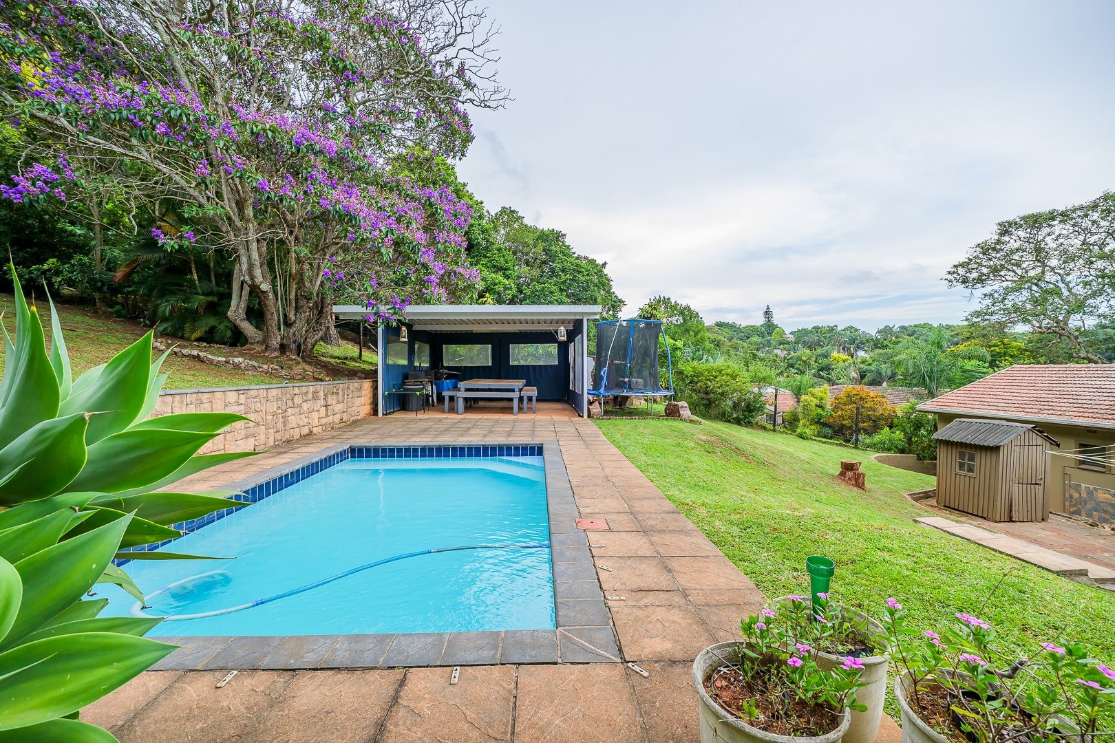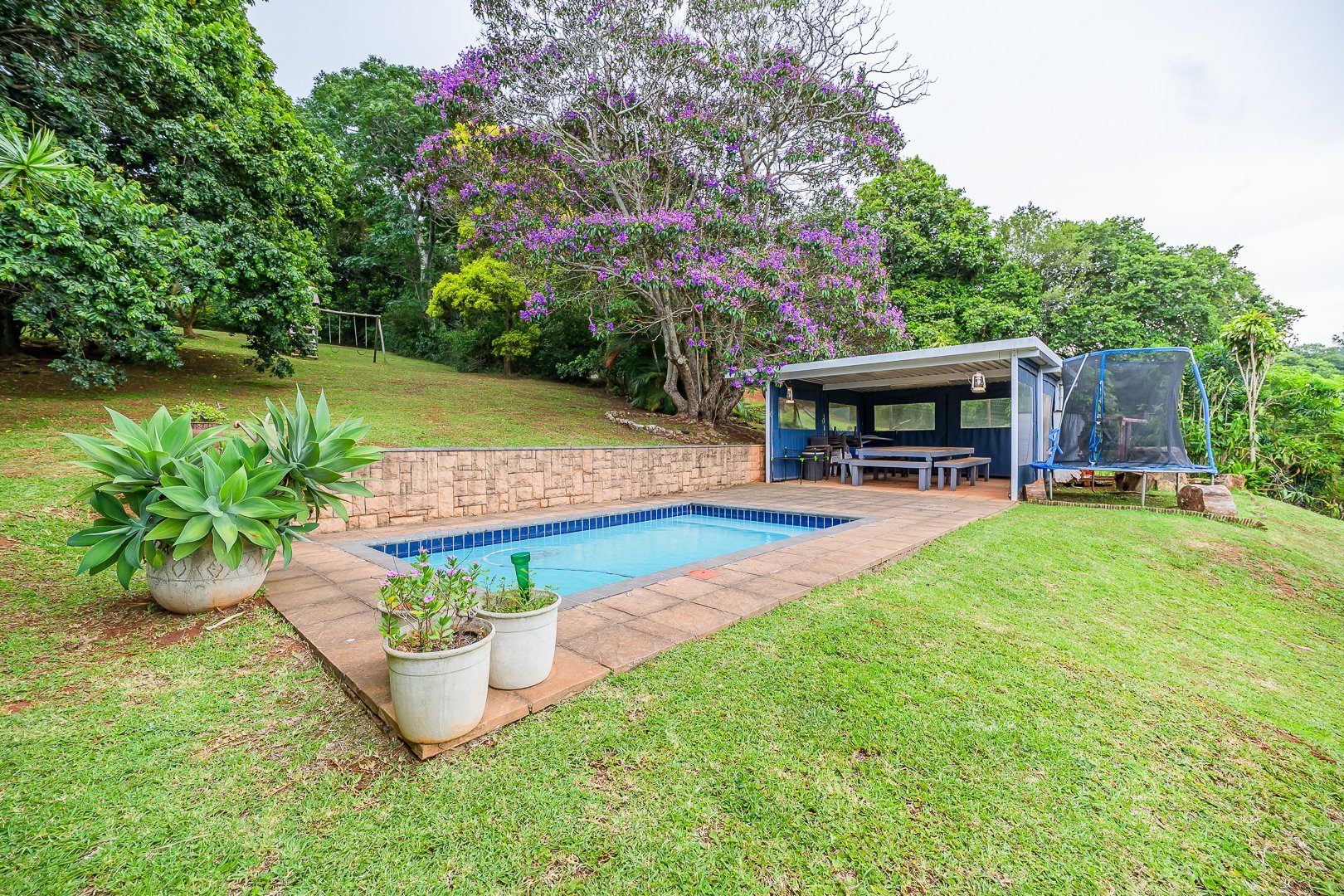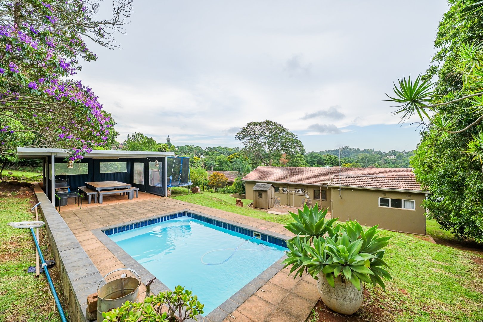 There is a swimming pool area which includes a covered entertainment section, ideal for afternoon braais while keeping an eye on the kids.