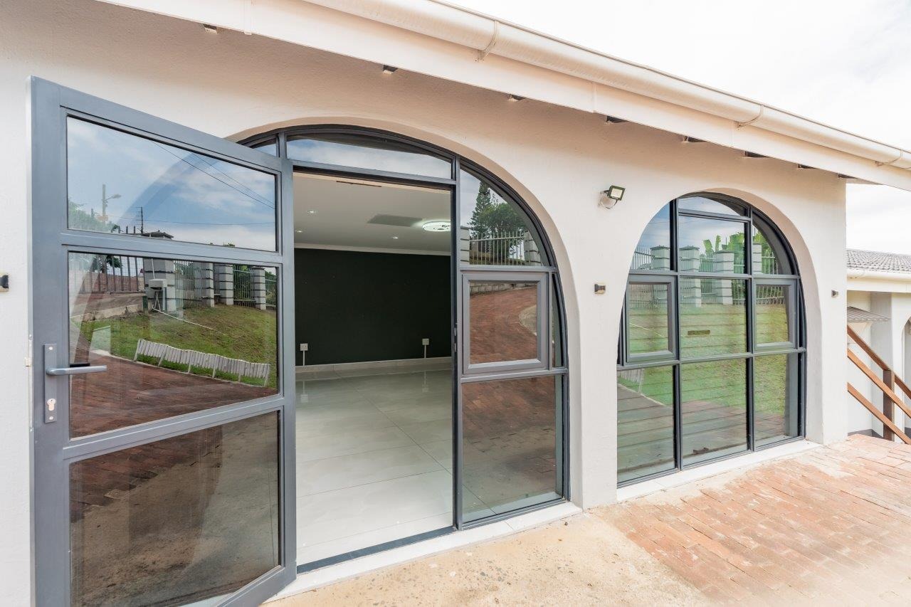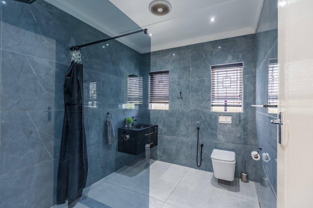 The heart of this exceptional home lies in its beautifully designed open-plan living spaces. The split-level lounge features smart lighting with an integrated Bluetooth speaker for the perfect ambiance — whether you're hosting a lively gathering or enjoying a quiet evening. Wide sliding doors open fully onto an expansive wooden entertainment deck, creating an indoor - outdoor flow that overlooks the sparkling swimming pool, lush greenery, and distant horizon views. It’s the ideal spot for year-round entertaining, braais, or simply soaking in the serene outlook.