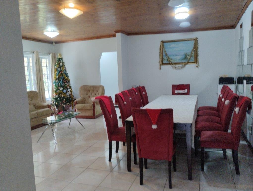 Passing through the entrance hall one cannot but notice the large entertainment area which includes an indoor dining area which seamlessly leads to the outside pool area which includes a spacious garden for children to play and braai facility.