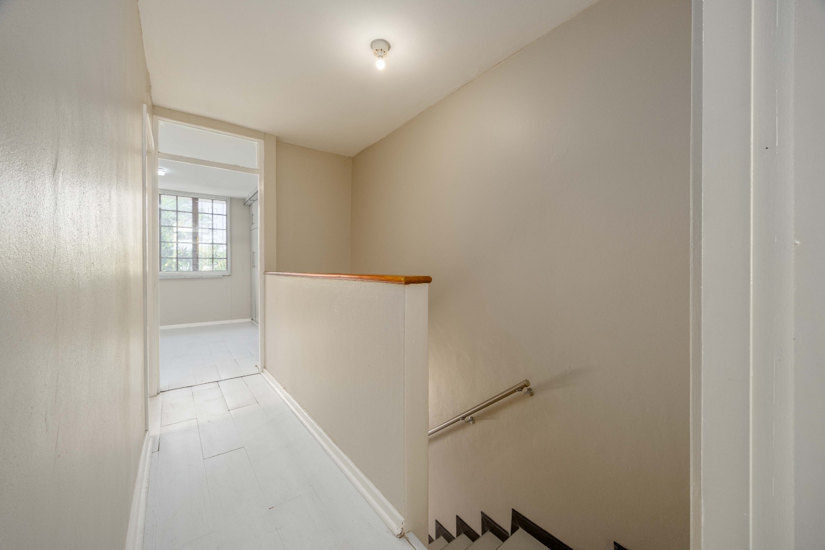 Downstairs is fully tiled, while upstairs boasts warm wooden flooring throughout. Both bedrooms include built-in cupboards, with one bedroom offering a noise-canceling window for added comfort and peace.