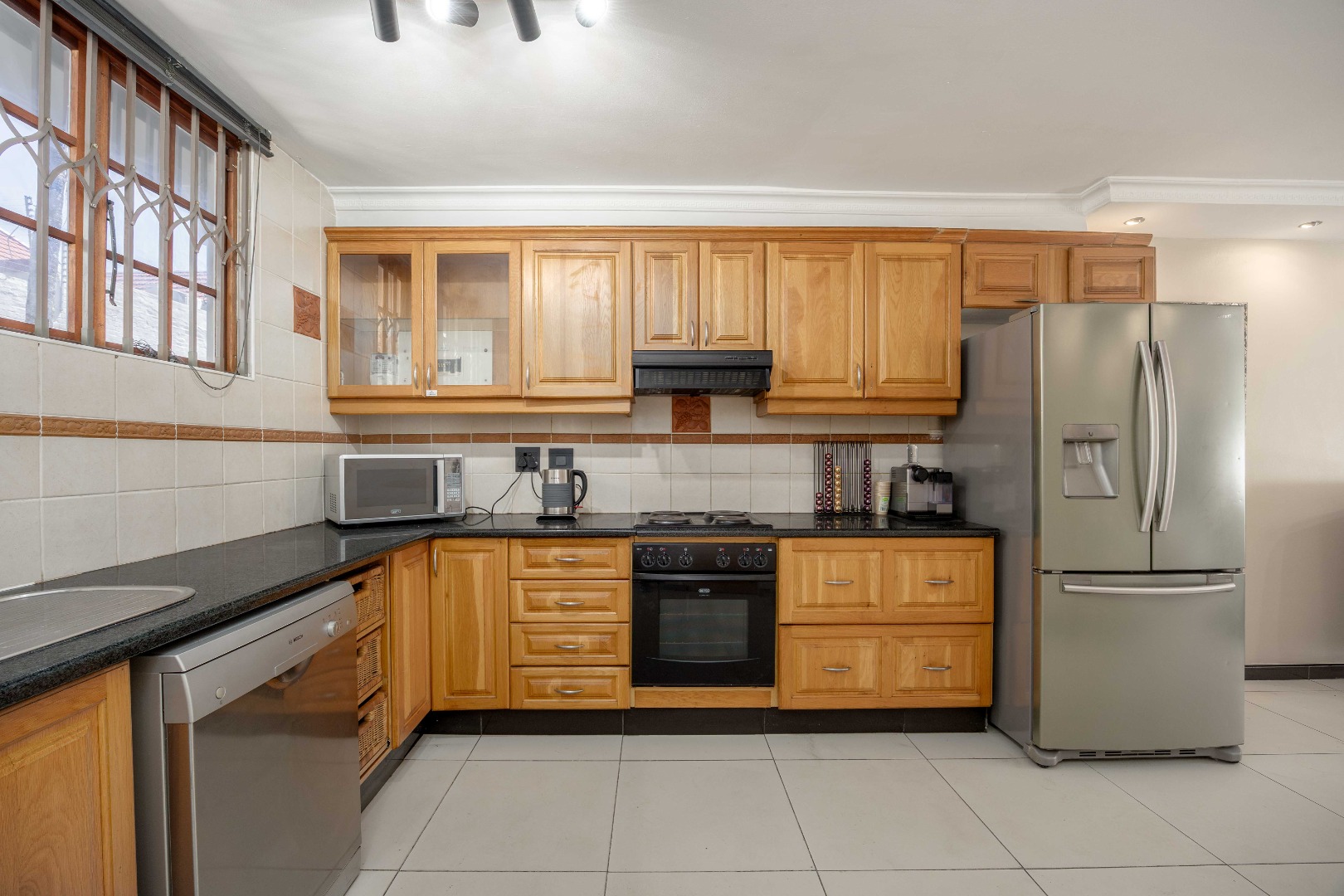 Additional features include burglar bars on all windows, a remote access gate, and one garage