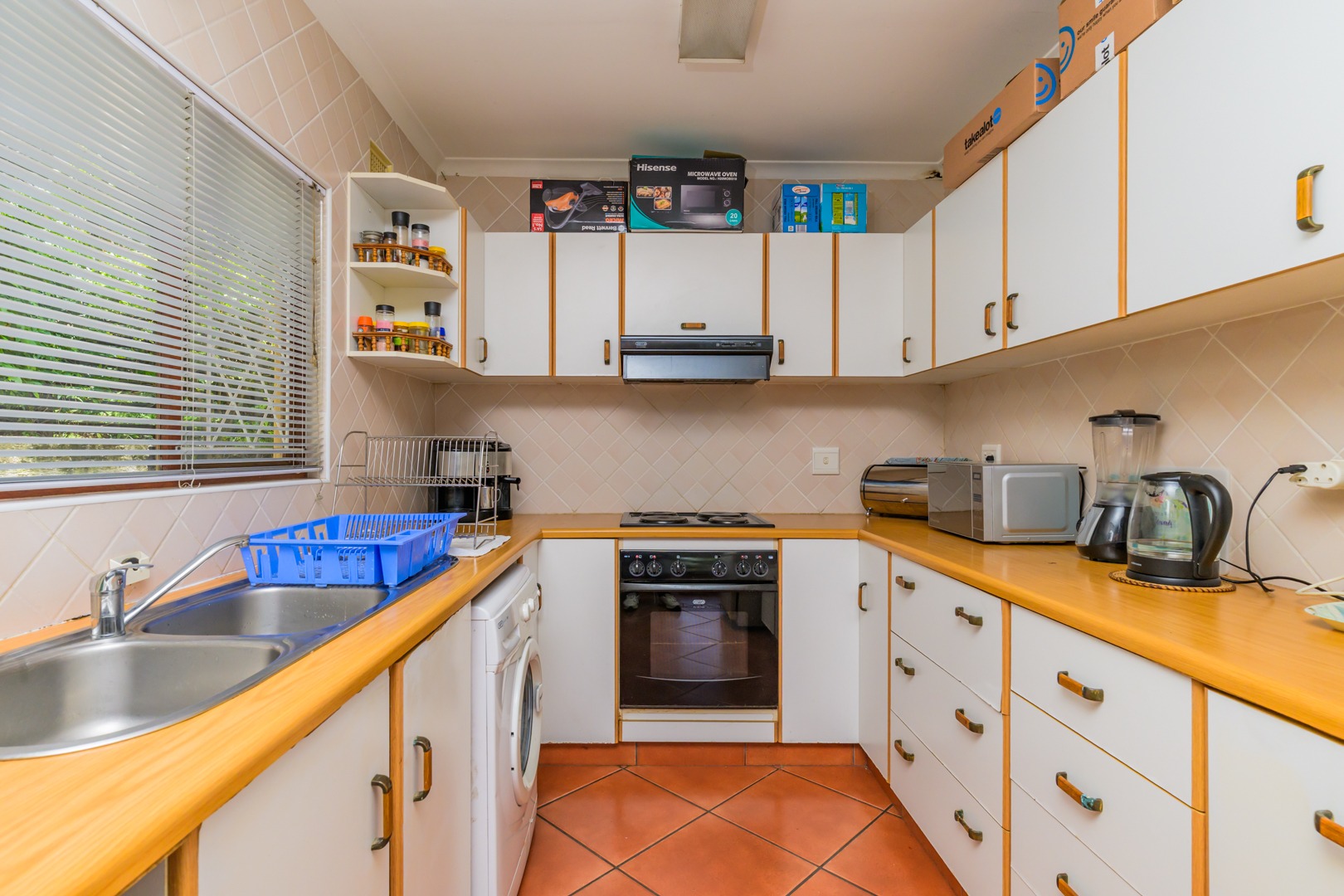 The kitchen is fitted with a UCO and hob, with a convenient store room nearby. There’s plenty of parking with a single auto gate and space for up to 5 cars, plus domestic quarters for added practicality.