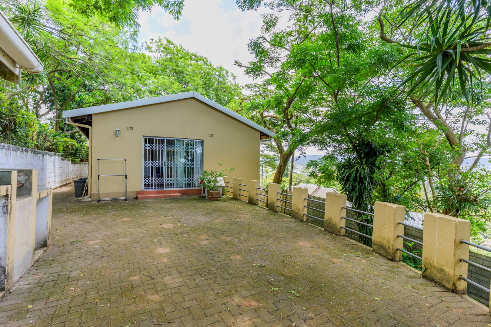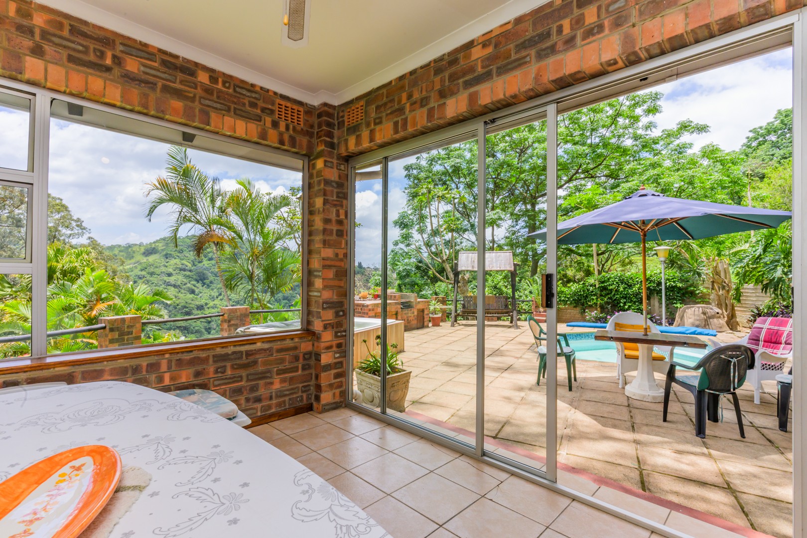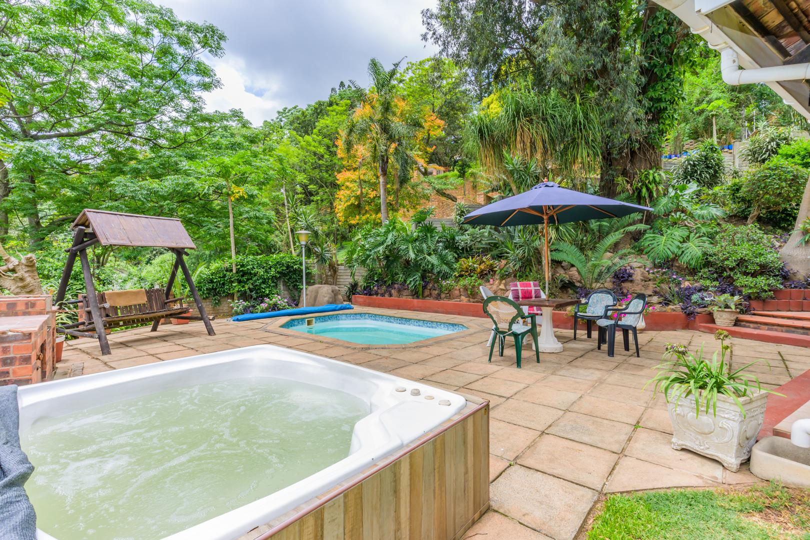 Welcome to this charming and versatile family home set above road level, offering space, comfort and beautiful views. The main house features 3 well-sized bedrooms and 2 bathrooms, including a warm and inviting flow from the entrance hall into the open-plan lounge and dining room. An enclosed veranda extends your living space and leads straight out to the sparkling pool, jacuzzi, and built-in braai — perfect for entertaining and enjoying our gorgeous KZN sunsets.