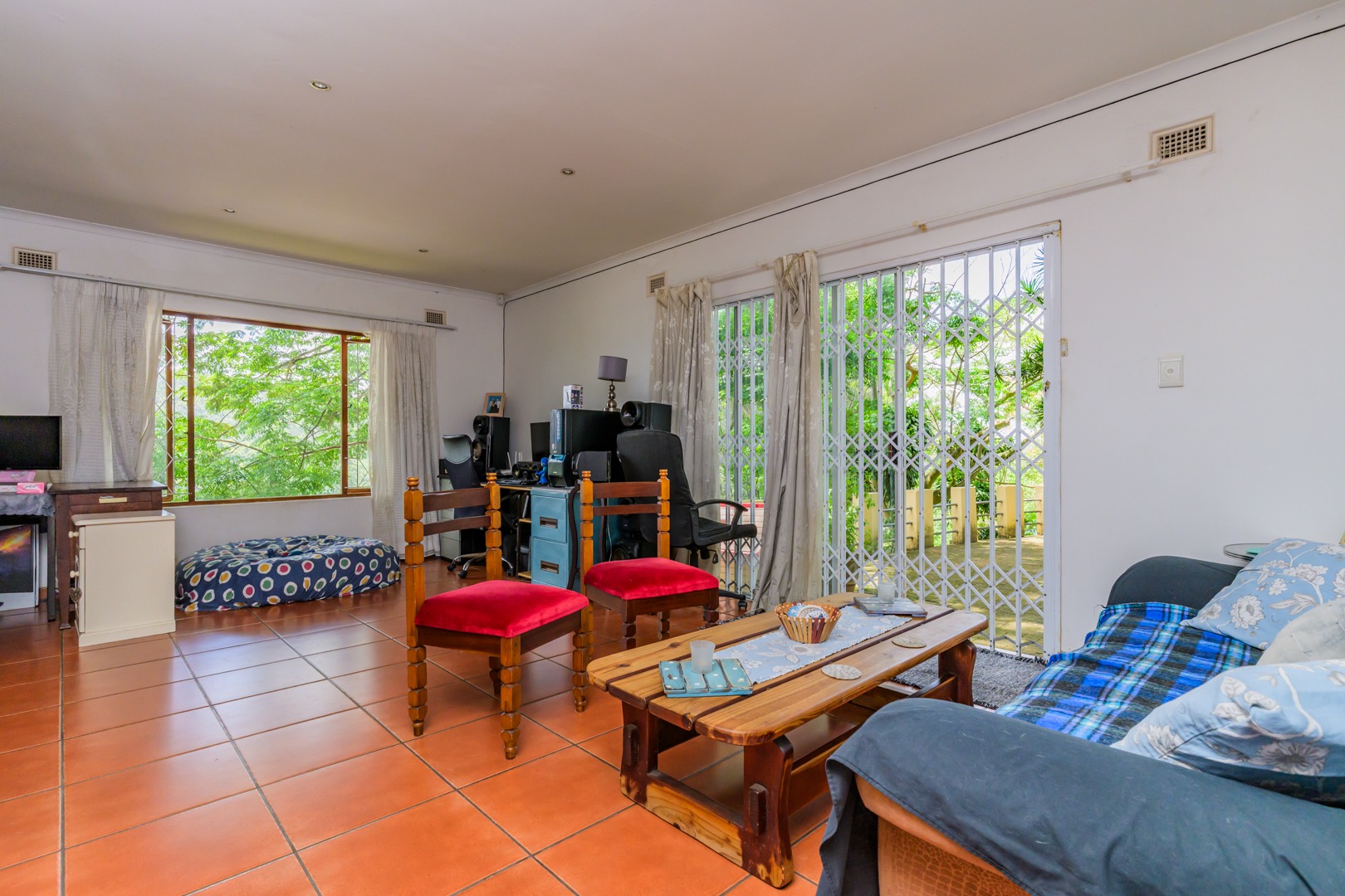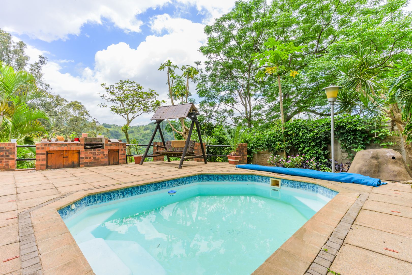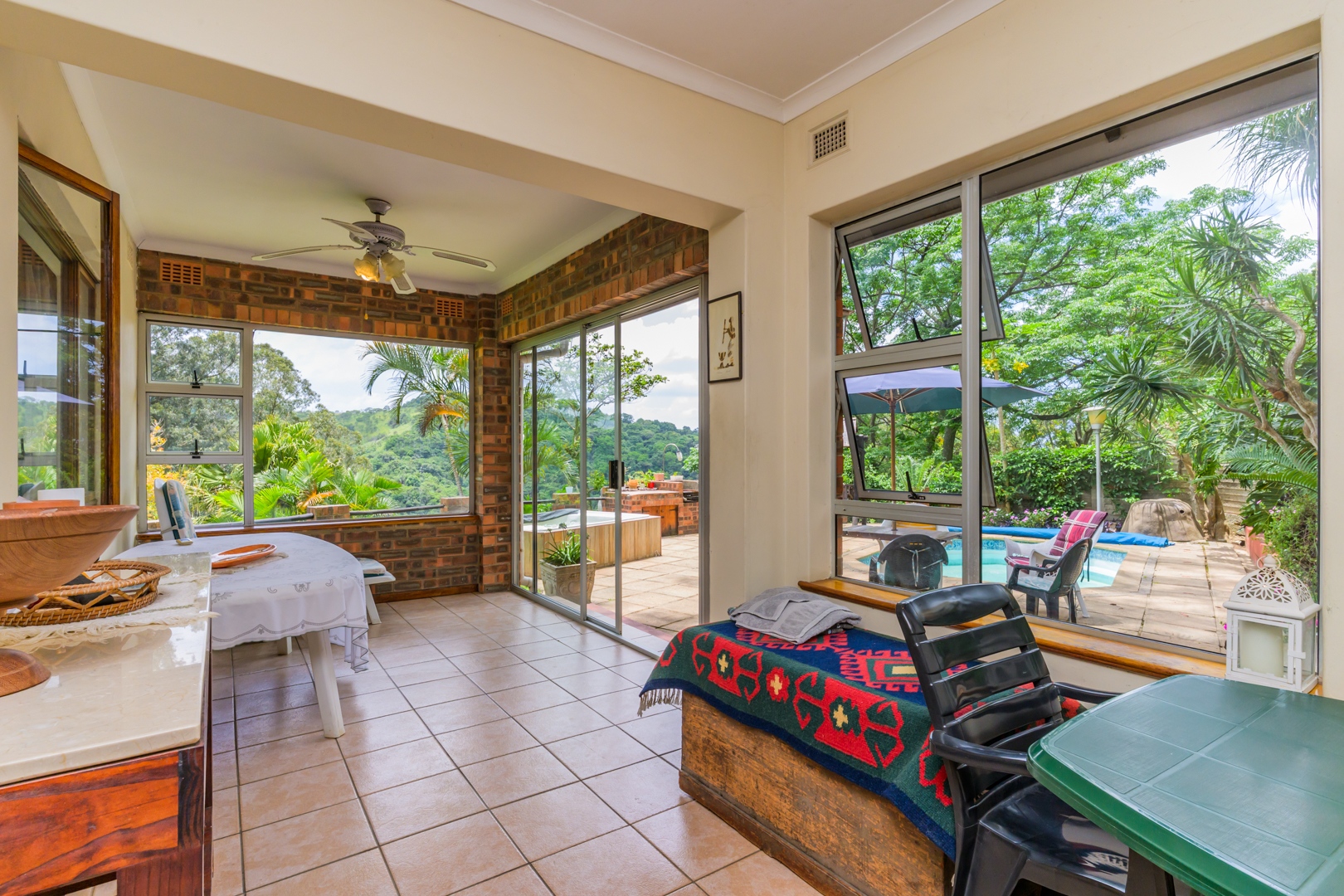 Welcome to this charming and versatile family home set above road level, offering space, comfort and beautiful views. The main house features 3 well-sized bedrooms and 2 bathrooms, including a warm and inviting flow from the entrance hall into the open-plan lounge and dining room. An enclosed veranda extends your living space and leads straight out to the sparkling pool, jacuzzi, and built-in braai — perfect for entertaining and enjoying our gorgeous KZN sunsets.