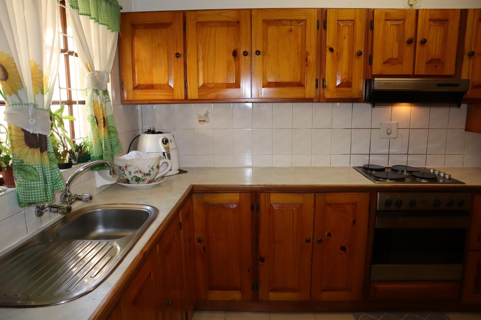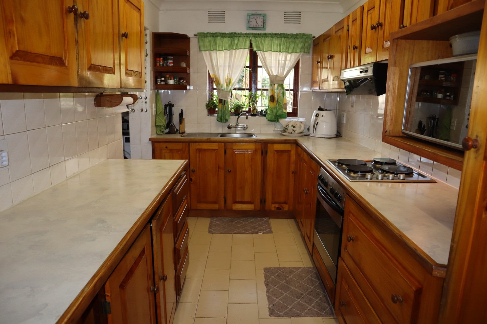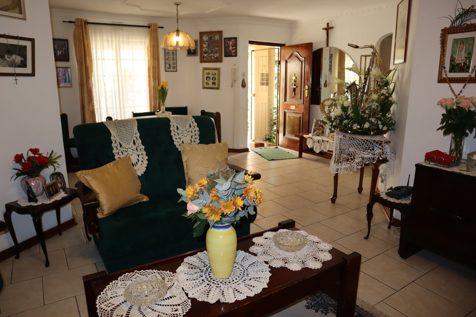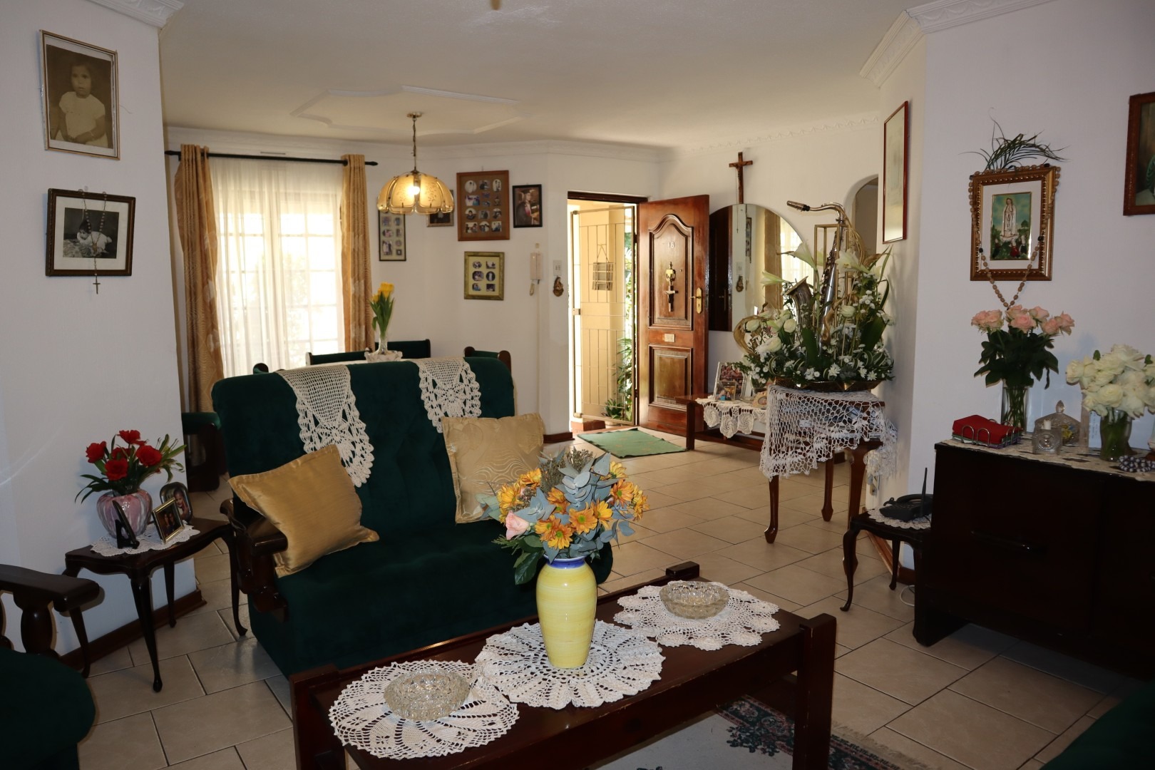 Fully tiled open plan lounge and dining room with French doors leading out to an under-cover patio, built in braai area and corner garden ideal for relaxing and unwinding.