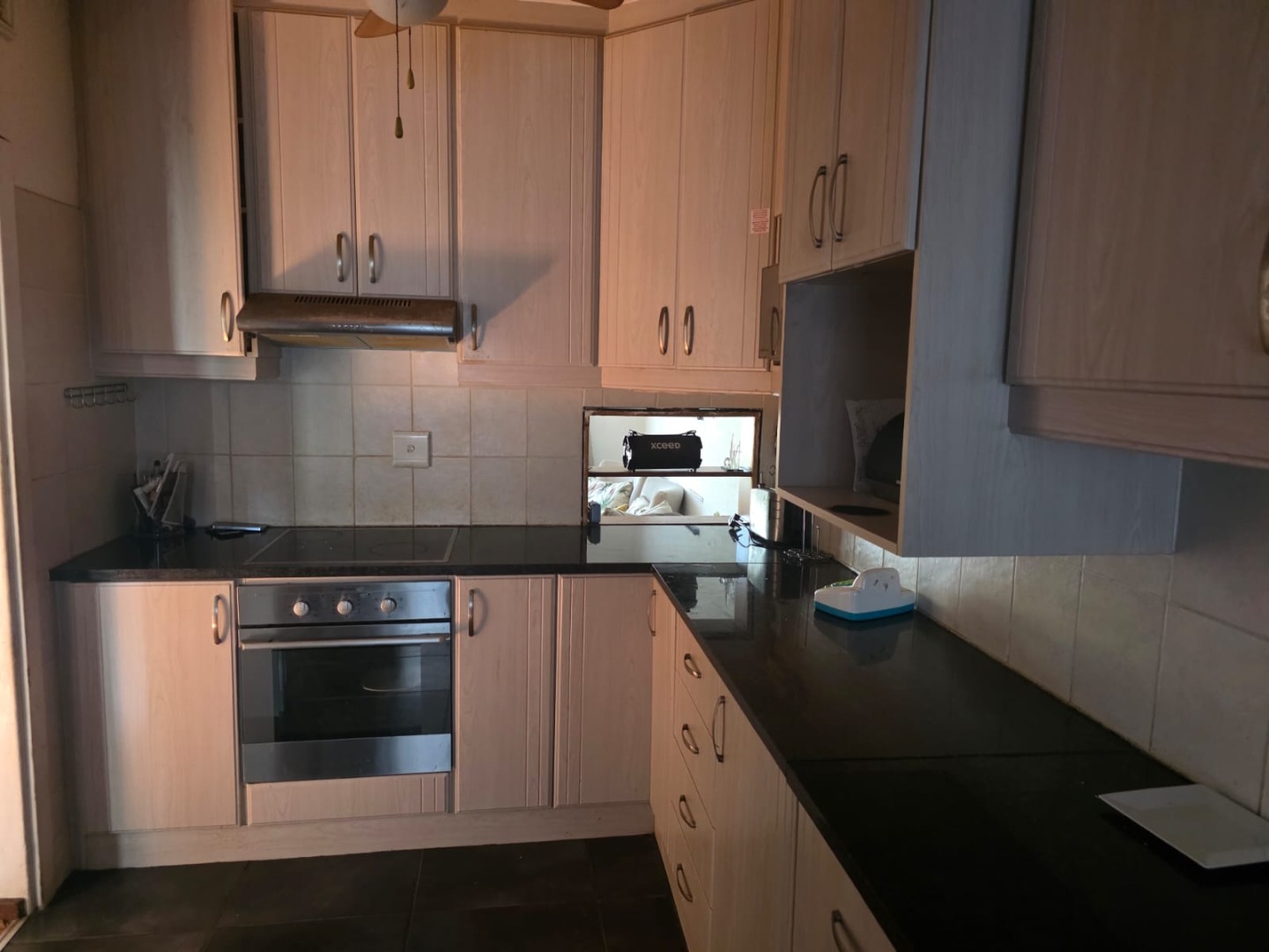The modern renovated kitchen( granite tops) features a under-counter oven and hob, plus a separate scullery for added practicality.
