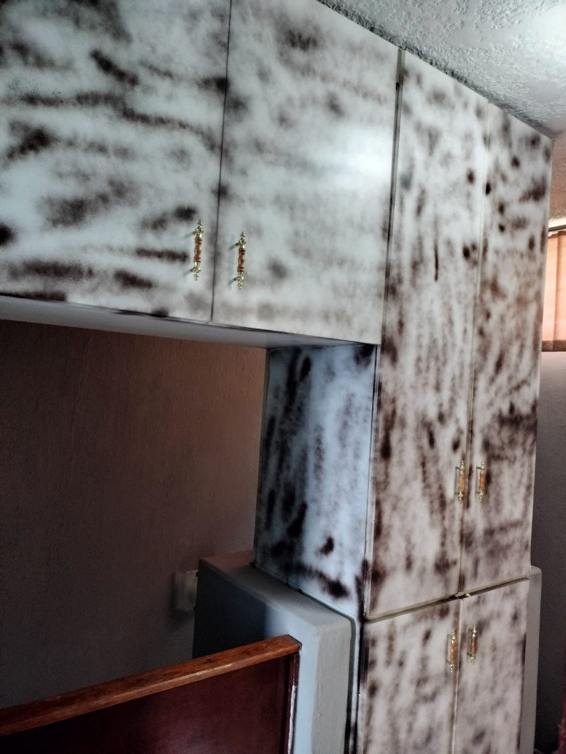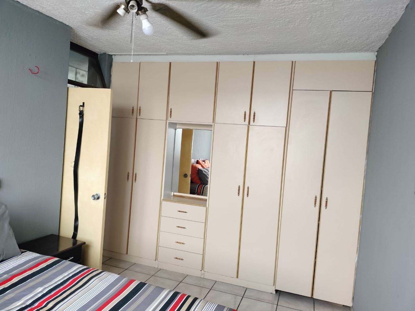 Upstairs, you’ll find two spacious bedrooms fitted with ceiling fans and ample cupboard space, along with a neat family bathroom. The passage offers additional built-in storage, perfect for keeping your home organized and clutter-free.