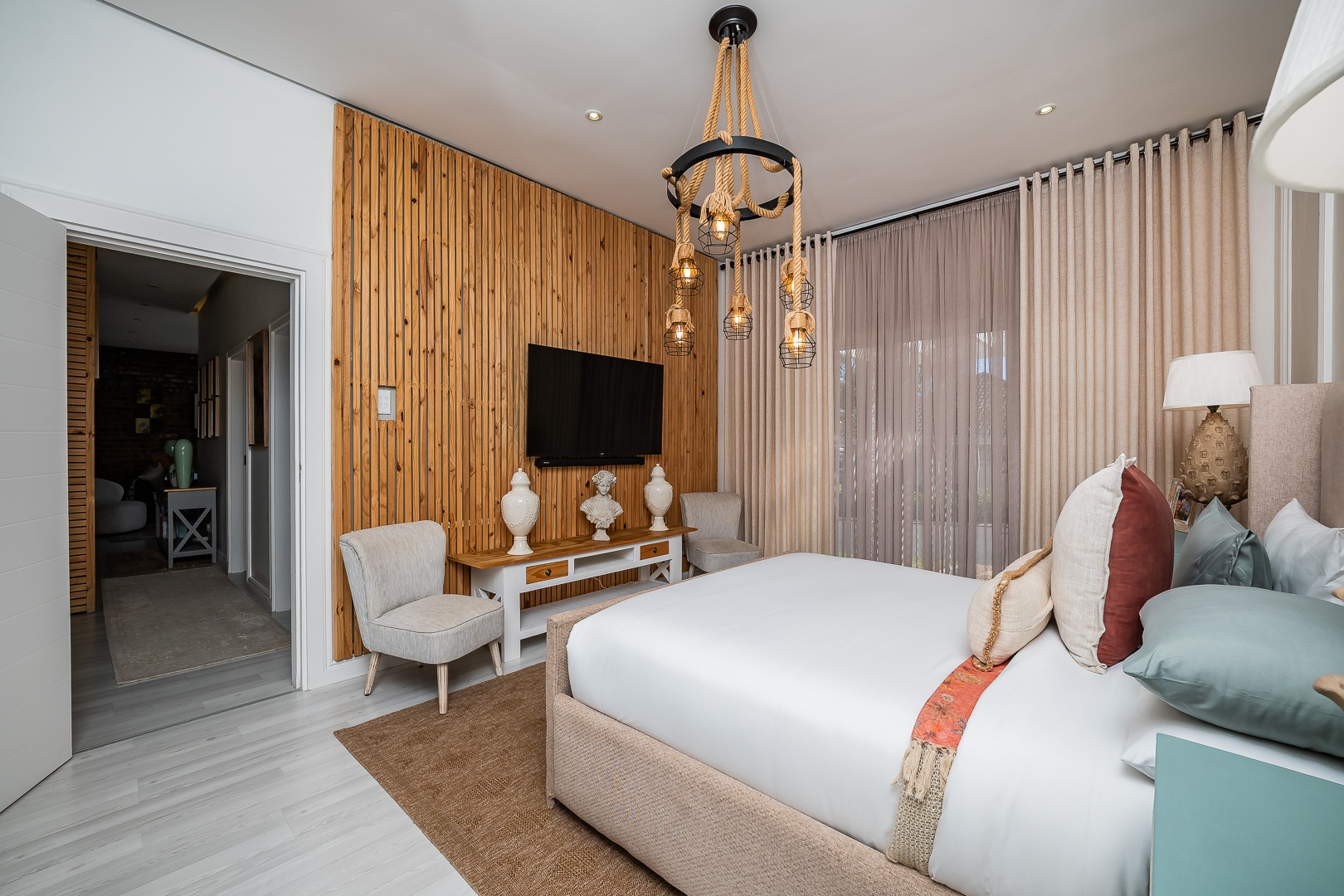 Entertain and unwind in the open plan lounge, dining, and kitchen area—ideal for today's lifestyle of seamless interaction and flow. The pièce de résistance of this home is undoubtedly the fully-equipped home cinema, offered 'as is' with stylish furniture and a state-of-the-art projector, providing a cinematic experience in the comfort of your own home.