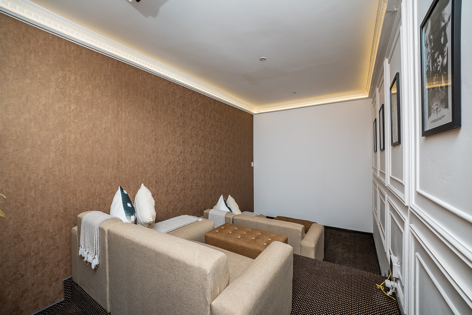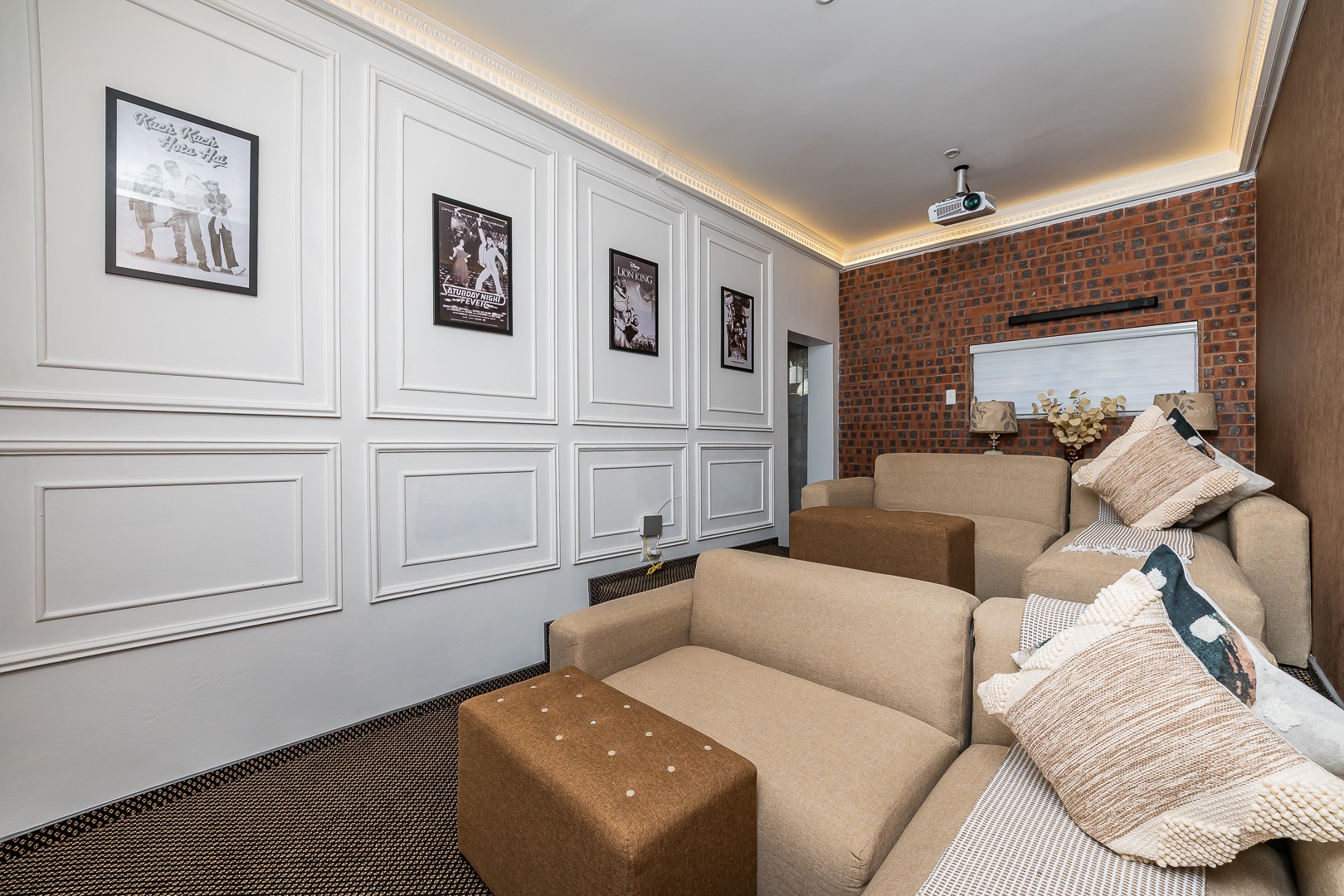 Entertain and unwind in the open plan lounge, dining, and kitchen area—ideal for today's lifestyle of seamless interaction and flow. The pièce de résistance of this home is undoubtedly the fully-equipped home cinema, offered 'as is' with stylish furniture and a state-of-the-art projector, providing a cinematic experience in the comfort of your own home.