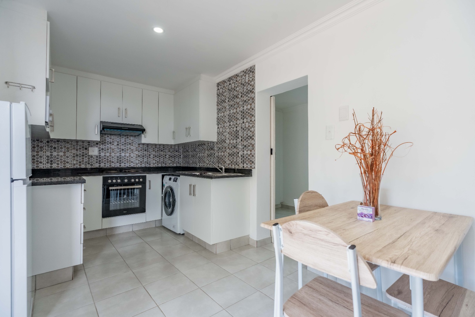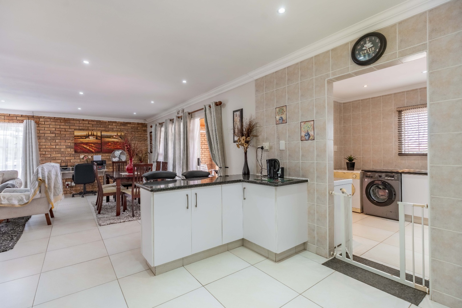 The property offers two comfortable bedrooms, each complemented by its own en-suite bathroom, ensuring privacy and convenience. Outside, a well-maintained garden provides a serene escape, perfect for relaxation or outdoor entertaining. Enjoy the fresh air from the patio, an ideal spot for morning coffee or evening gatherings. The property also boast of a fully fitted flatlet with one bed and an en-suite for rental or external family living The presence of water tanks contributes to water resilience, a valuable feature for sustainable living. The interior boasts neutral tones, tiled flooring, and modern recessed lighting, creating an adaptable canvas for your personal style. The contemporary kitchen is a highlight, featuring sleek white cabinetry, dark granite countertops, a breakfast bar, and a convenient pantry.