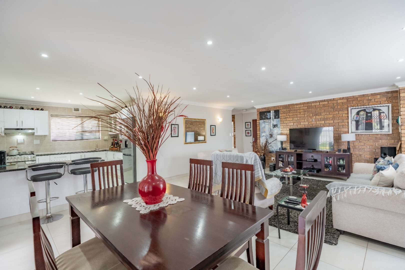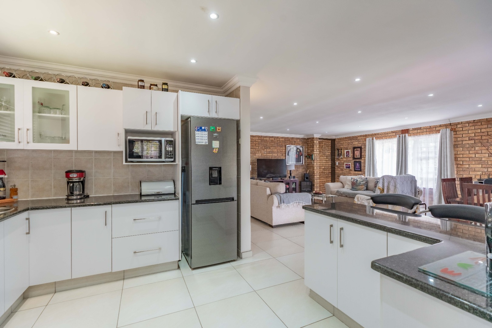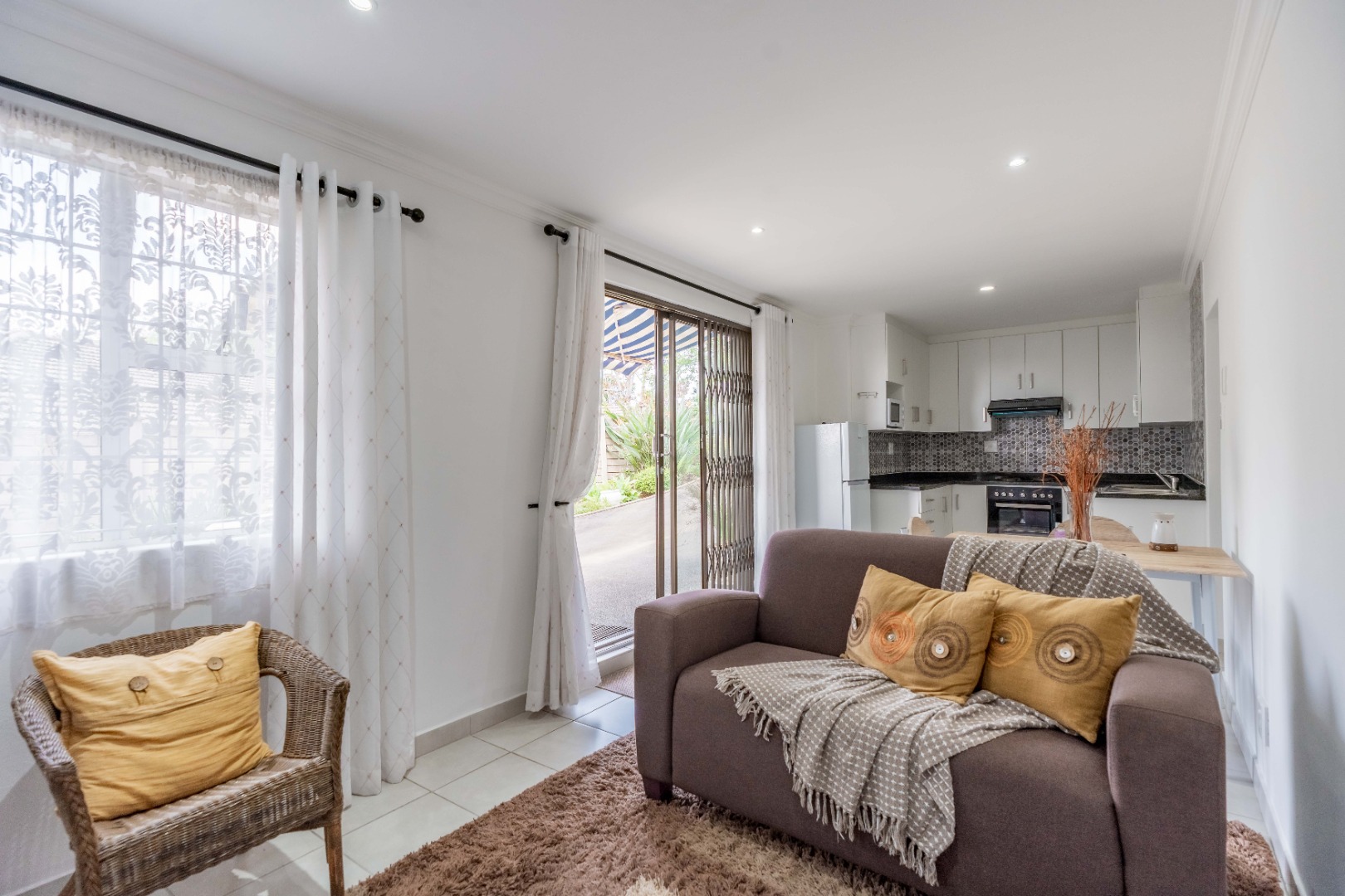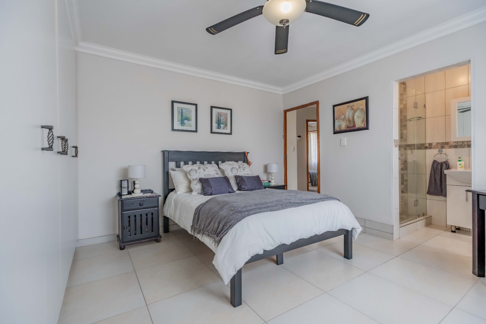 The property offers two comfortable bedrooms, each complemented by its own en-suite bathroom, ensuring privacy and convenience. Outside, a well-maintained garden provides a serene escape, perfect for relaxation or outdoor entertaining. Enjoy the fresh air from the patio, an ideal spot for morning coffee or evening gatherings. The property also boast of a fully fitted flatlet with one bed and an en-suite for rental or external family living The presence of water tanks contributes to water resilience, a valuable feature for sustainable living. The interior boasts neutral tones, tiled flooring, and modern recessed lighting, creating an adaptable canvas for your personal style. The contemporary kitchen is a highlight, featuring sleek white cabinetry, dark granite countertops, a breakfast bar, and a convenient pantry.